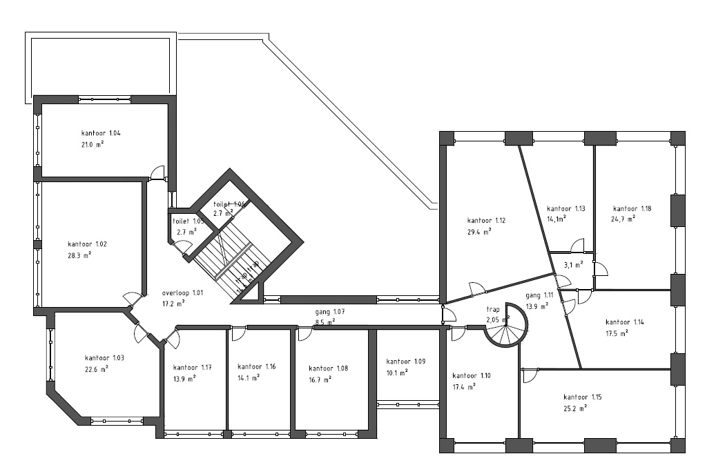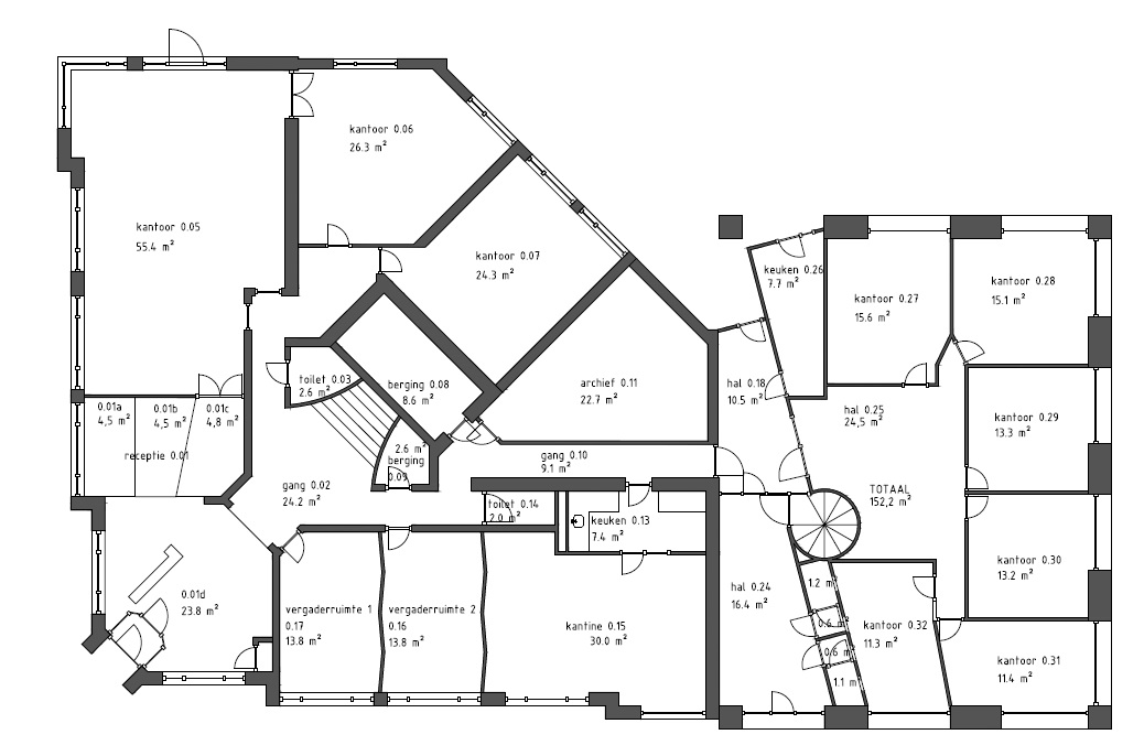 De kantoorkamers worden instapgereed opgeleverd. Dit betekent dat ze voorzien zijn van vloerafwerking, glad afgewerkte wanden en systeemplafonds.