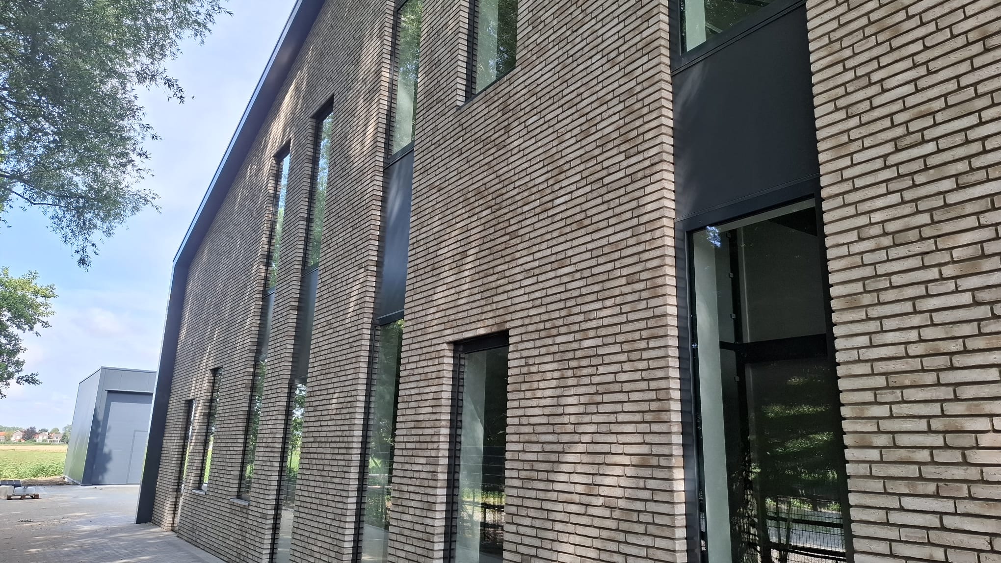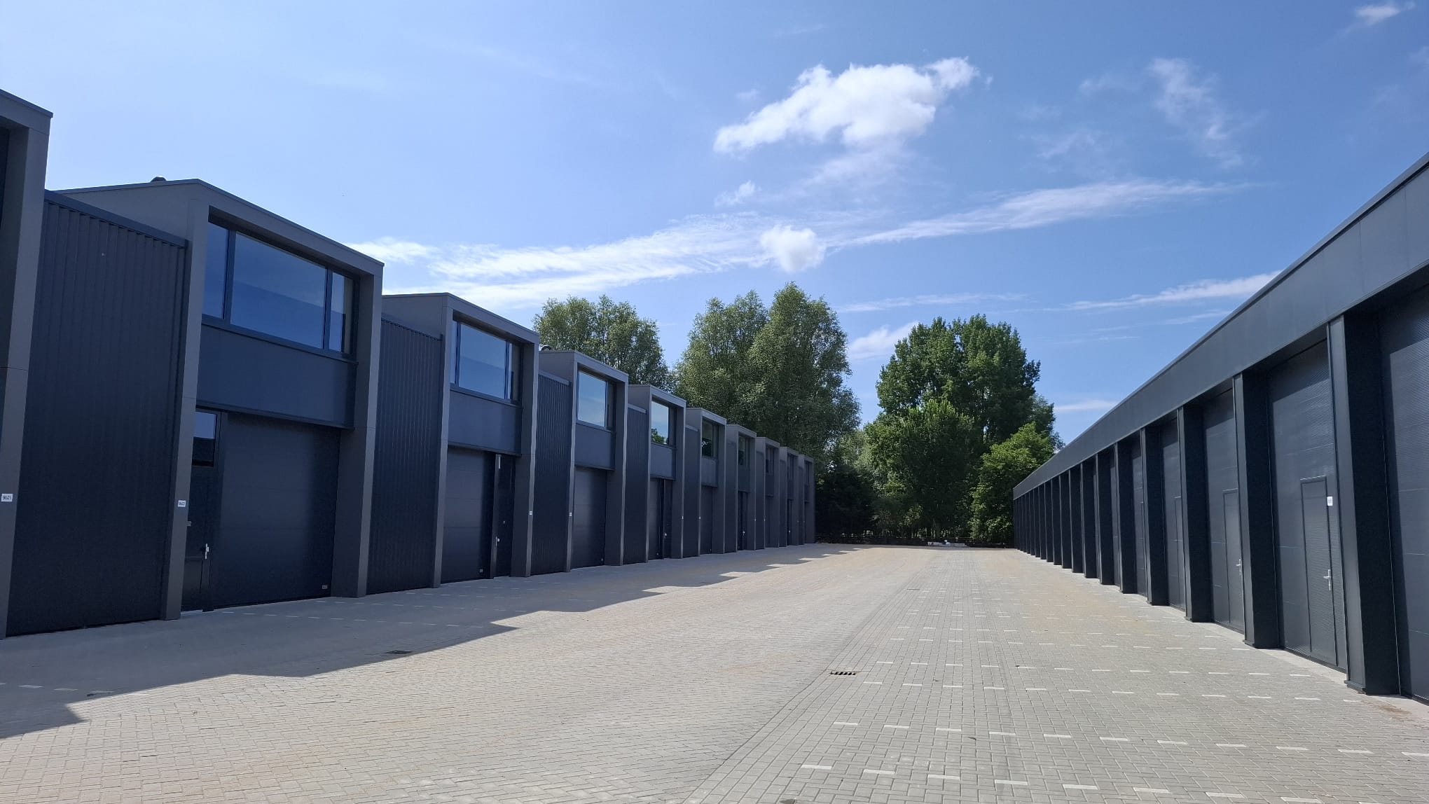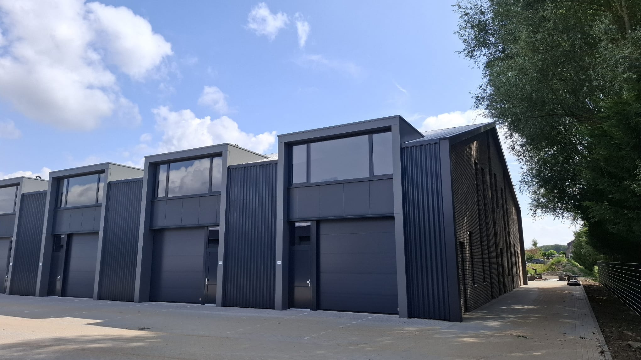 De gevels zijn voorzien van geïsoleerde sandwichpanelen met een moderne industriële uitstraling. De aluminium gevelelementen zijn standaard uitgevoerd met HR++ beglazing en zijn gemonteerd in wit gegronde houten stelkozijnen. Elke unit beschikt over een handbediende overheaddeur met geïntegreerde loopdeur.