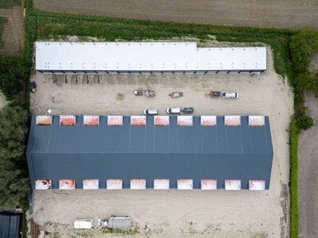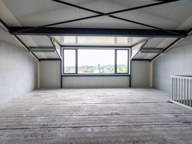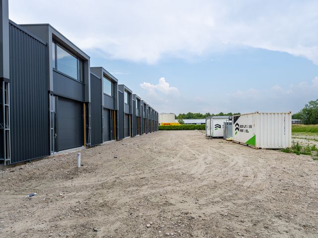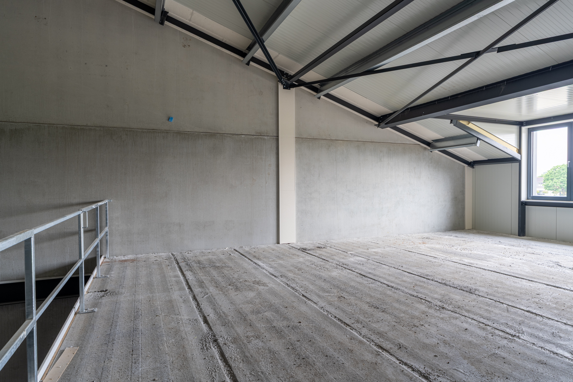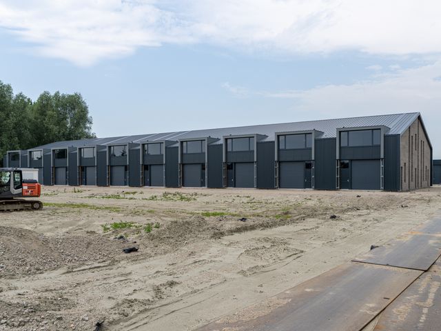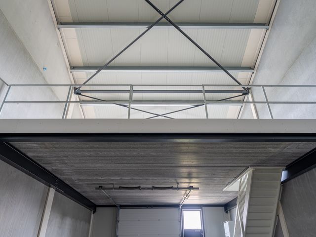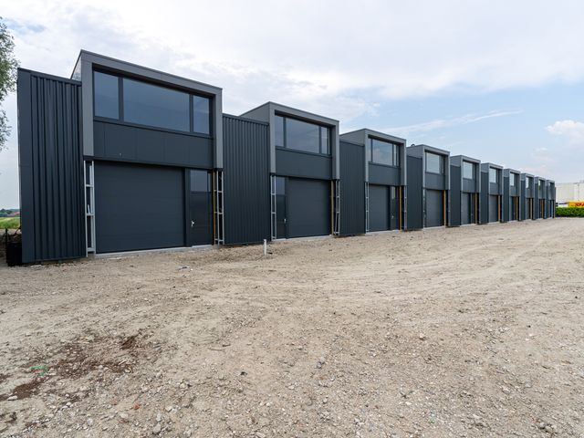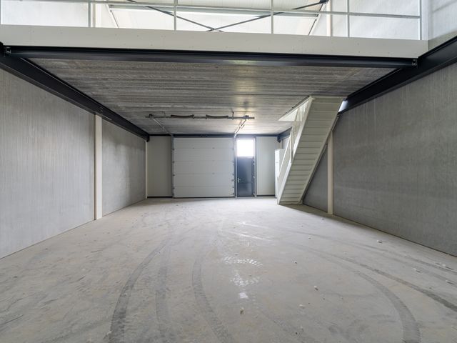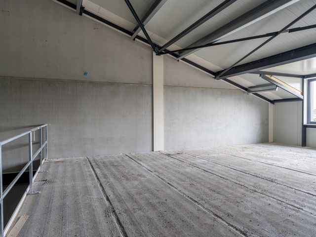 Deze moderne bedrijfsunit van ca. 200 m² is verdeeld over twee lagen. De begane grond (ca. 120 m²) is ingericht als bedrijfsruimte en voorzien van een elektrisch bedienbare overheaddeur en een monoliet afgewerkte betonvloer. De verdieping (ca. 80 m²) bestaat deels uit een verdiepingsvloer aan de voorzijde, ideaal als kantoor of opslag. Dankzij deze opzet blijft de vrije hoogte aan de achterzijde optimaal benutbaar. De gevel is voorzien van aluminium draai/kiepramen, wat zorgt voor veel natuurlijk lichtinval.
