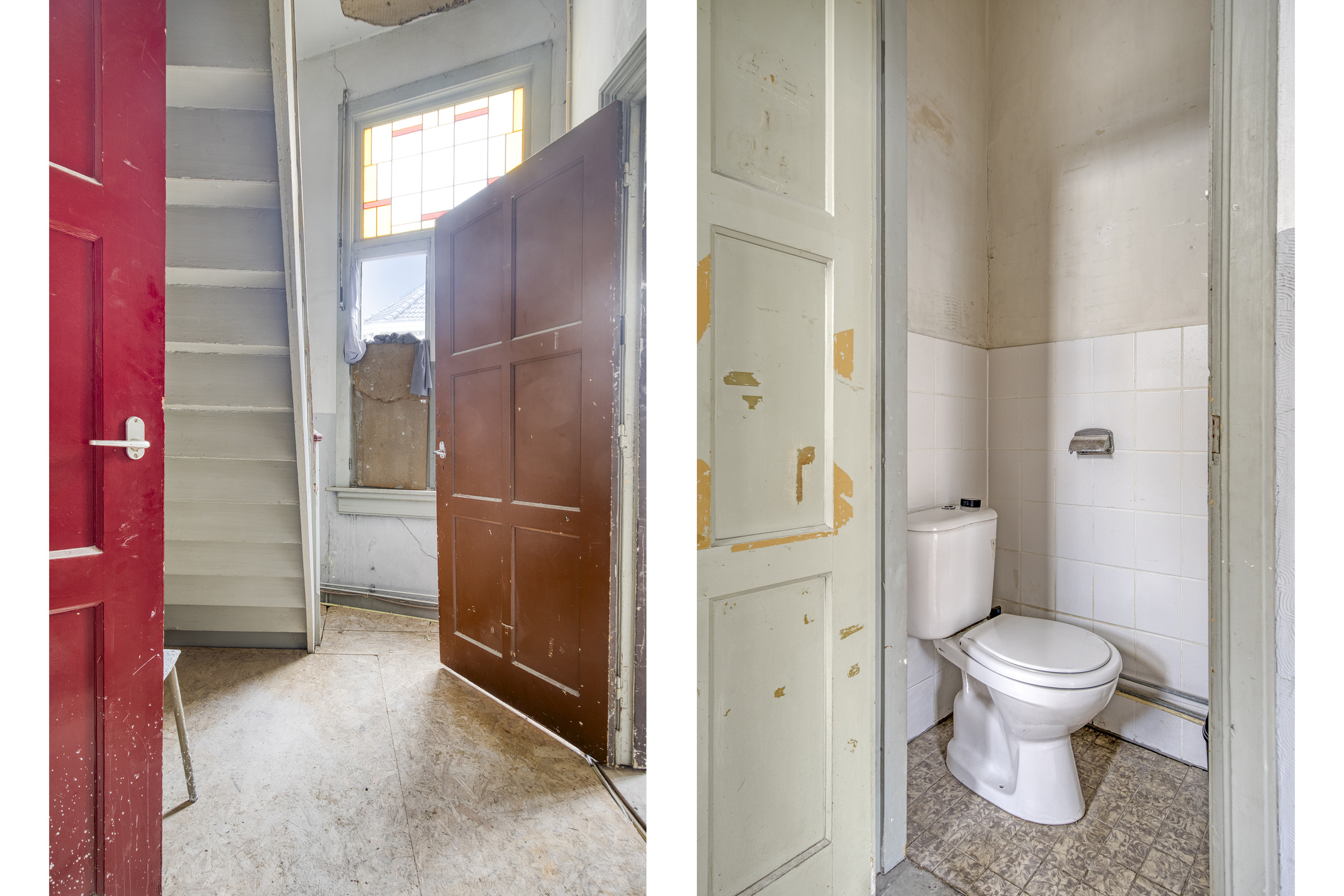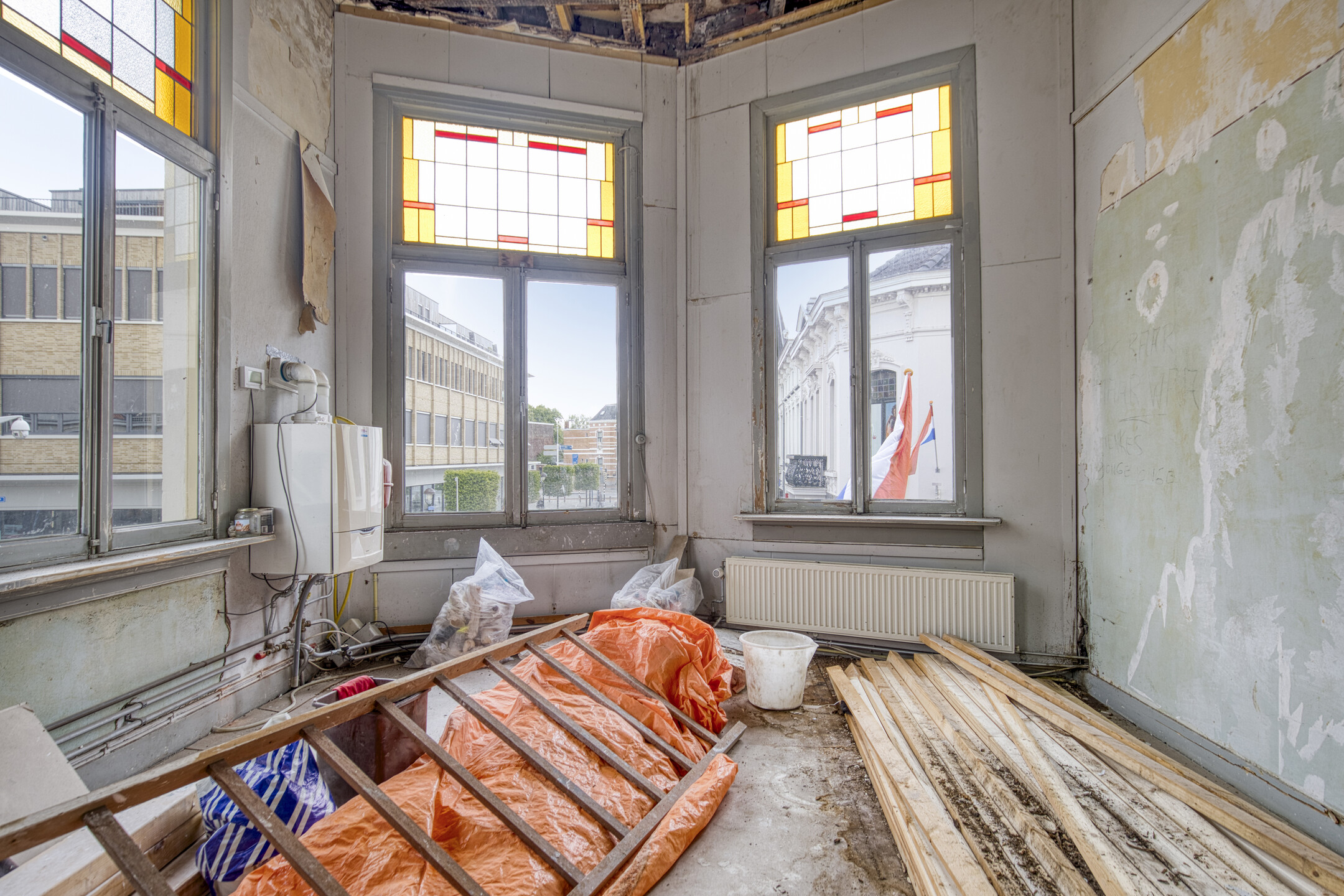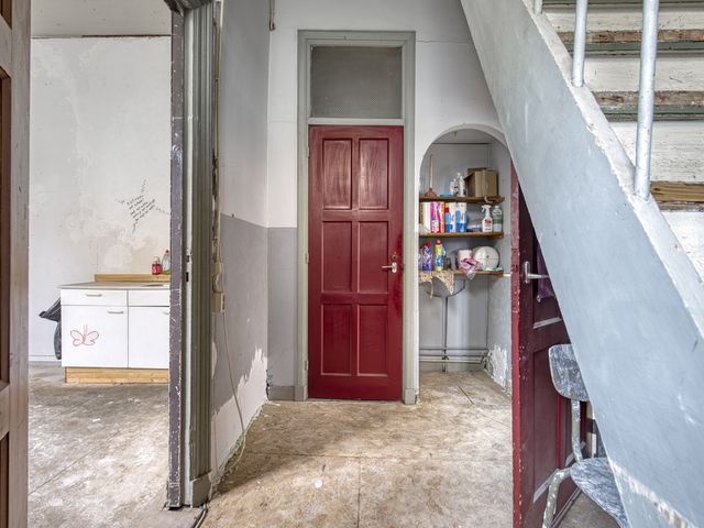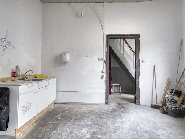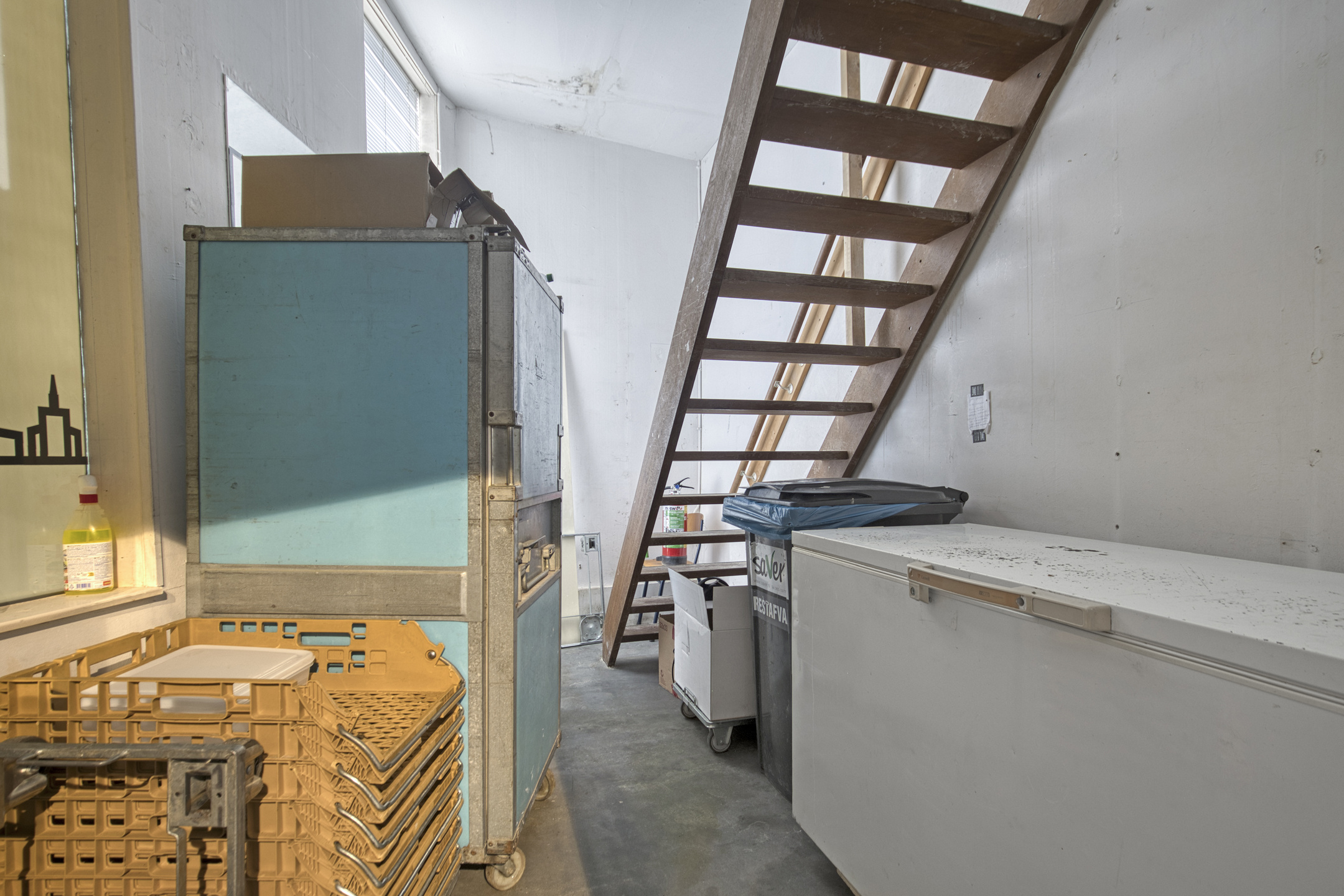 De bovenverdieping bestaat uit een voormalige -casco- bovenwoning, verdeeld over twee etages een gebruiksoppervlak van 80m². Daarnaast bieden ruimtes volop mogelijkheden voor het inrichten van kantoorruimten, ateliers, of ondersteunende functies bij een commerciële invulling op de begane grond.