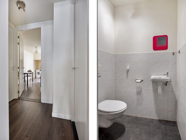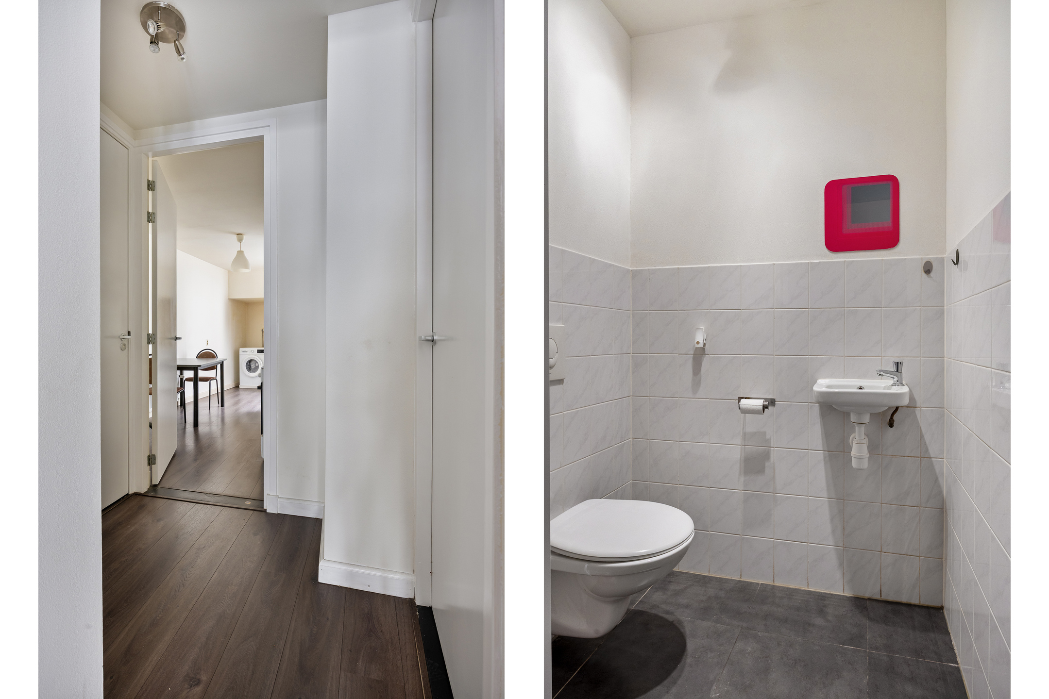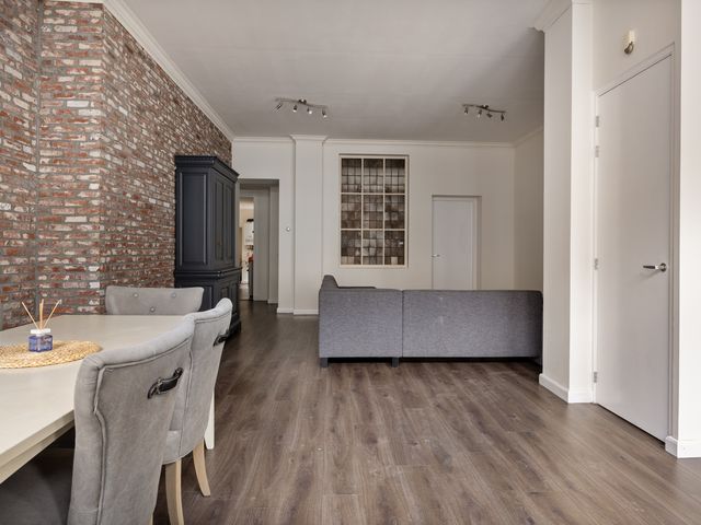 Via de entree kom je direct binnen in de leefruimte. Deze ruimte biedt voldoende plaats voor een garderobe, een eethoek en een comfortabele zithoek en vormt het centrale punt van de woning.
