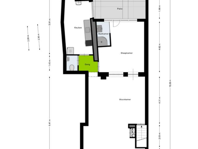 De woning beschikt over een eigen buitenplaats. Deze is compact van formaat, maar biedt voldoende ruimte voor het creëren van een aangename zitplek.