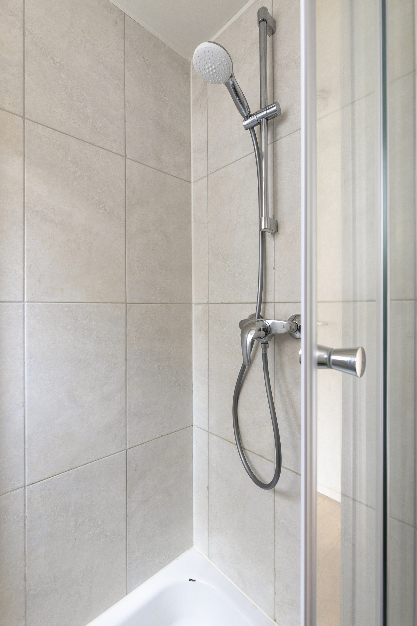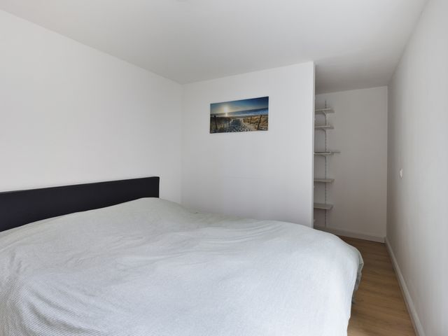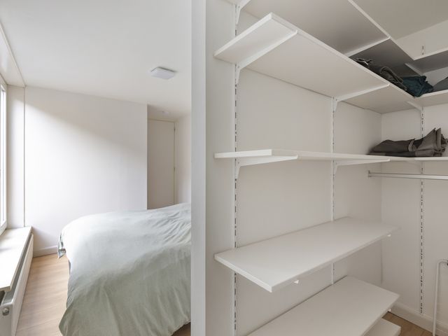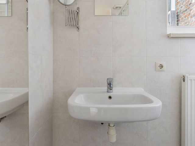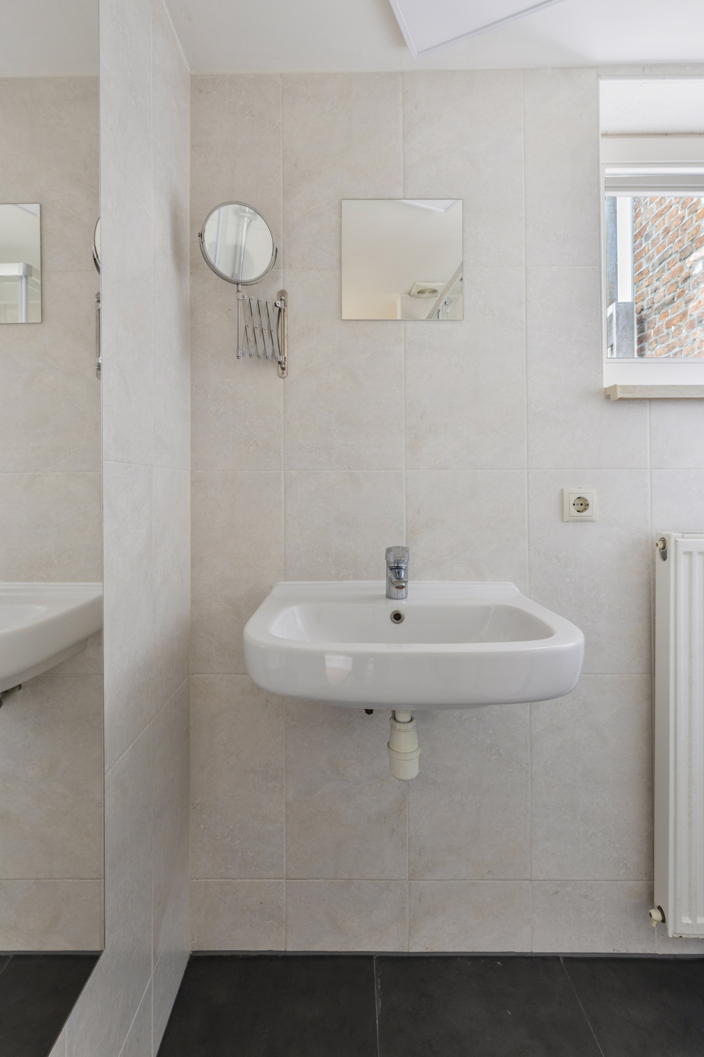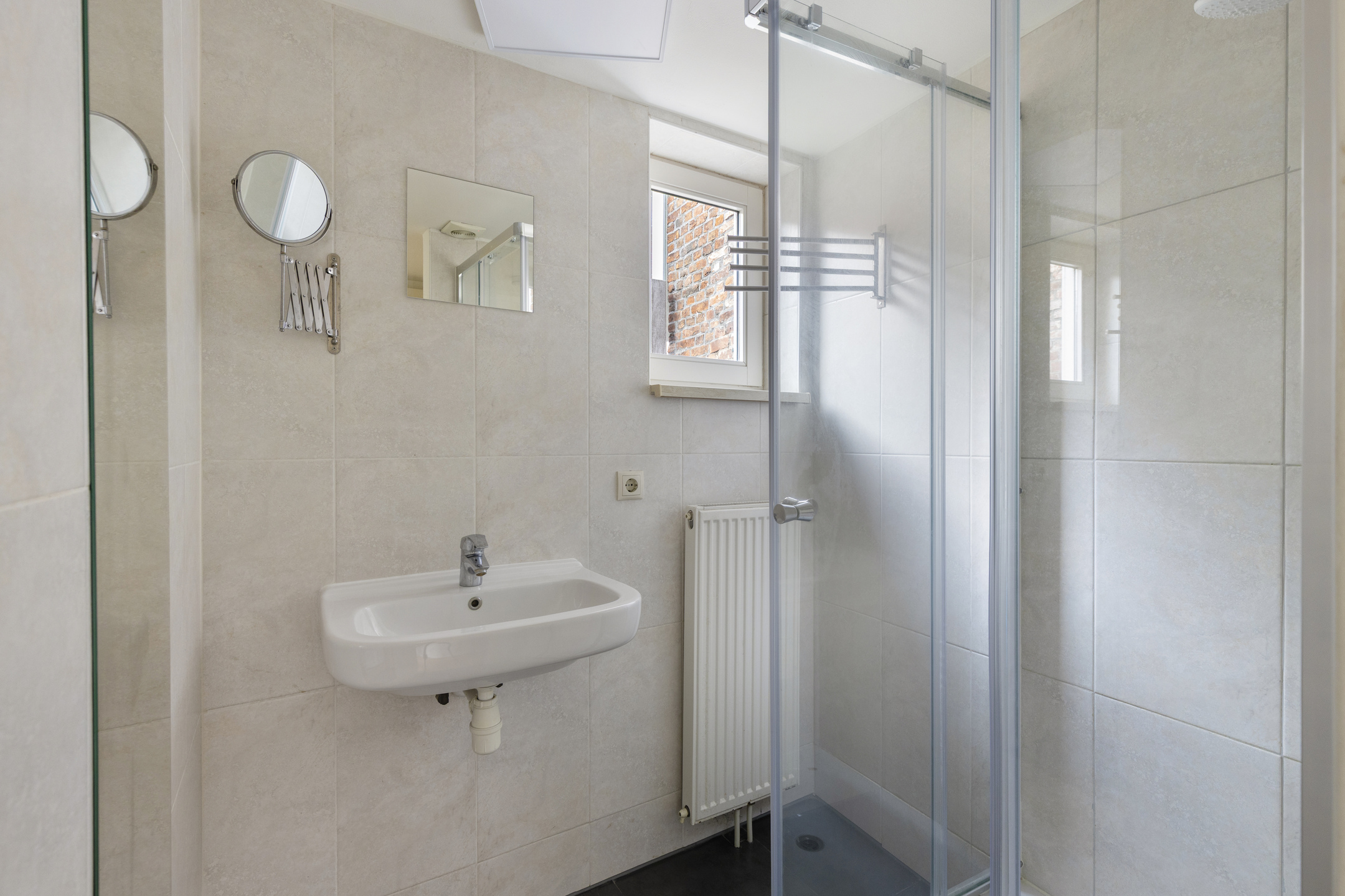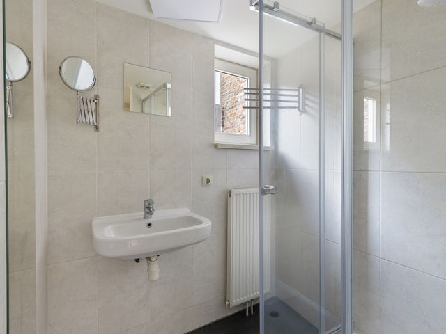 Aan de achterzijde van de woning ligt de slaapkamer. Deze slaapkamer beschikt over een walking closet en een doucheruimte en suite. De badkamer is voorzien van een douchecabine en een wastafelmeubel, wat zorgt voor extra comfort en een praktische indeling.