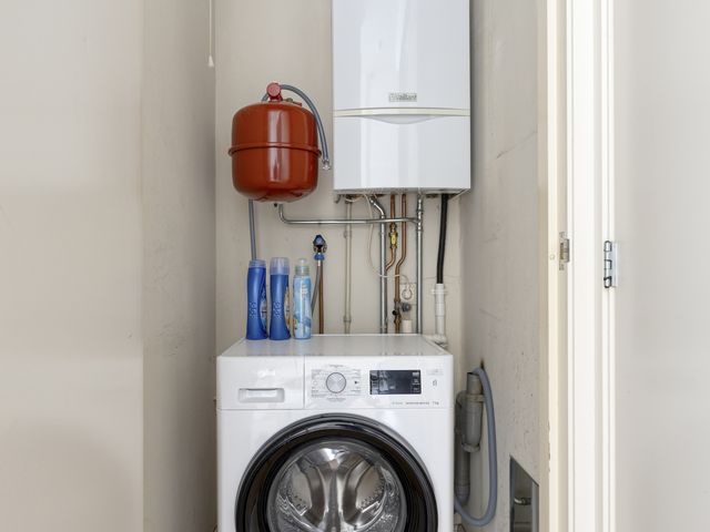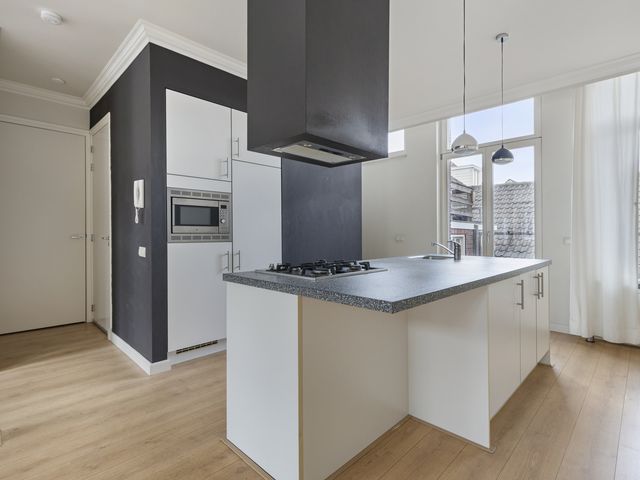 In de leefruimte bevindt zich de open keuken met kookeiland. De keuken is praktisch ingericht en voorzien van een spoelbak met kraan, laden en kastruimte. Daarnaast beschikt de keuken over een oven, een 4-pits gasfornuis met afzuigkap en een koelkast en een vaatwasser, waardoor je direct over alle benodigde voorzieningen beschikt.