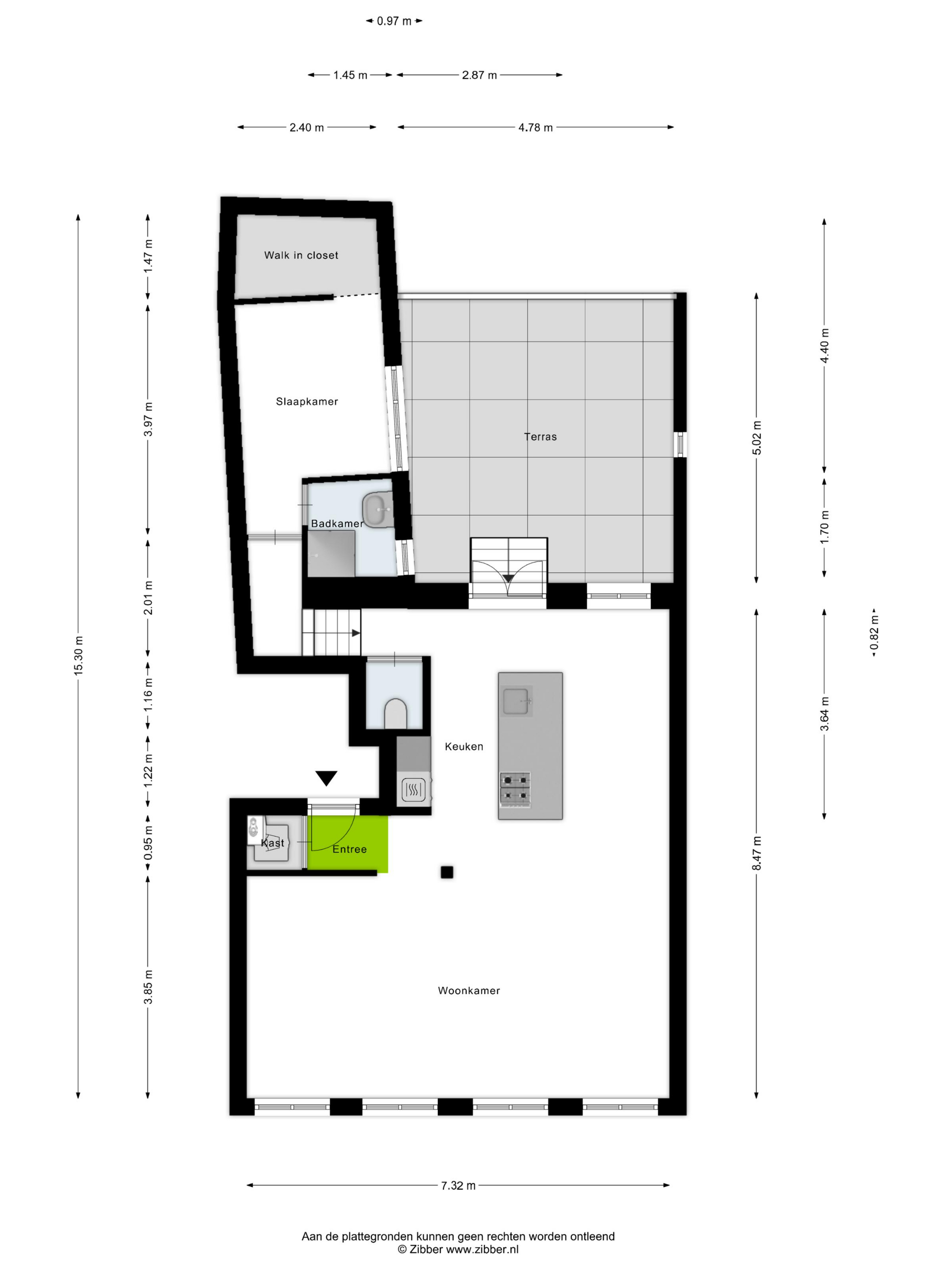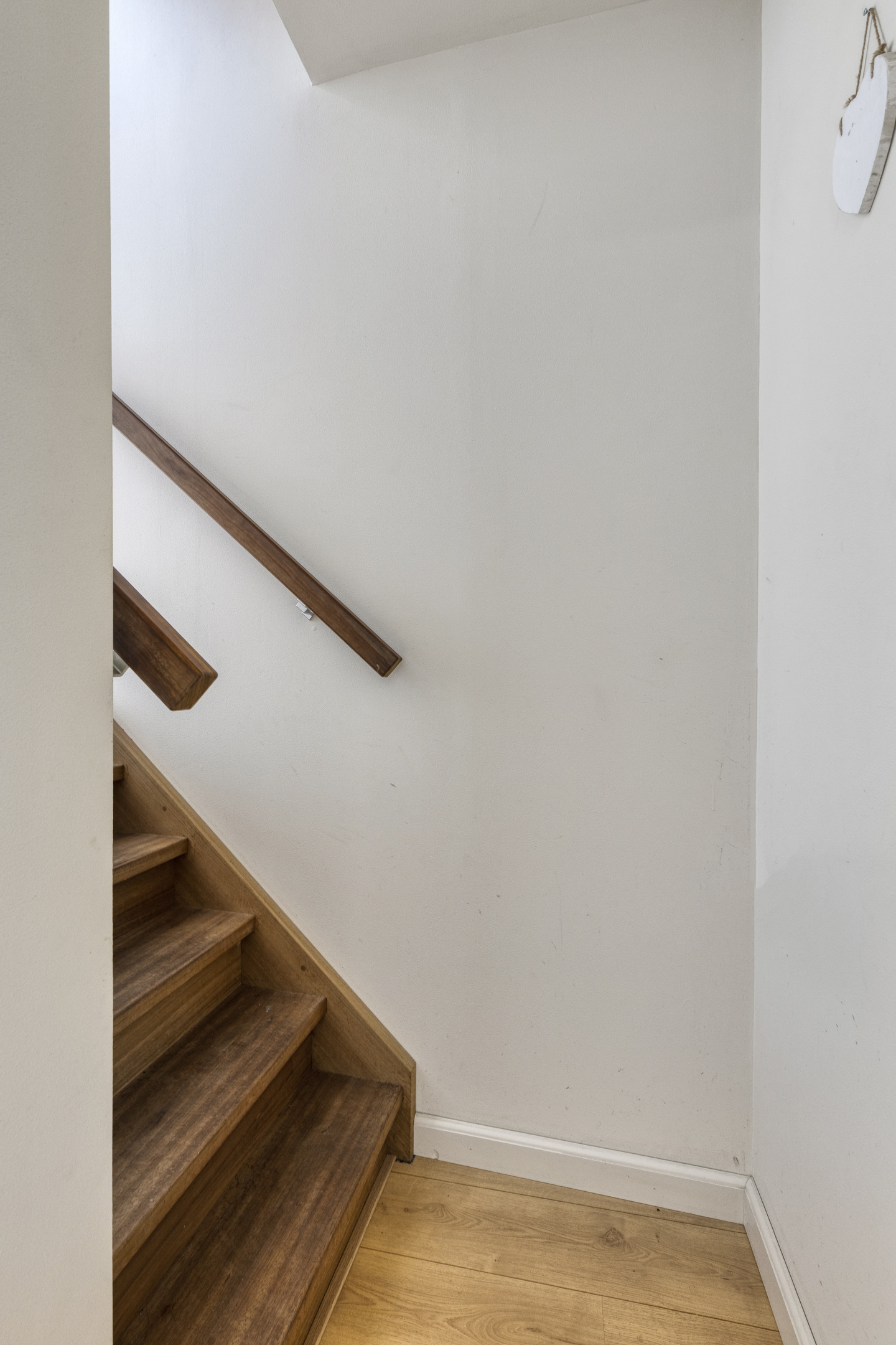 Via de entree kom je binnen in de leefruimte. Deze lichte ruimte vormt het centrale punt van de woning en biedt voldoende plaats voor een garderobe, een eethoek en een comfortabele zithoek.
