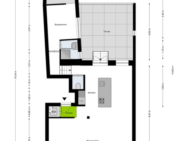 Het appartement beschikt over een eigen buitenterras. Deze buitenruimte biedt voldoende mogelijkheden voor het creëren van een aangename zitplek waar je kunt genieten van het buitenleven.