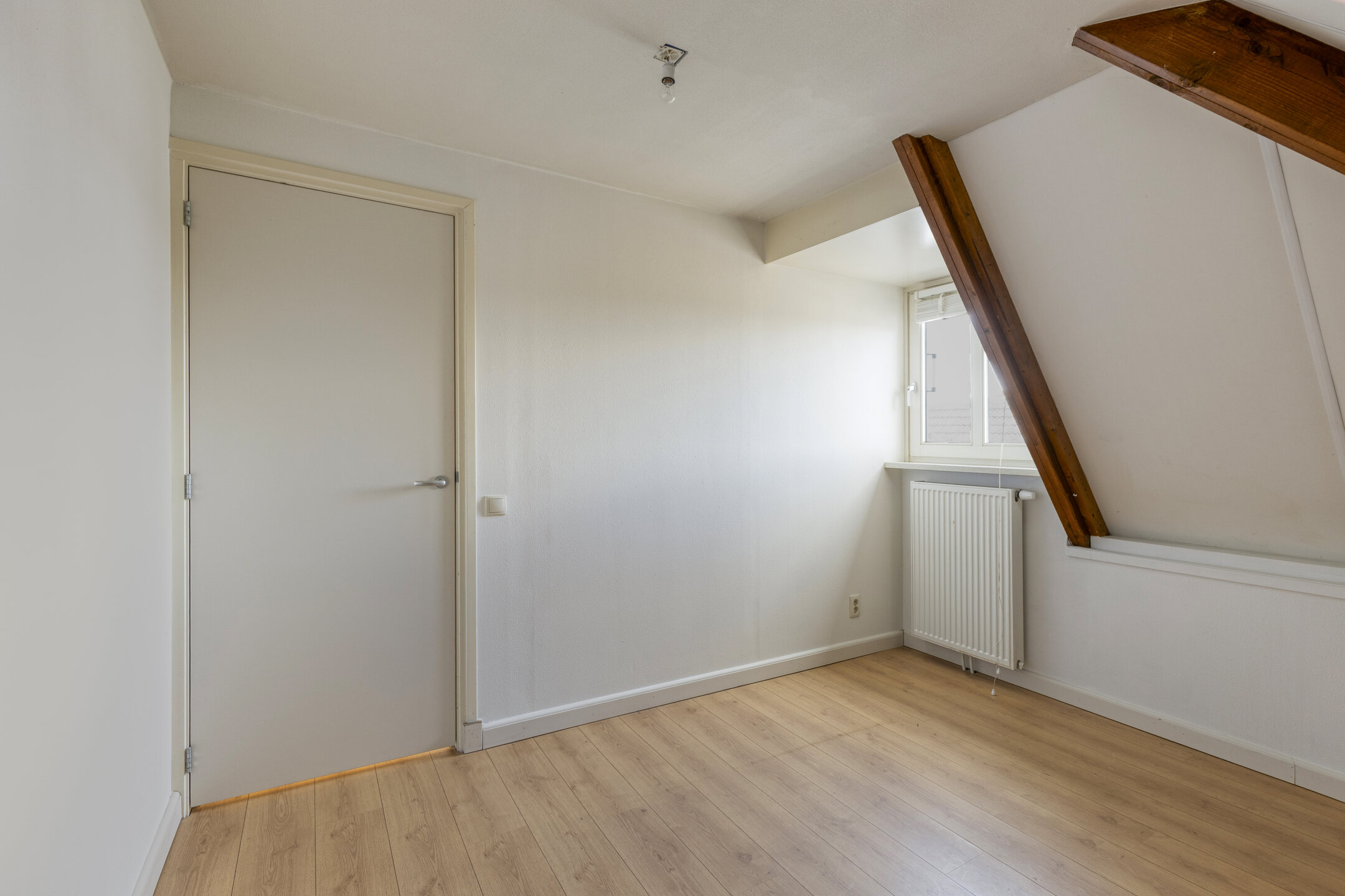 Aan de achterzijde van de woning ligt de slaapkamer. Deze slaapkamer biedt voldoende ruimte voor een bed en kastruimte en vormt een rustige plek binnen de woning.