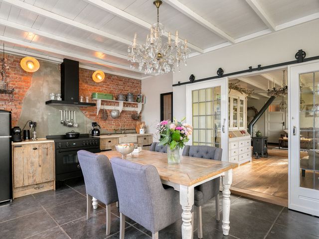 De keuken is het hart van de woning en straalt landelijke charme uit met een warme, authentieke sfeer. Deze ruime leefkeuken, vernieuwd in 2023, is voorzien van modern apparatuur dat koken aangenaam en eenvoudig maakt. De brede inductiekookplaat met bijpassende oven, de vaatwasser en het afzuigsysteem dragen bij aan optimaal kookcomfort. De vele kasten en laden bieden volop opbergruimte, waardoor het geheel netjes en overzichtelijk blijft. Het boerderijachtige karakter maakt van deze keuken een plek waar je niet alleen kookt, maar ook samenkomt met familie en vrienden voor lange, gezellige avonden aan tafel.