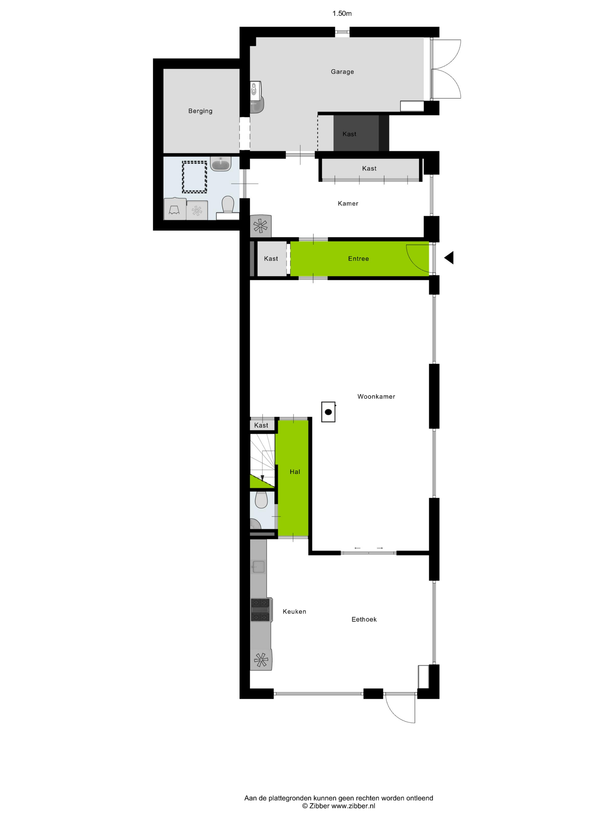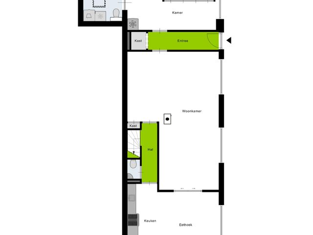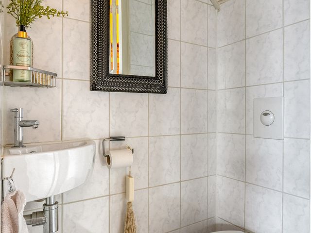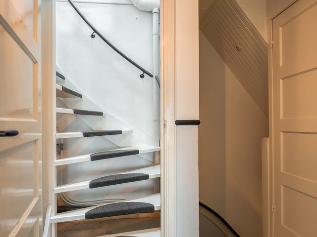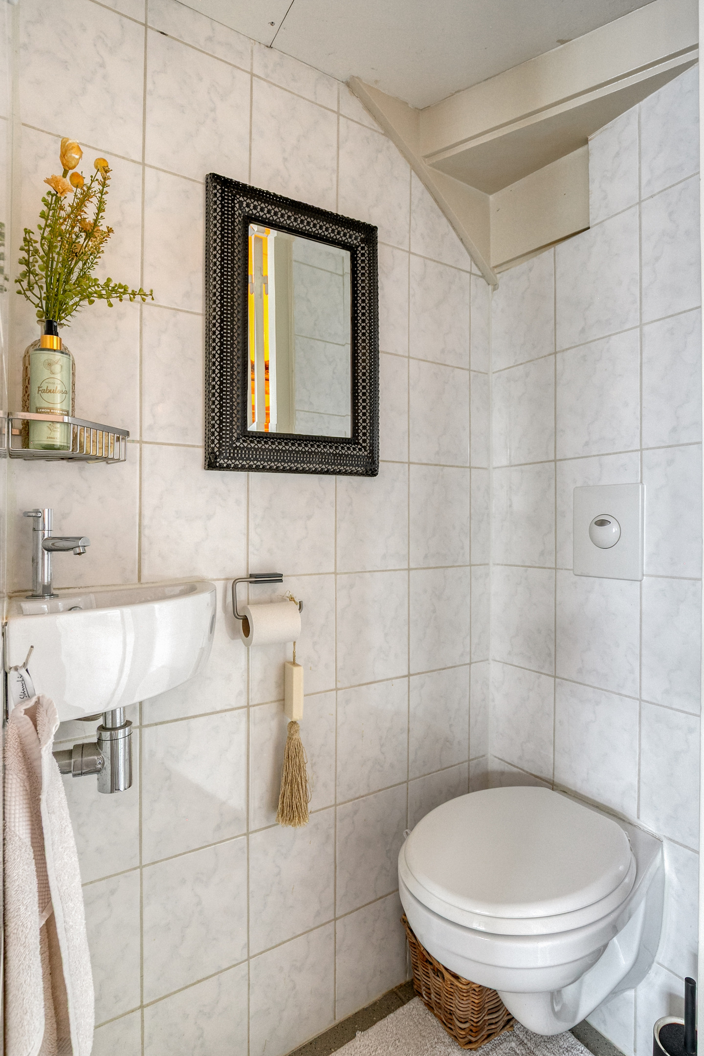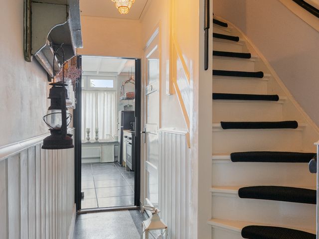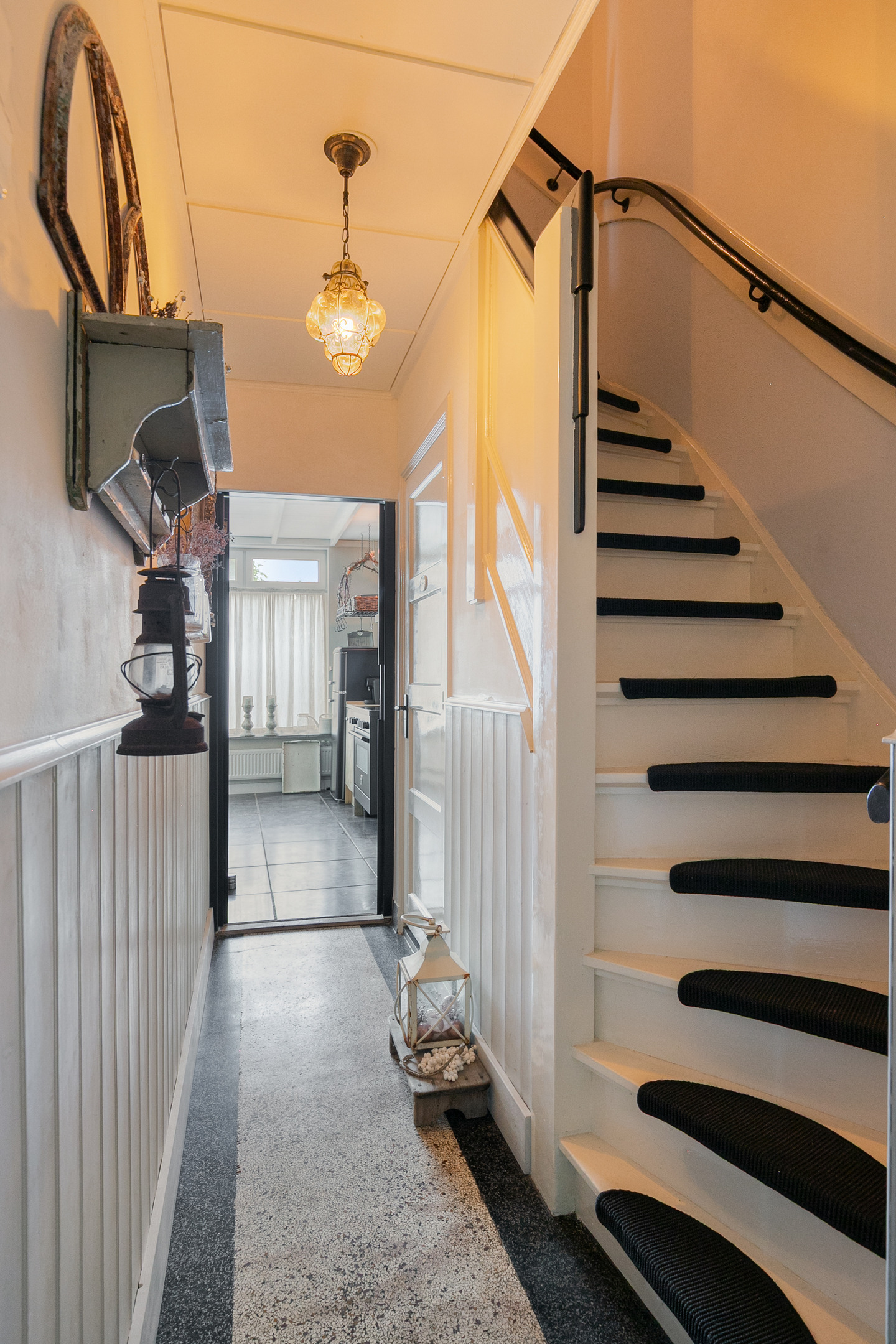 Grenzend aan de keuken is er de hal met toilet en trap naar de bovenverdieping.
