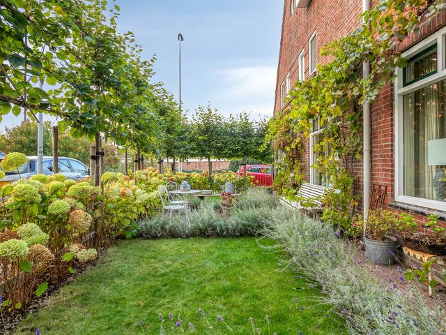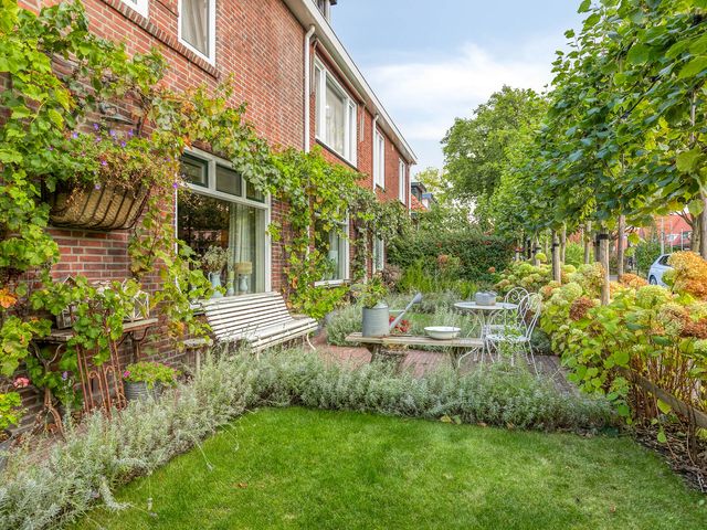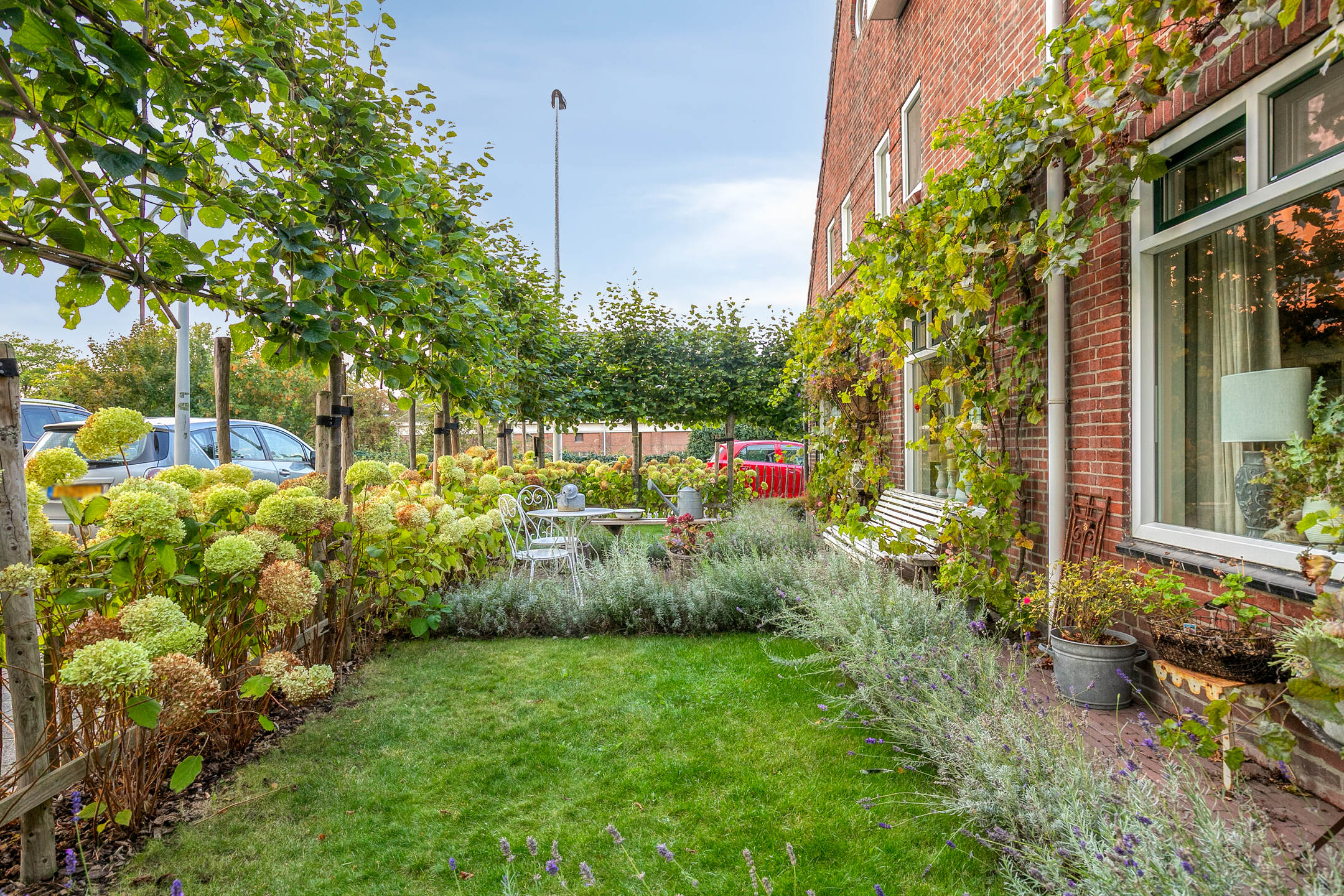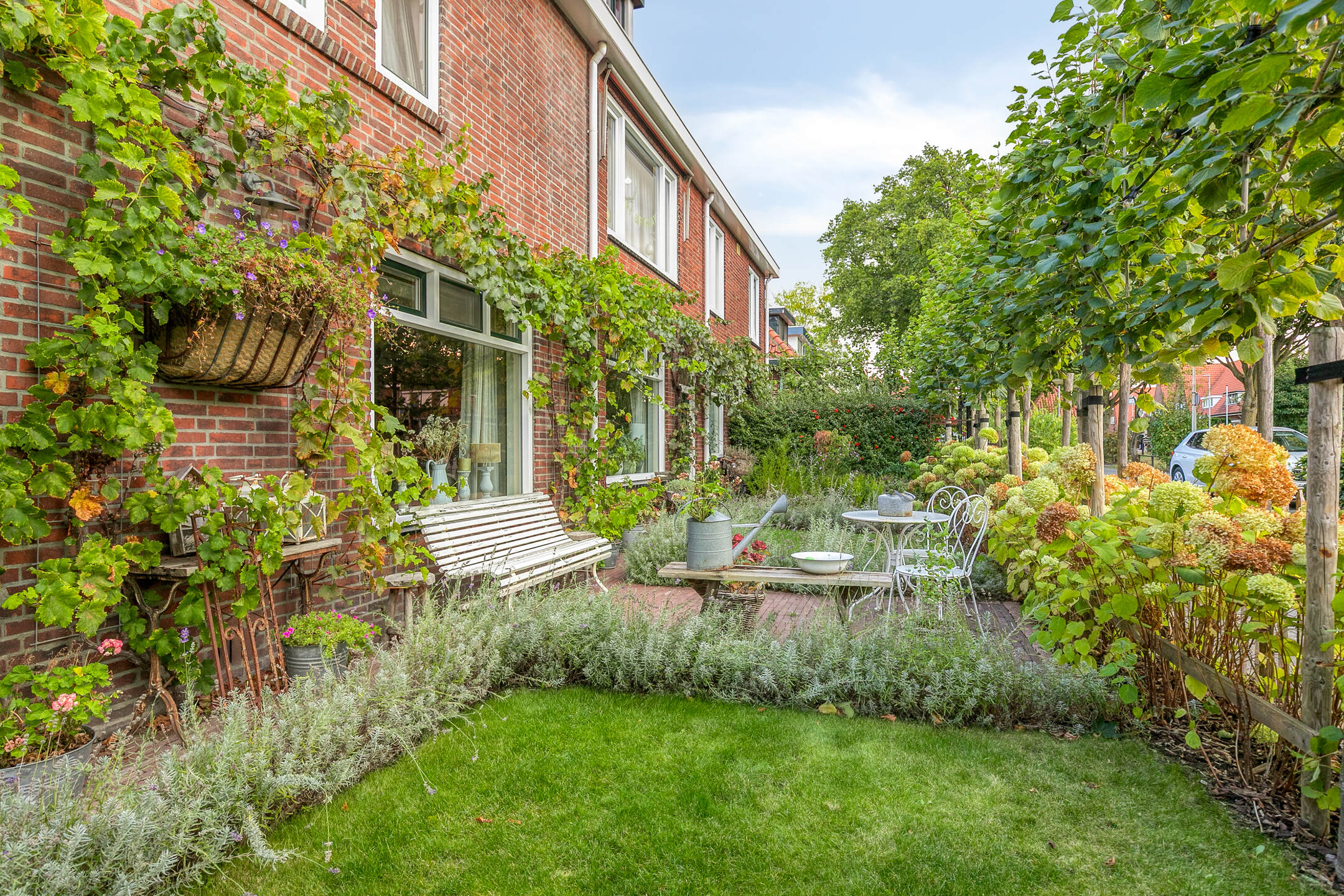 Aan de voorzijde van de woning bevindt zich een knusse tuin dat zorgt voor een charmante uitstraling. Hier is voldoende ruimte voor een gezellig bankje waar je op zonnige dagen heerlijk kunt genieten van een kop koffie of een goed boek. Dankzij het groene plantsoen aan de overkant voelt de plek bovendien extra ruim en rustig aan, waardoor je hier een fijne combinatie hebt van privacy en uitzicht.