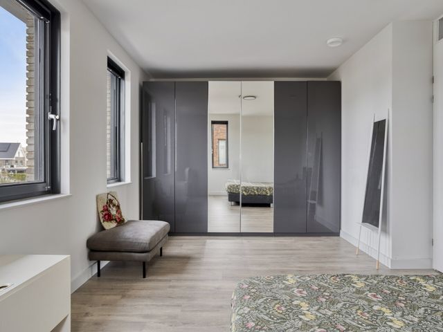 Master bedroom: royaal, licht en elegant, met voldoende ruimte voor een tweepersoonsbed, kasten en een gezellige zithoek.