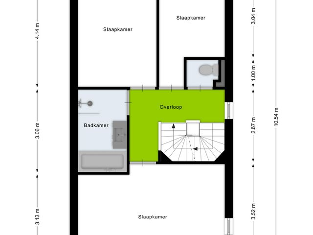 De ruime overloop op de eerste verdieping brengt je naar drie slaapkamers, de badkamer en een aparte toiletruimte.