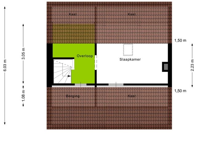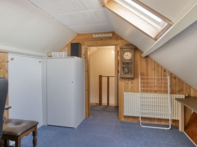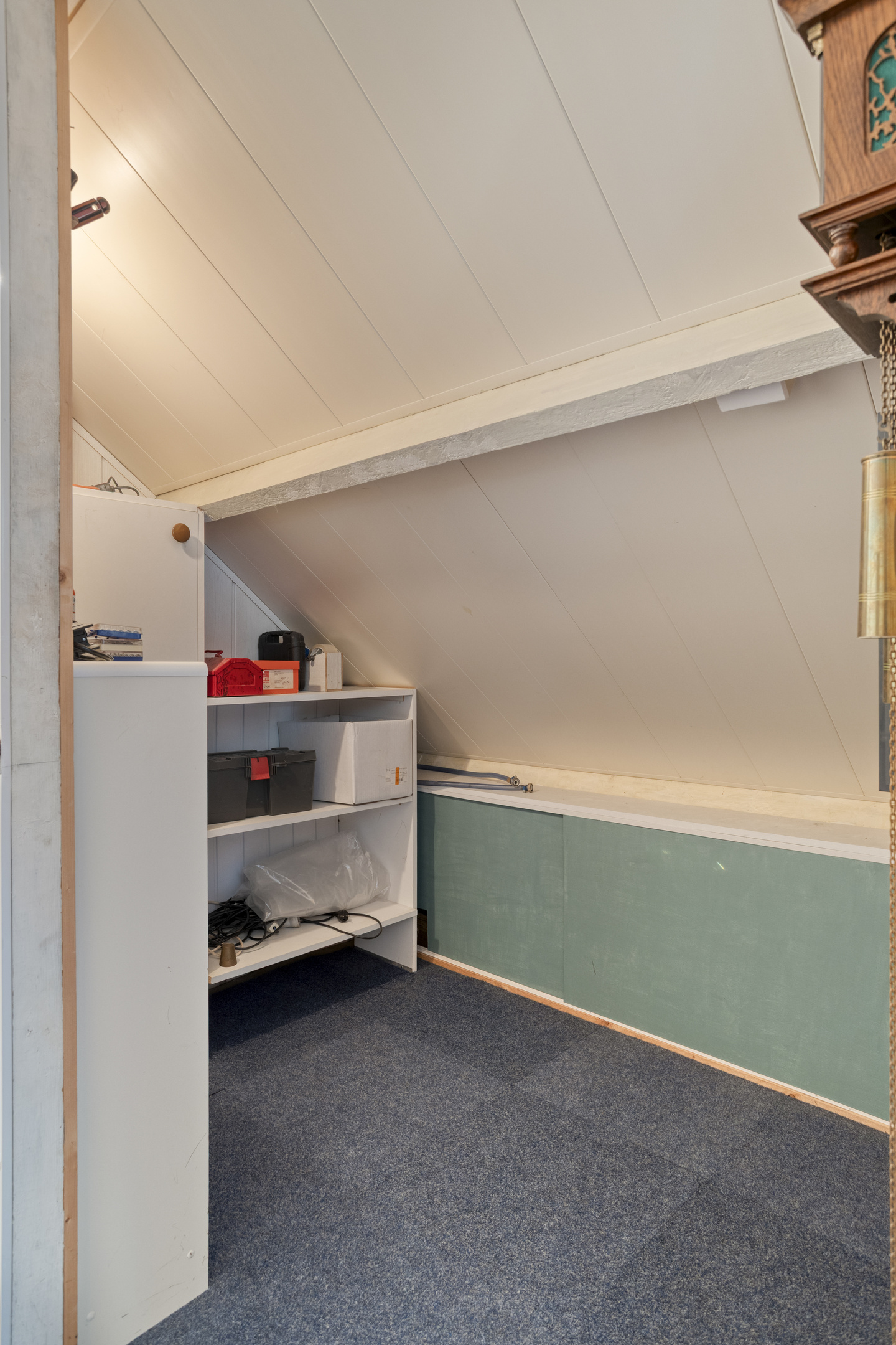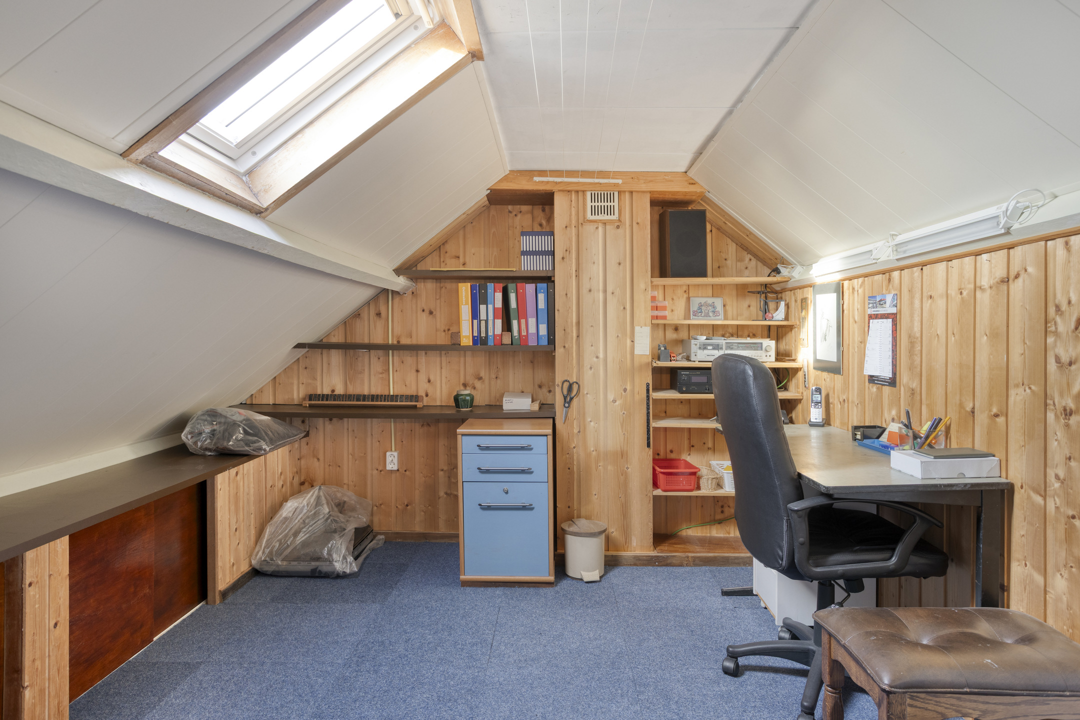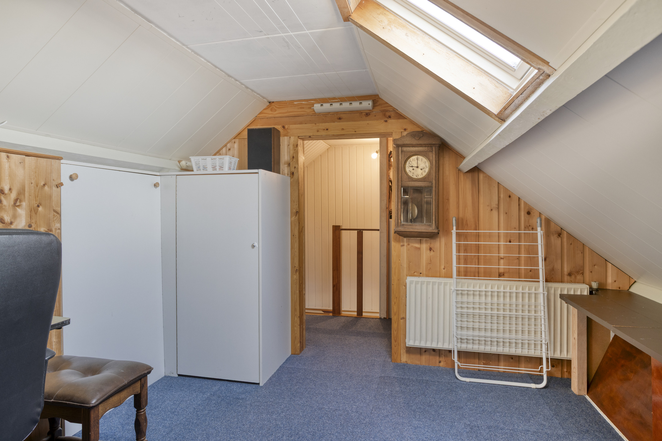De vaste trap brengt je naar de tweede verdieping, waar je wordt verrast door de ruimte. Op de overloop is extra bergruimte aanwezig, en daarnaast vind je hier een derde slaapkamer met dakraam. Deze verdieping is uitstekend geschikt als hobbyruimte, werkkamer of logeerkamer. Met een opfrisbeurt maak je hier in korte tijd een fijne extra kamer van.