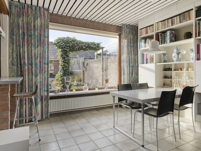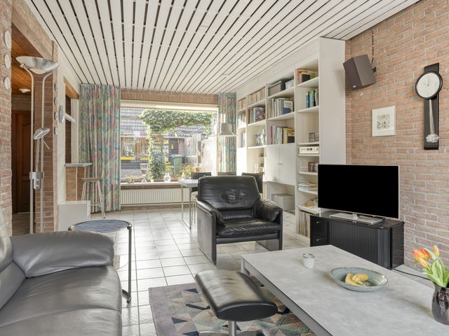 De woonkamer is licht en ruim dankzij de raampartijen aan zowel de voor- als achterzijde. De ruimte biedt volop mogelijkheden om een sfeervolle zithoek en eethoek te creëren. Met een nieuwe vloer en frisse kleuren maak je hier eenvoudig een eigentijdse leefruimte van.
