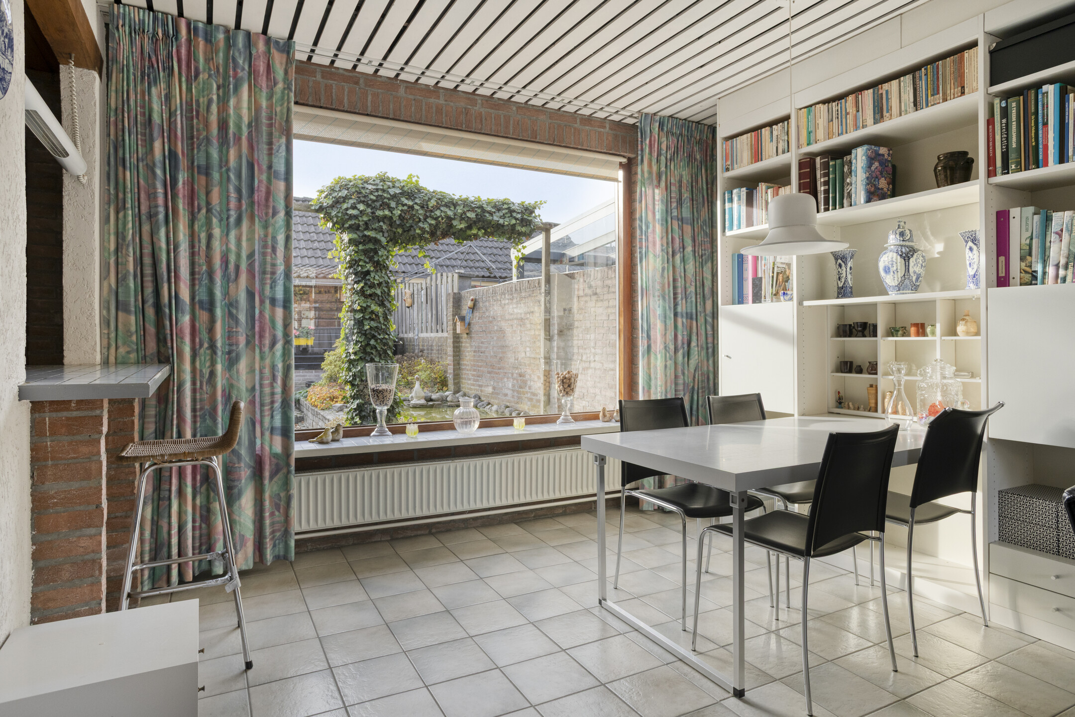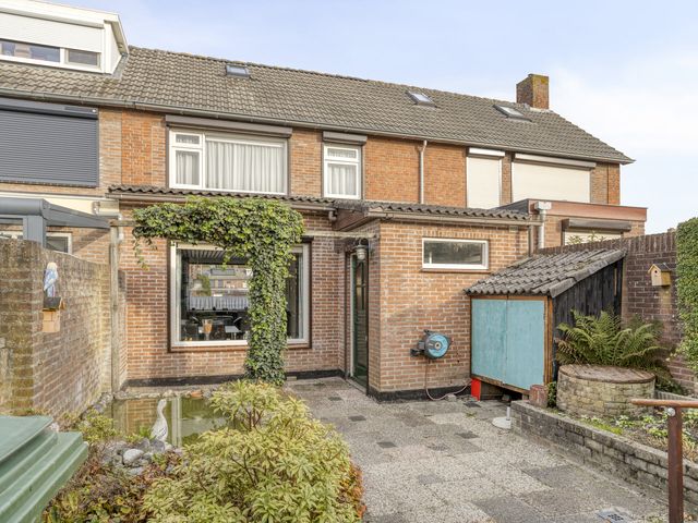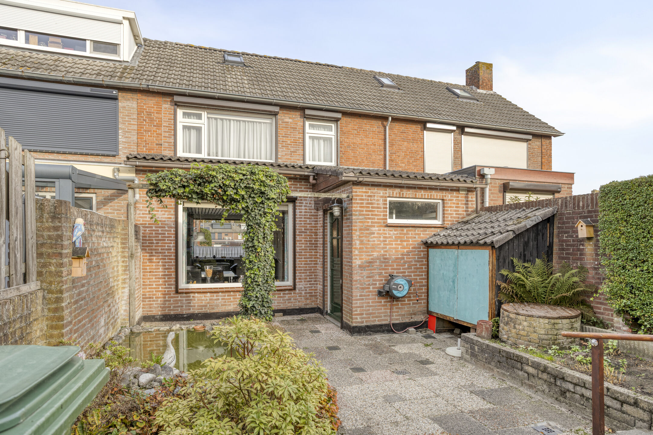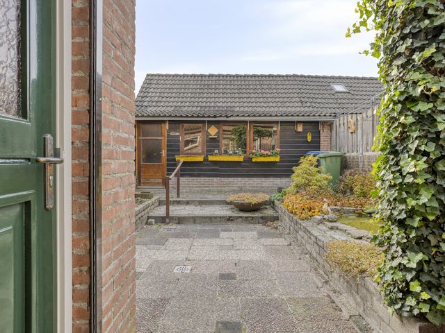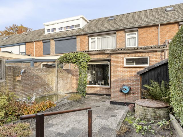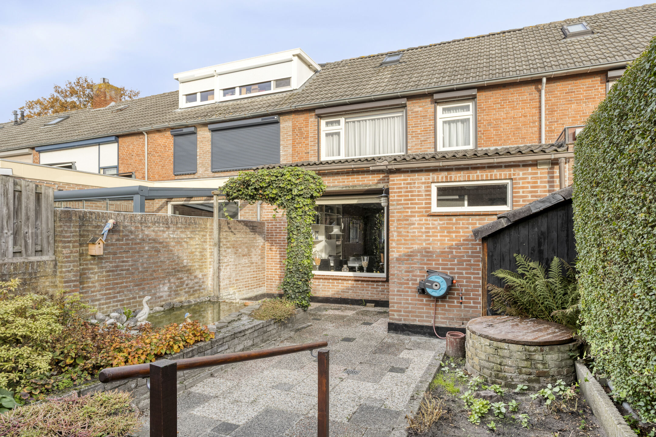 De achtertuin is onderhoudsvriendelijk aangelegd met sierbestrating, verhoogde plantenbakken en een vijver. Er is genoeg ruimte voor een gezellige zithoek of eettafel, zodat je ook buiten heerlijk kunt genieten.