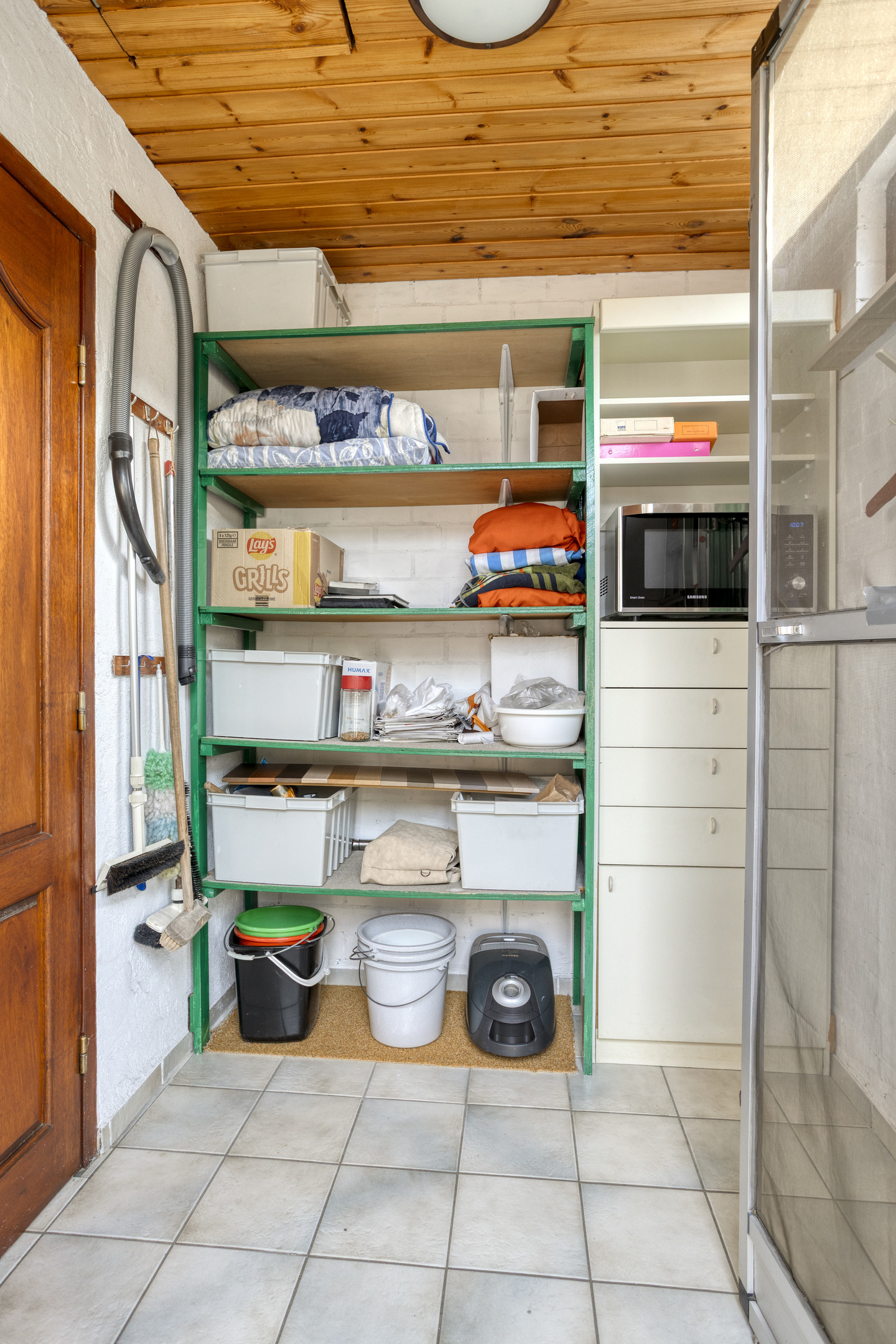 De bijkeuken is praktisch ingedeeld en ideaal als extra bergruimte of voor het plaatsen van huishoudelijke apparatuur. Vanuit hier heb je direct toegang tot de achtertuin.