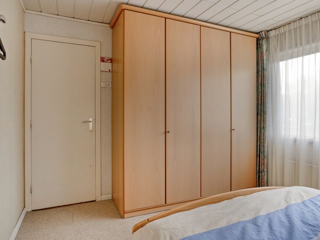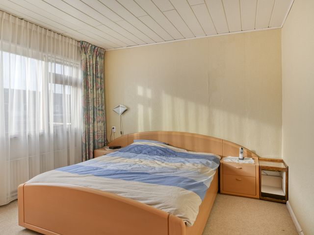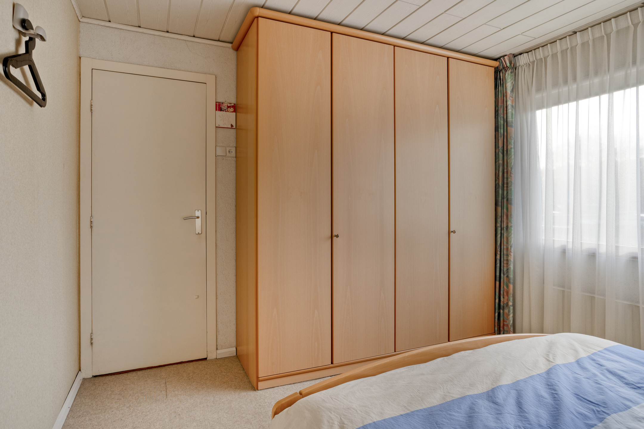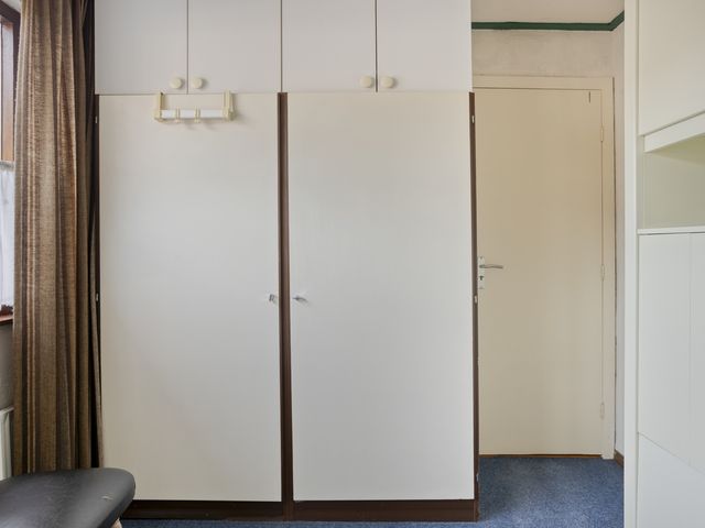 Slaapkamer 1 ligt aan de achterzijde en is ruim van opzet. Dankzij het elektrische rolluik kun je hier heerlijk rustig slapen. Er is voldoende ruimte voor een tweepersoonsbed, kledingkast en eventueel een dressoir of zitje.