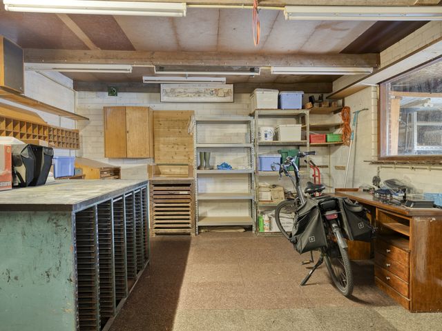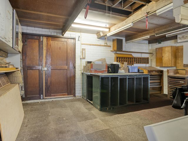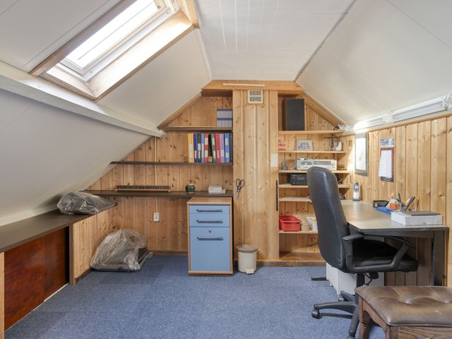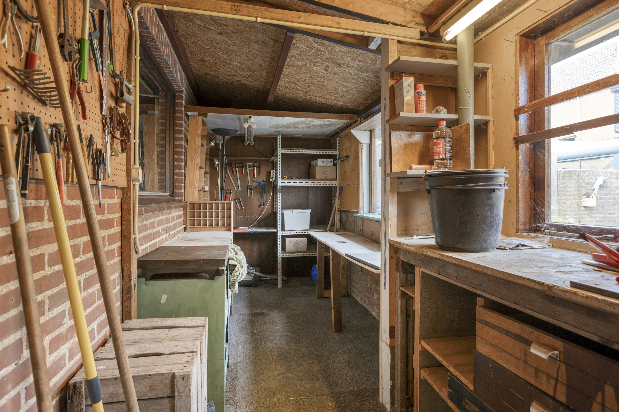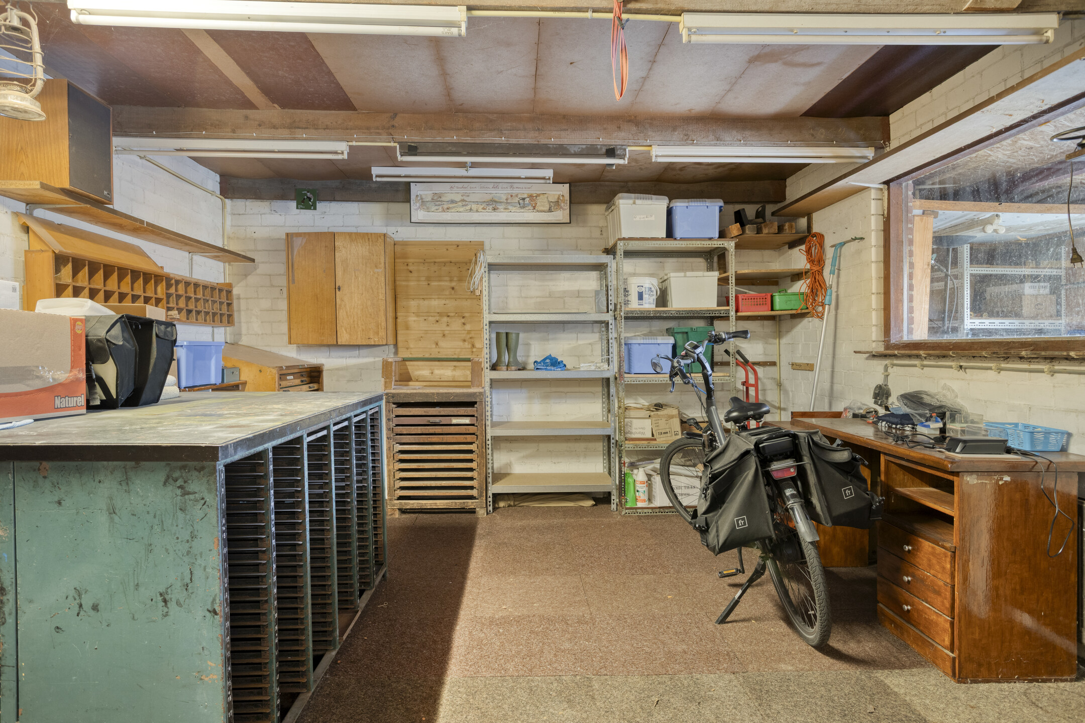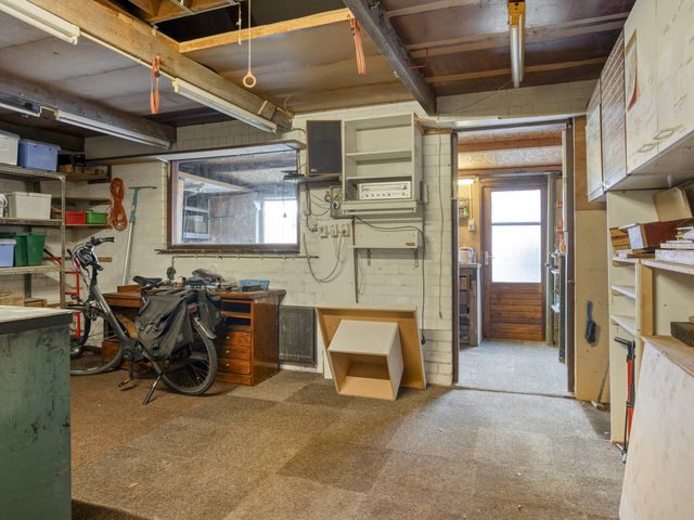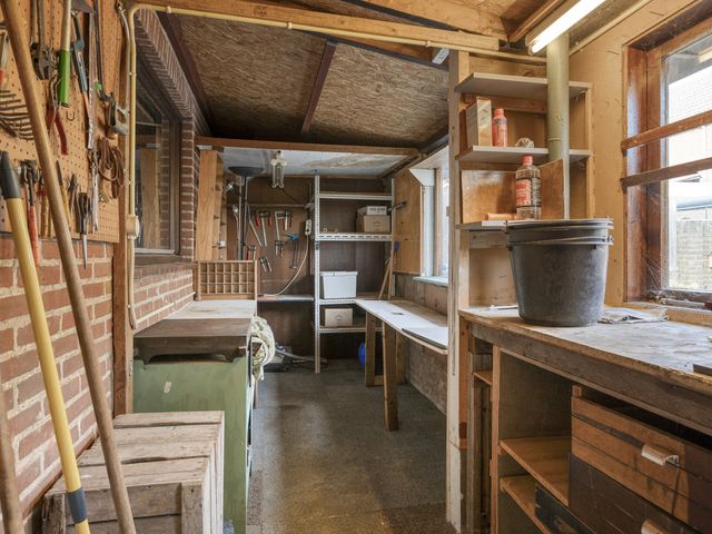 Een groot pluspunt is de ruime schuur achter in de tuin. Deze is ideaal voor de klusser of motorliefhebber: dankzij de dubbele deuren aan de achterzijde rijd je er eenvoudig met een motor of scooter naar binnen. Bovendien beschikt de schuur over een handige vlizozolder voor extra opbergruimte.