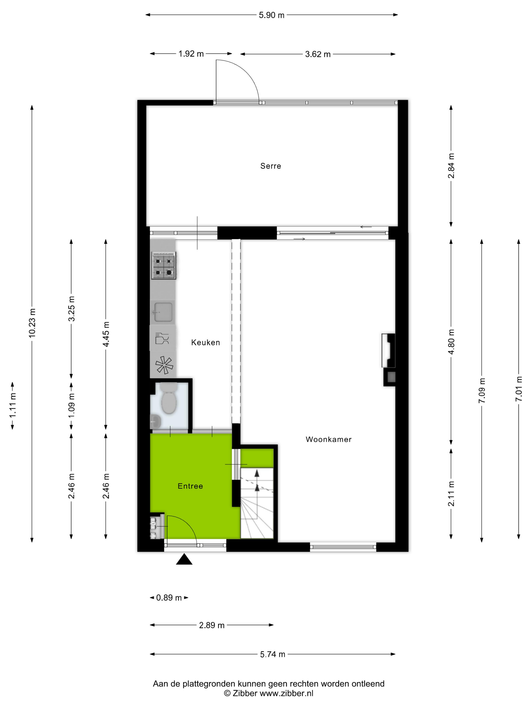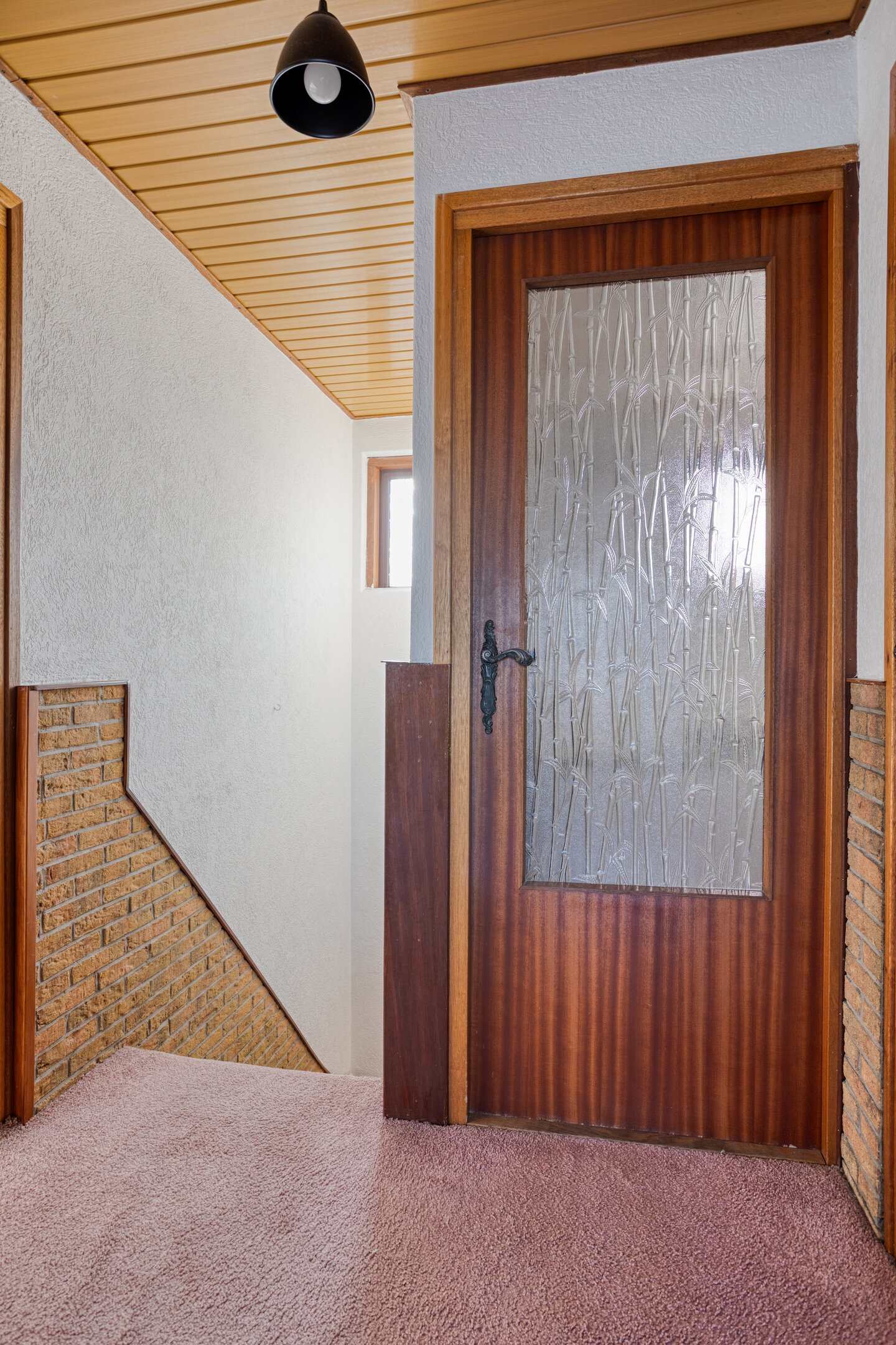 Via de voortuin bereik je de entree van de woning. In de hal bevinden zich de meterkast, ruimte voor een garderobe, het toilet, een praktische bergkelder en de trapopgang naar de eerste verdieping. Vanuit de hal is er toegang tot de woonkamer.