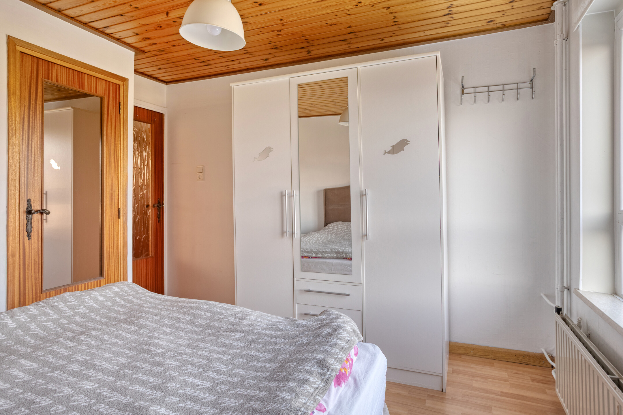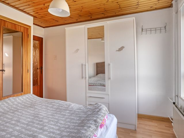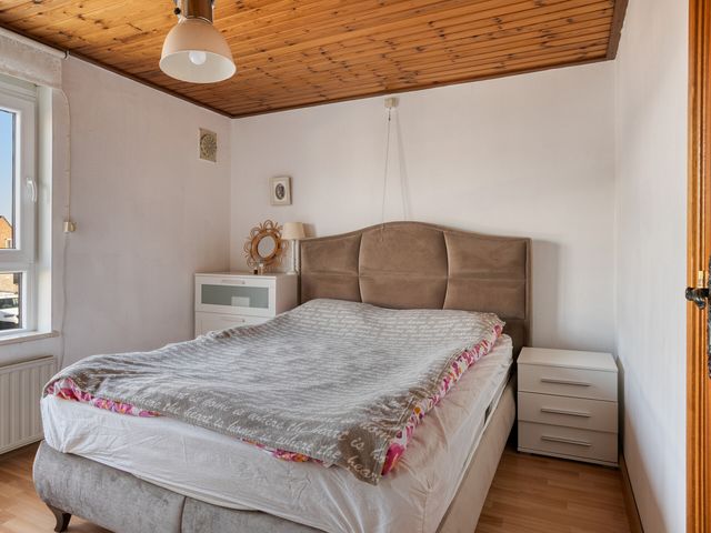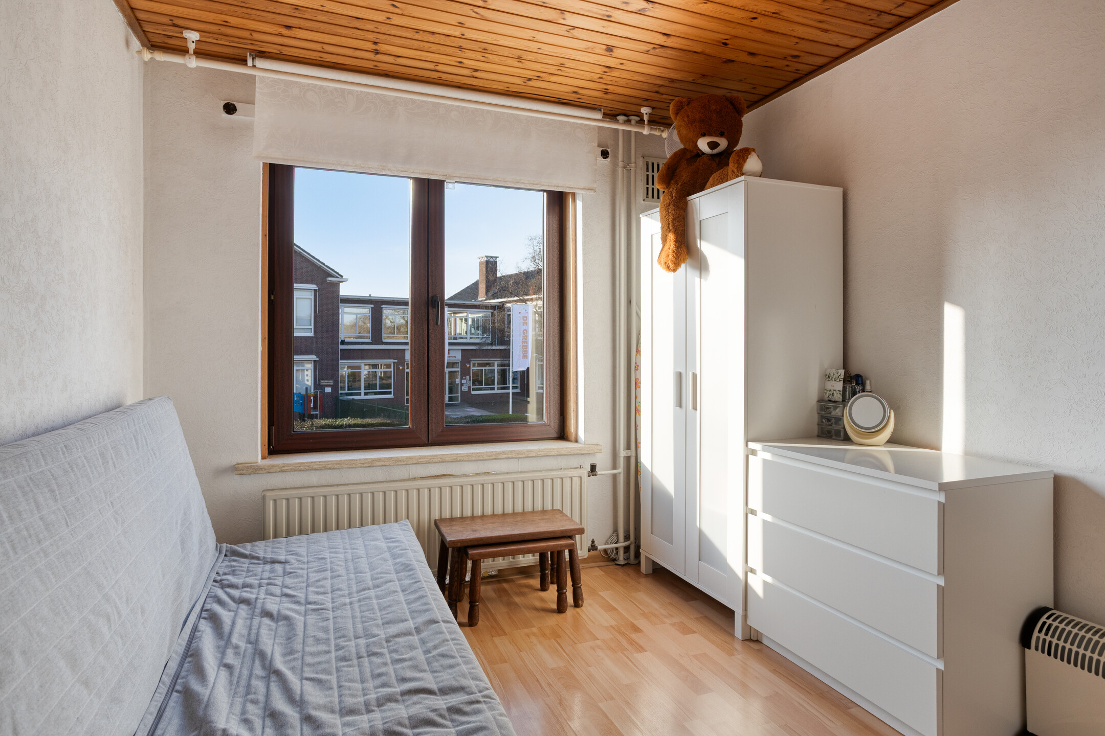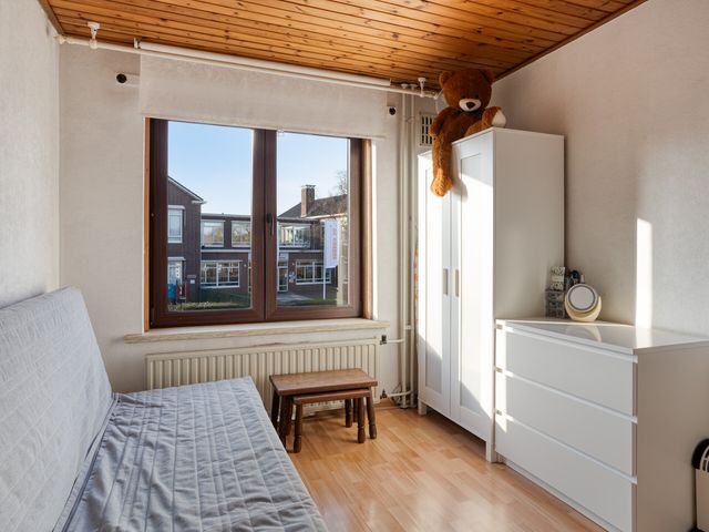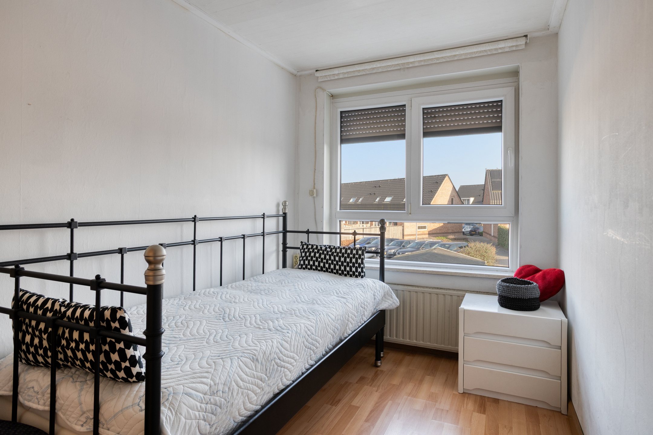 Er bevindt zich één slaapkamer aan de voorzijde van de woning en twee slaapkamers aan de achterzijde. Alle slaapkamers bieden voldoende ruimte voor een bed en een kledingkast. De kamers aan de achterzijde beschikken over rolluiken.