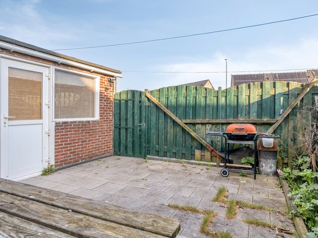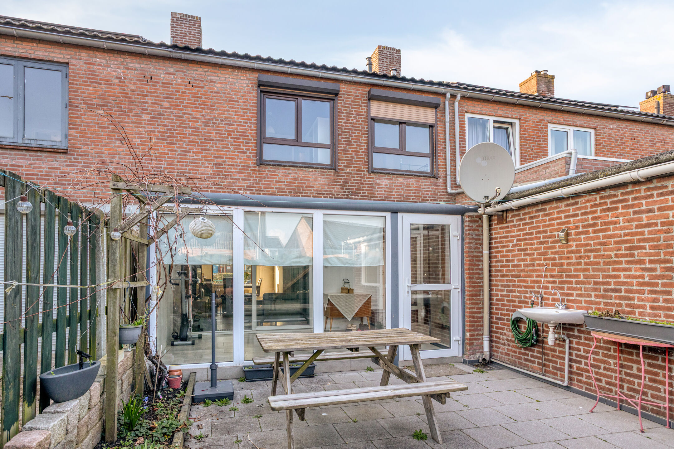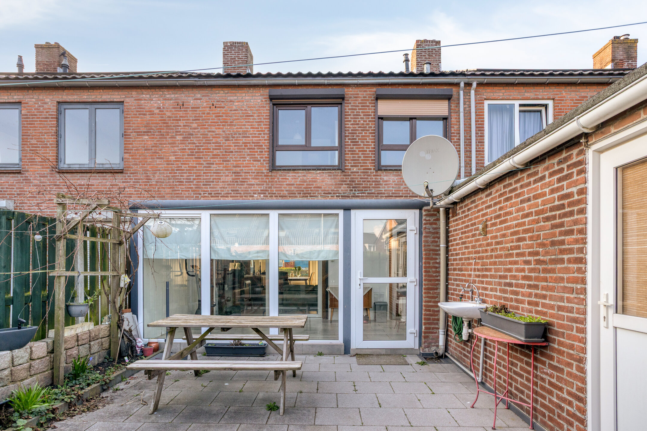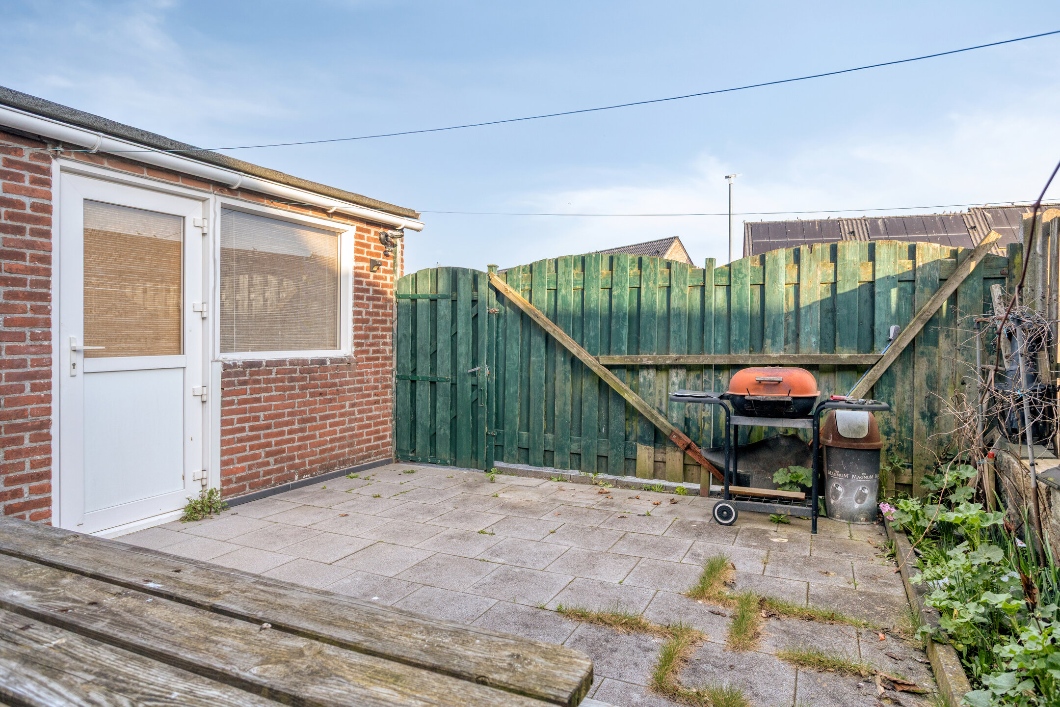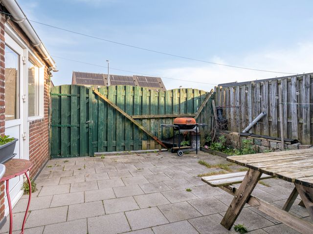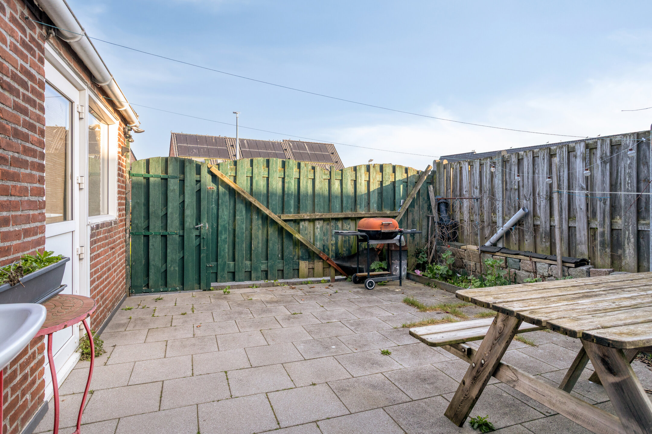De achtertuin is onderhoudsvriendelijk aangelegd en biedt ruimte voor een zitplek. In de tuin bevindt zich een stenen berging, ideaal voor het stallen van fietsen of het opbergen van tuinspullen. Daarnaast beschikt de tuin over een achterom.