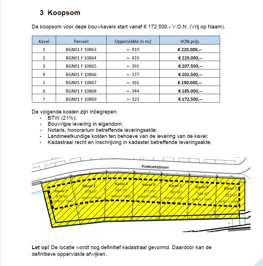 Aankondiging verkoop bouwkavels Koekoeksbloem