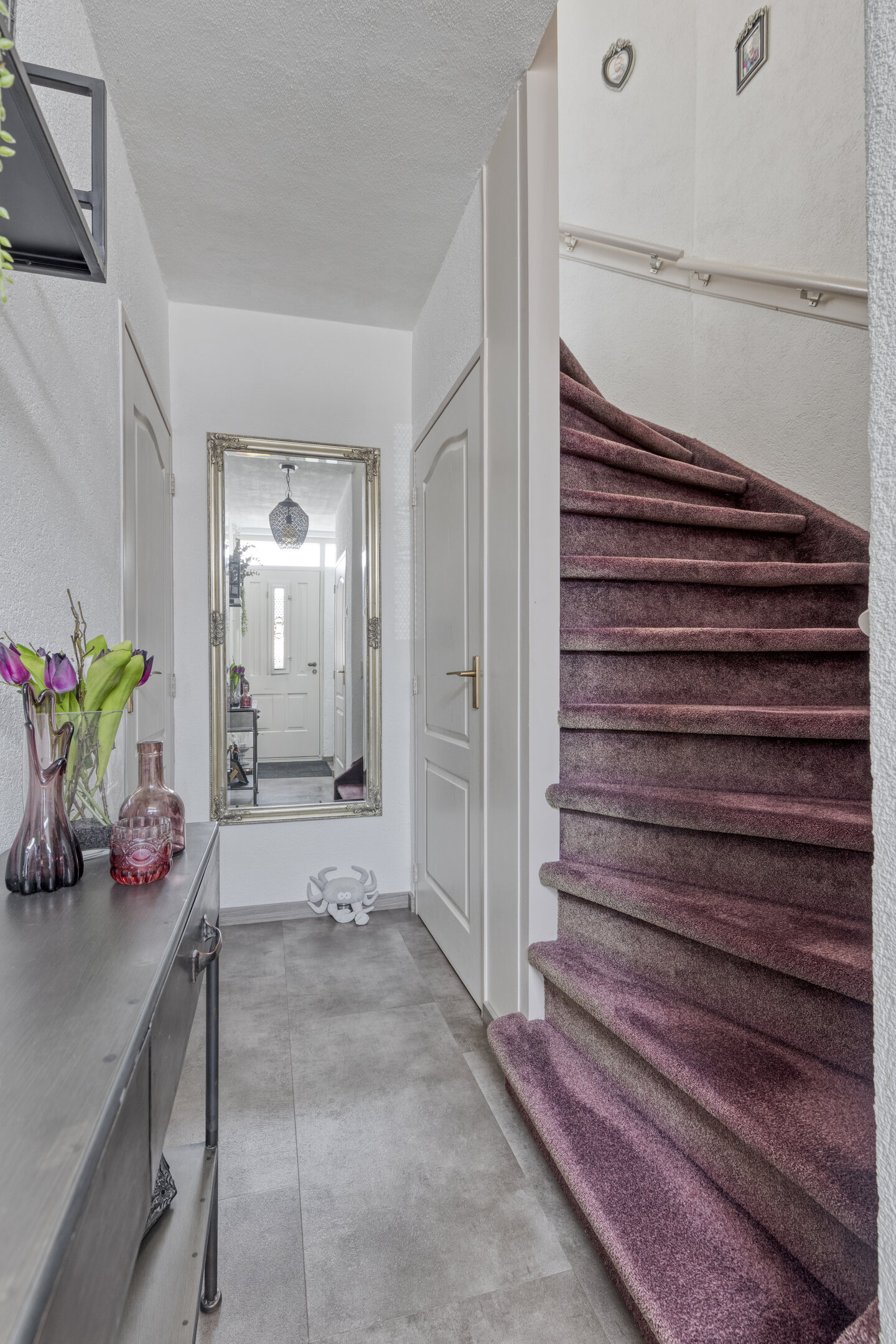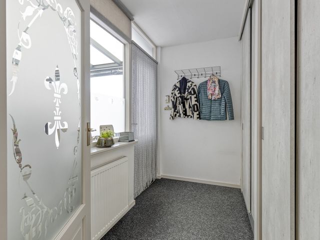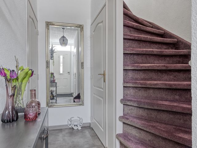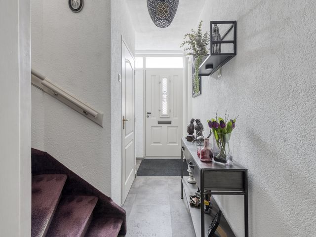 Via de verzorgde voortuin stap je binnen in de hal. Zodra je binnenstapt, voel je het meteen: dit is een huis waar je je thuis gaat voelen. De hal geeft toegang tot het toilet, de trap(kast) naar de eerste verdieping en leidt je naar de gezellige woonkamer, het hart van de woning.
