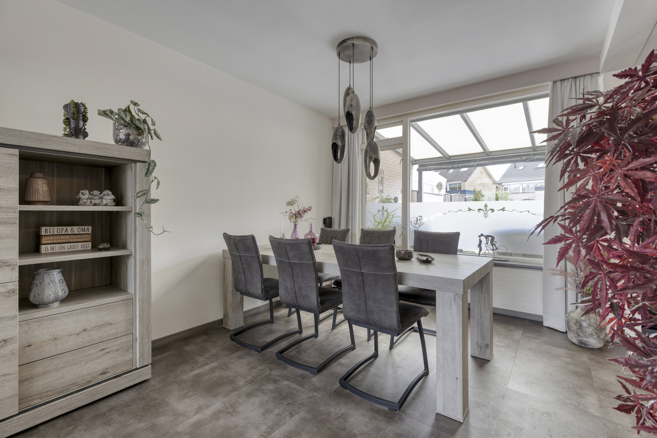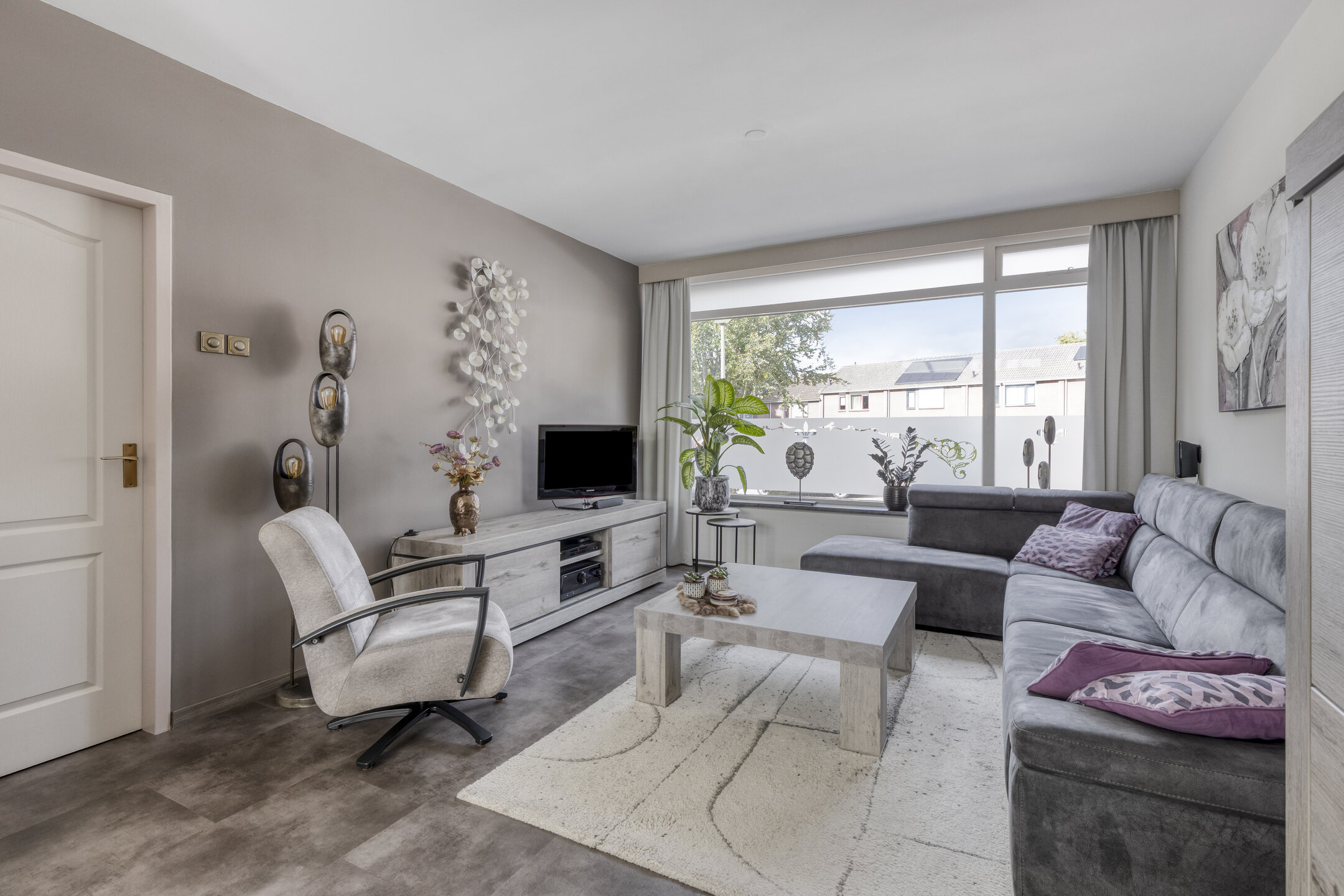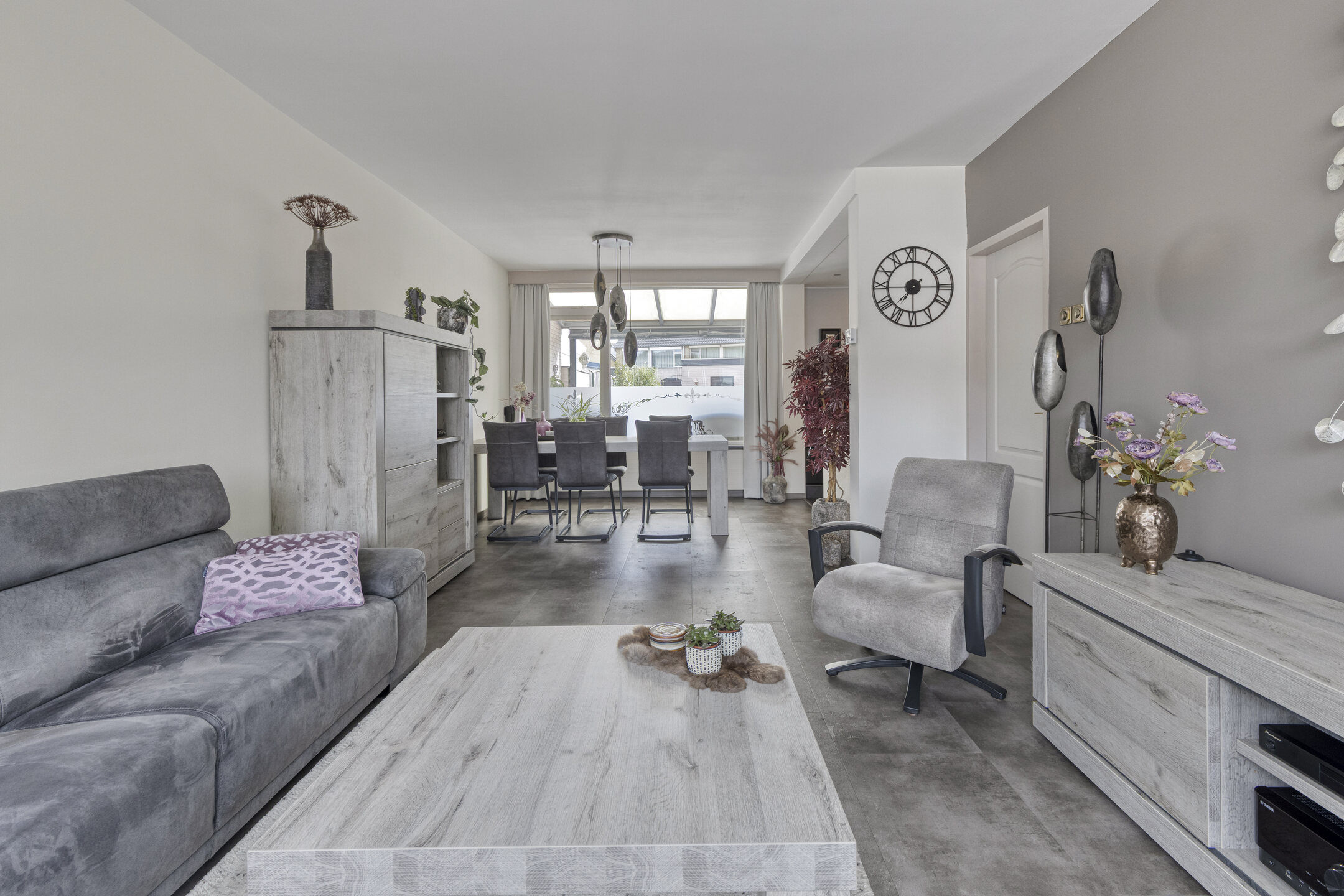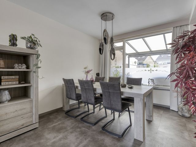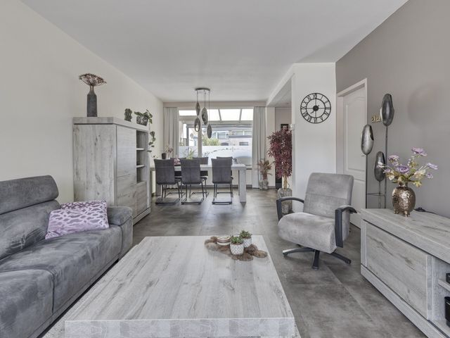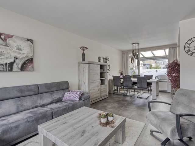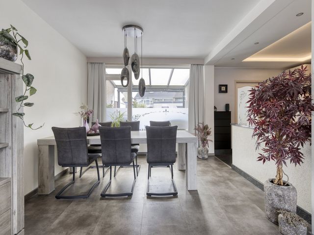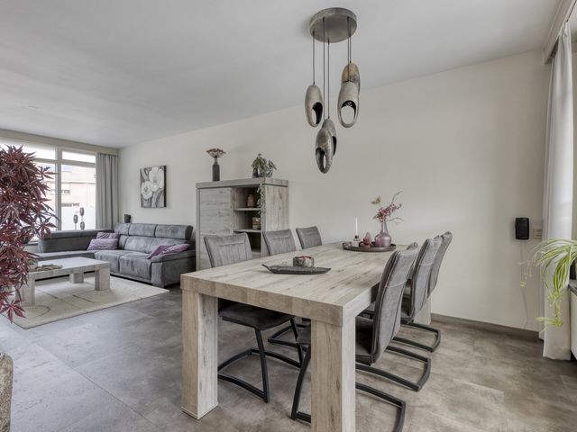 De woonkamer is heerlijk licht dankzij de grote ramen aan zowel de voor- als achterzijde. Je kijkt uit over de rustige straat, terwijl je aan de andere kant uitkijkt op de tuin, het beste van twee werelden! De ruimte is groot genoeg voor een royale zithoek waar je lekker kunt neerploffen na een drukke dag, én voor een sfeervolle eethoek waar je met vrienden of familie lange avonden kunt tafelen.