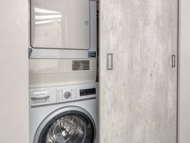 Via de keuken loop je door naar de bijkeuken, waar slim gebruik is gemaakt van de ruimte met een verscholen opstelplaats voor wasmachine en droger.