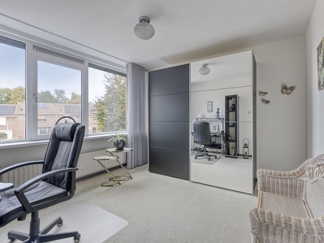 De tweede slaapkamer is eveneens ruim en ideaal te gebruiken als kinderkamer, logeerkamer of werkplek. Dankzij de rechte muren kun je de ruimte makkelijk praktisch en sfeervol inrichten.