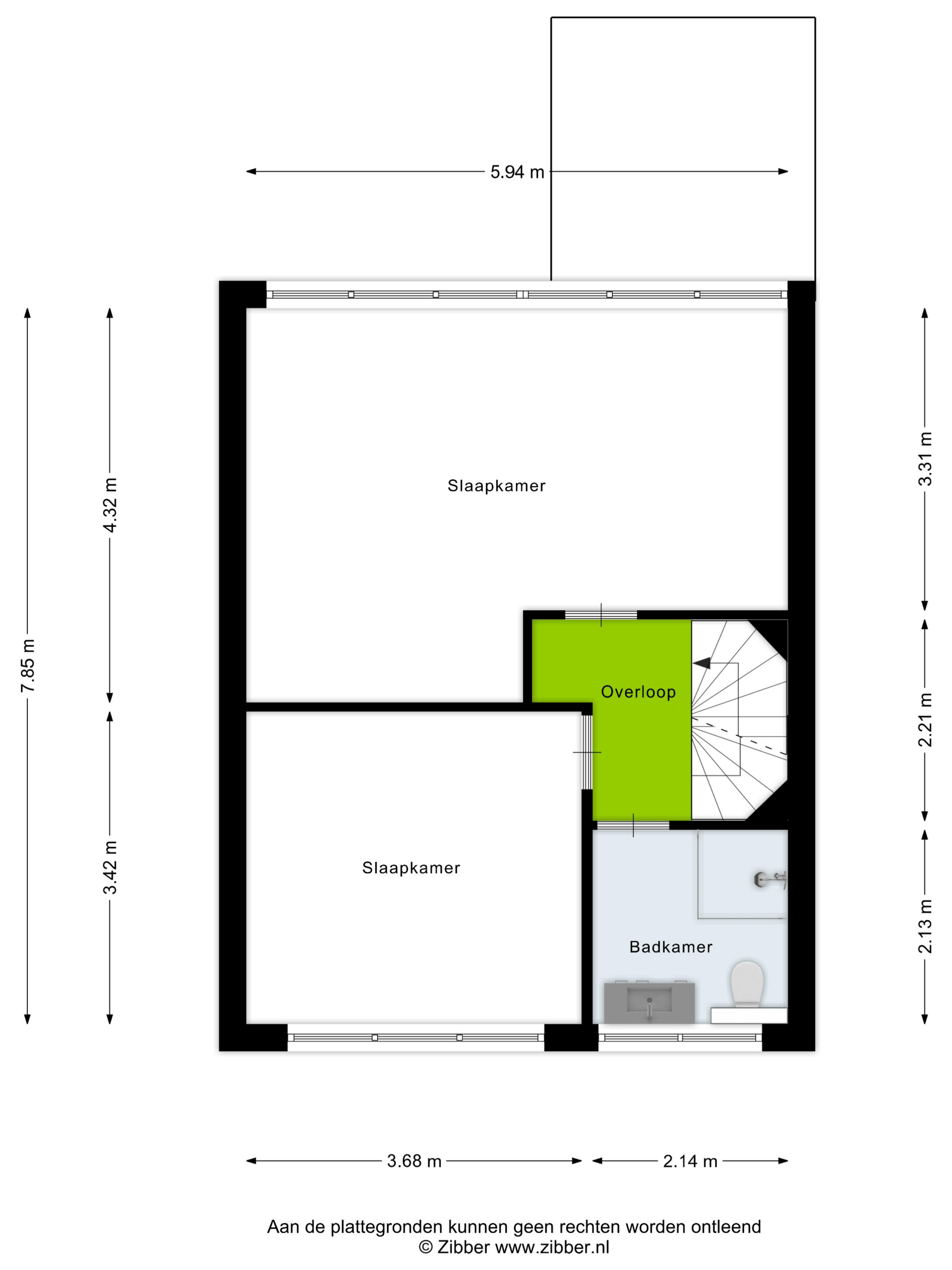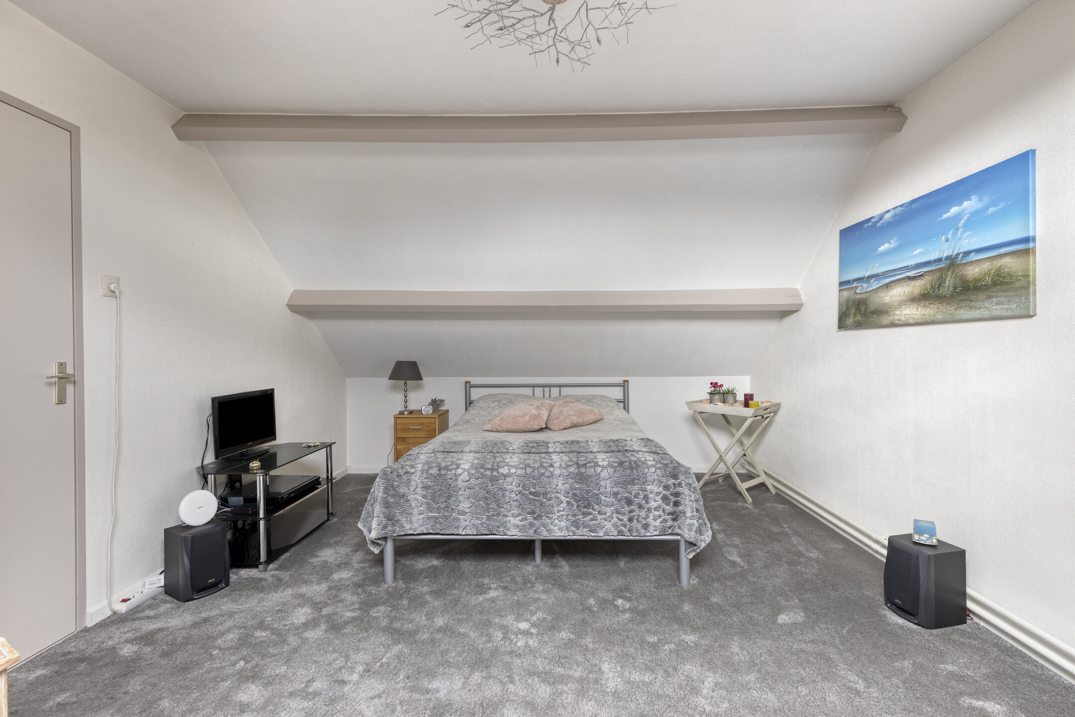 De gehele verdieping is afgewerkt met vloerbedekking, wat zorgt voor een warme en comfortabele uitstraling.