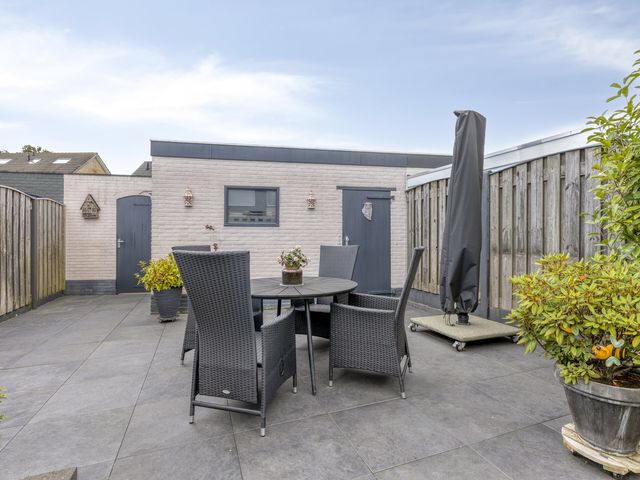 De tuin beschikt bovendien over een achterom en een stenen berging, perfect voor fietsen, gereedschap of de kliko’s.