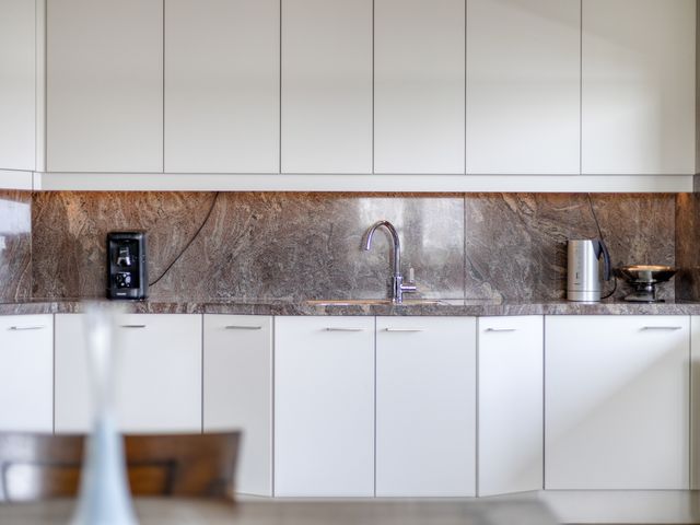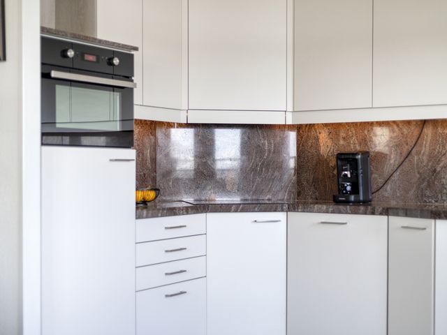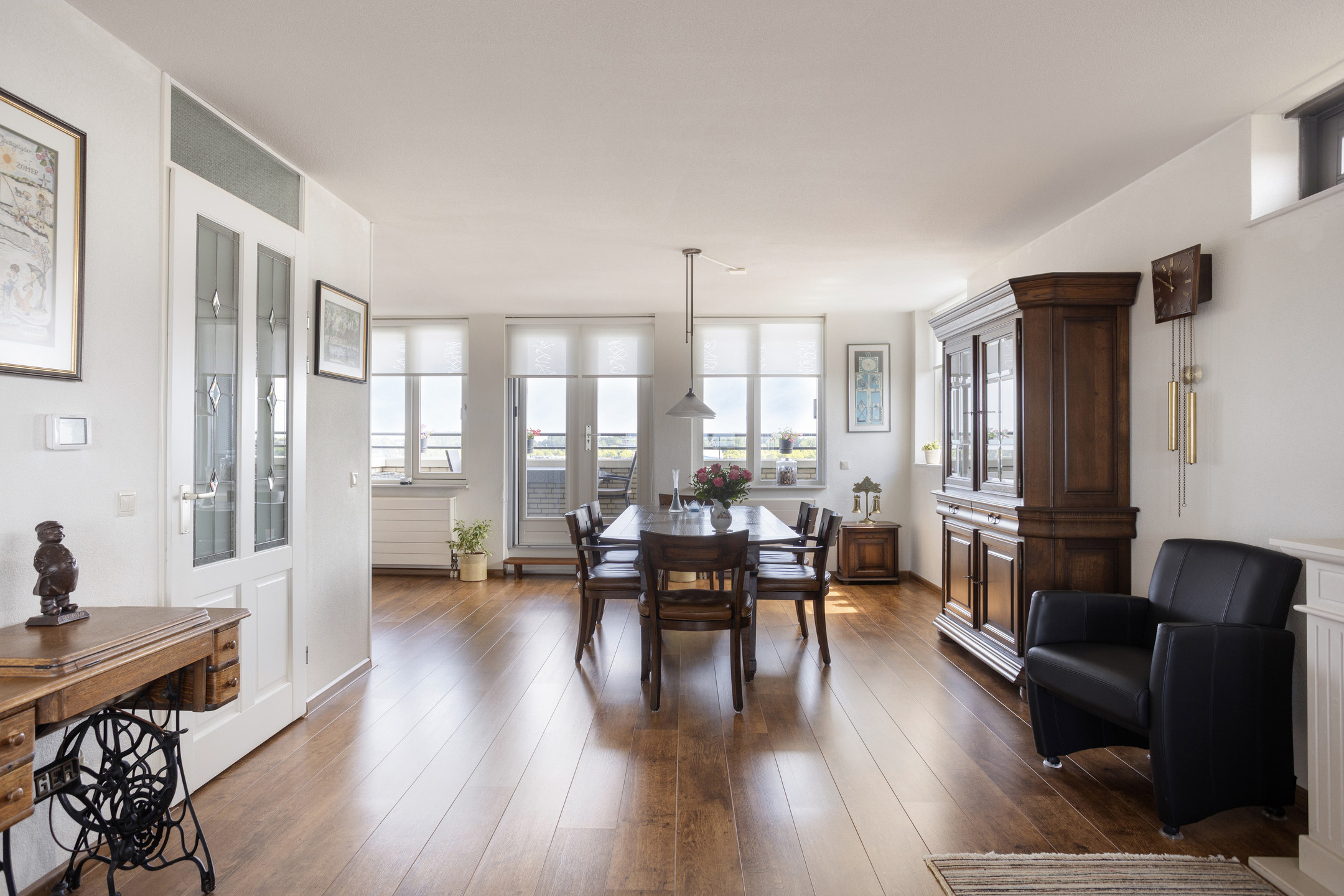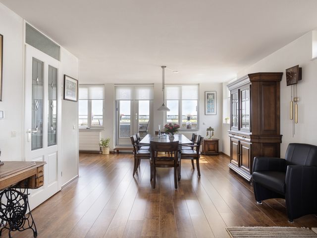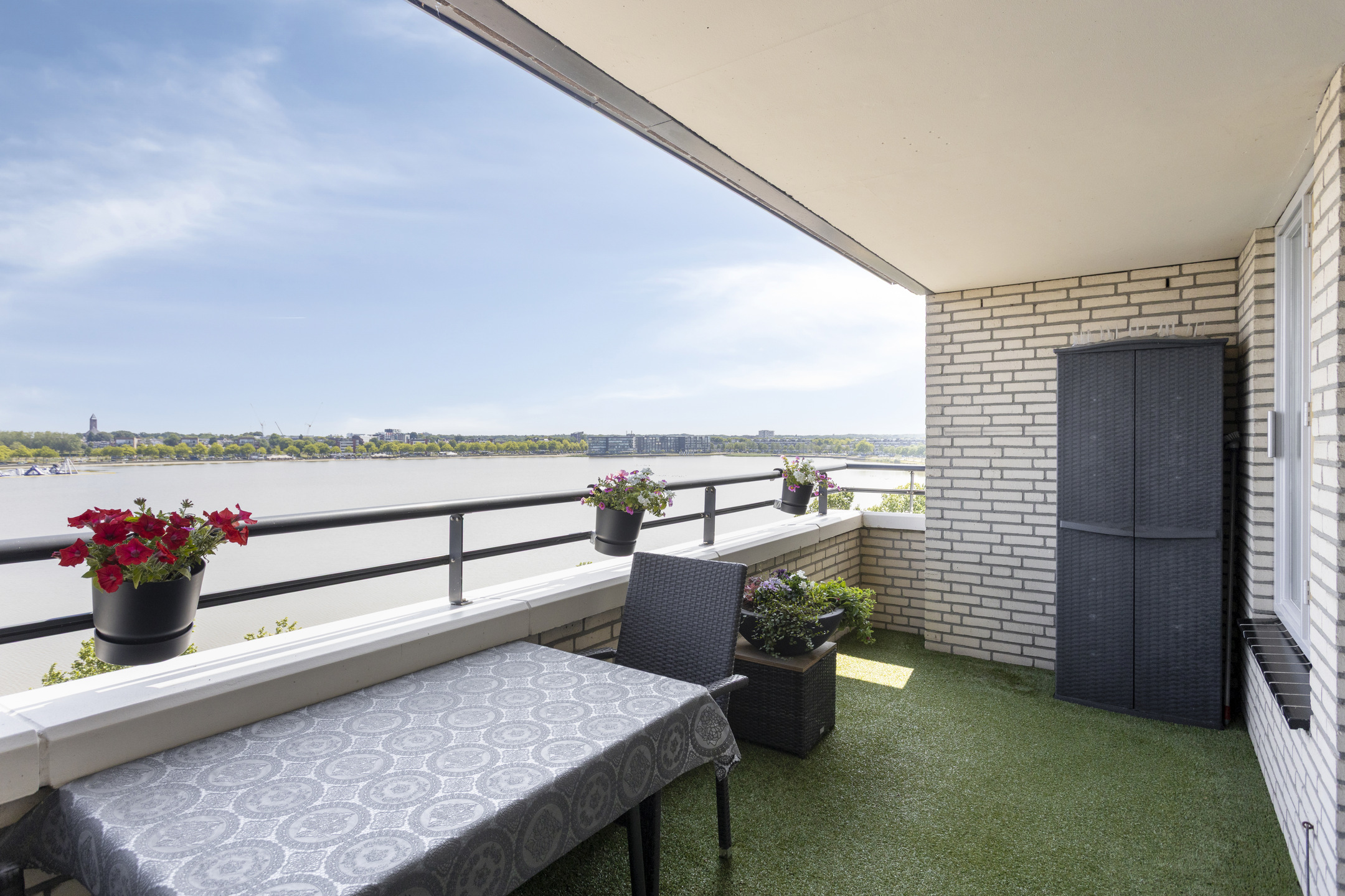 De open keuken grenst aan het eetgedeelte en biedt alle benodigde inbouwapparatuur, zoals een inductiekookplaat, vaatwasser, combi-oven en een ruime hoeveelheid kast- en lade-opbergruimte. Vanuit hier is er toegang tot het tweede balkon, wat zorgt voor een prettige lichtinval en een fijne plek voor bijvoorbeeld een ontbijt in de ochtendzon. Vanuit dit balkon kijkt u weids uit over de Binnenschelde.