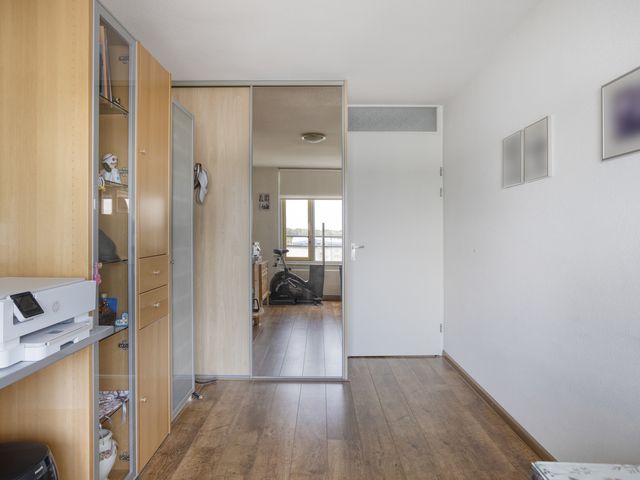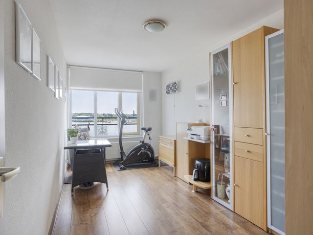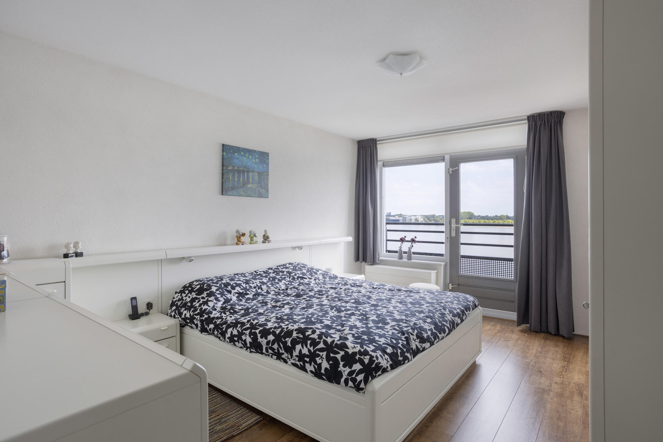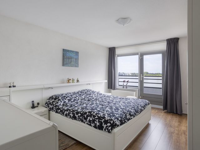 De hoofdslaapkamer is royaal van opzet en beschikt over een vaste kast en directe toegang tot het balkon, waar je 's ochtends wakker wordt met een uitzicht over het water. De tweede slaapkamer is compact maar zeer functioneel en kan uitstekend dienst doen als logeerkamer, thuiskantoor of inloopkast. Beide kamers hebben een rustige ligging aan de voor/ waterzijde van het gebouw.