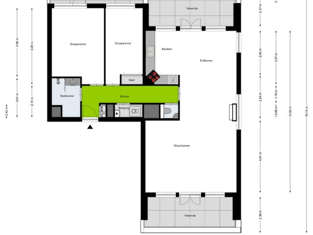 Bij binnenkomst in de hal valt direct de verzorgde afwerking op. Vanuit hier zijn de verschillende ruimtes toegankelijk, waaronder de twee slaapkamers, de badkamer, een apart toilet, de berging en natuurlijk de royale woonkamer.