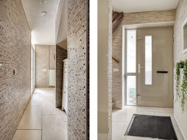 Bij binnenkomst komt u in de ruime hal. Vanuit hier zijn alle ruimtes op de begane grond bereikbaar. Deze centrale ligging van de hal maakt de woning functioneel én overzichtelijk.