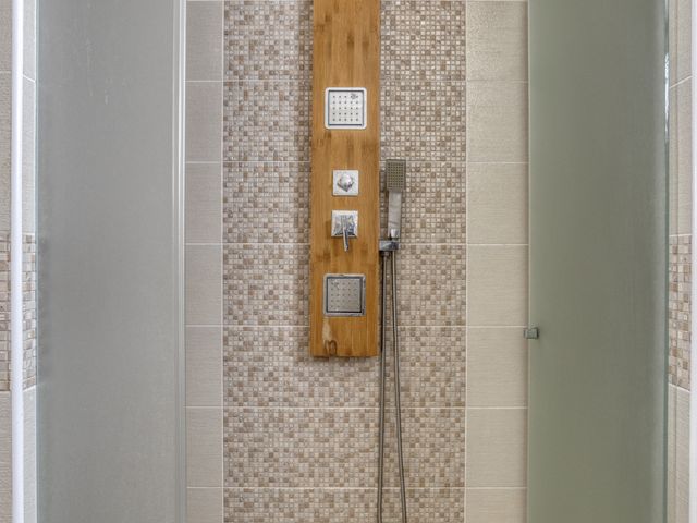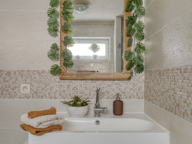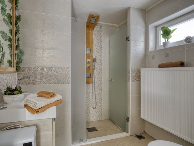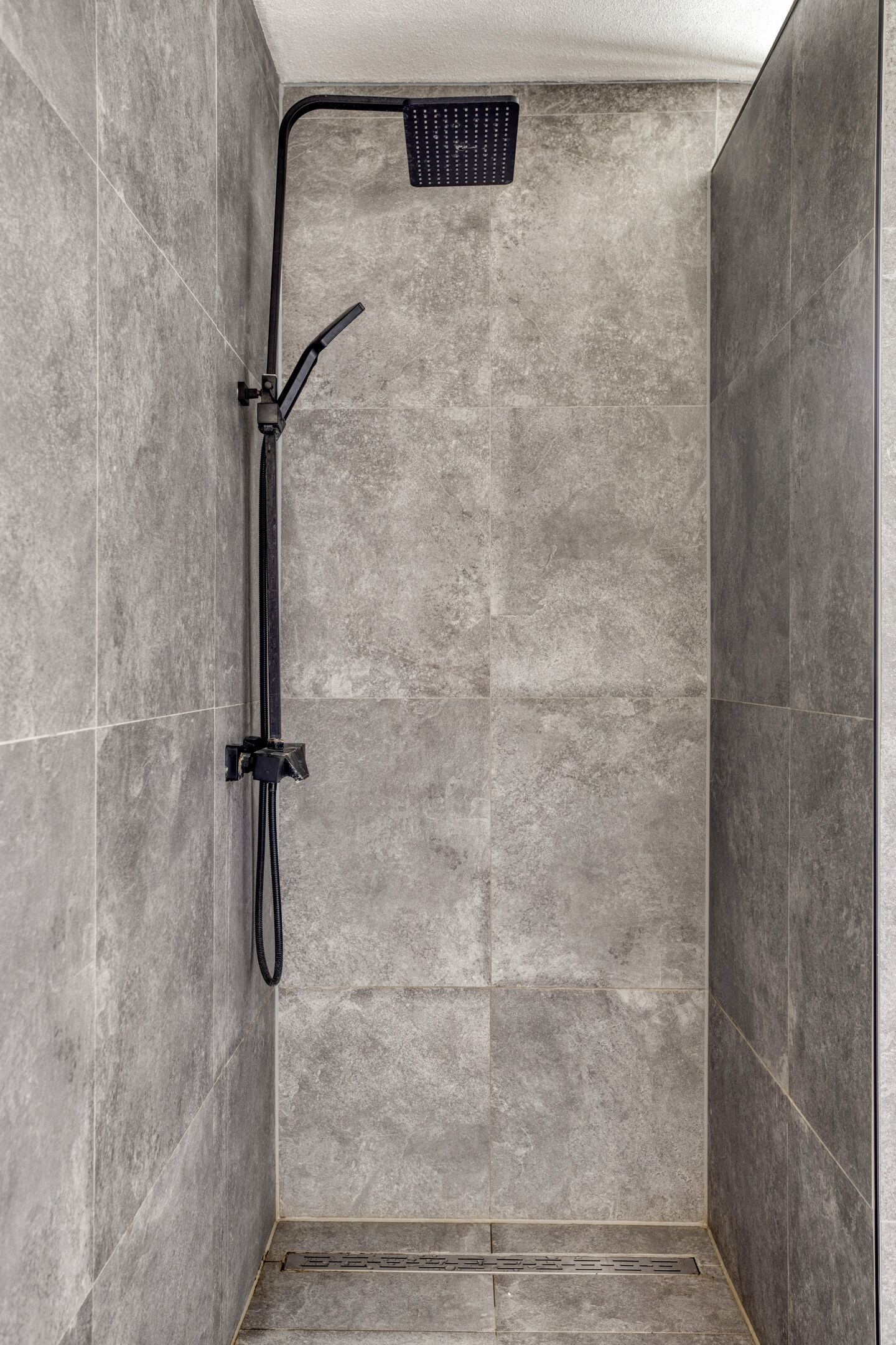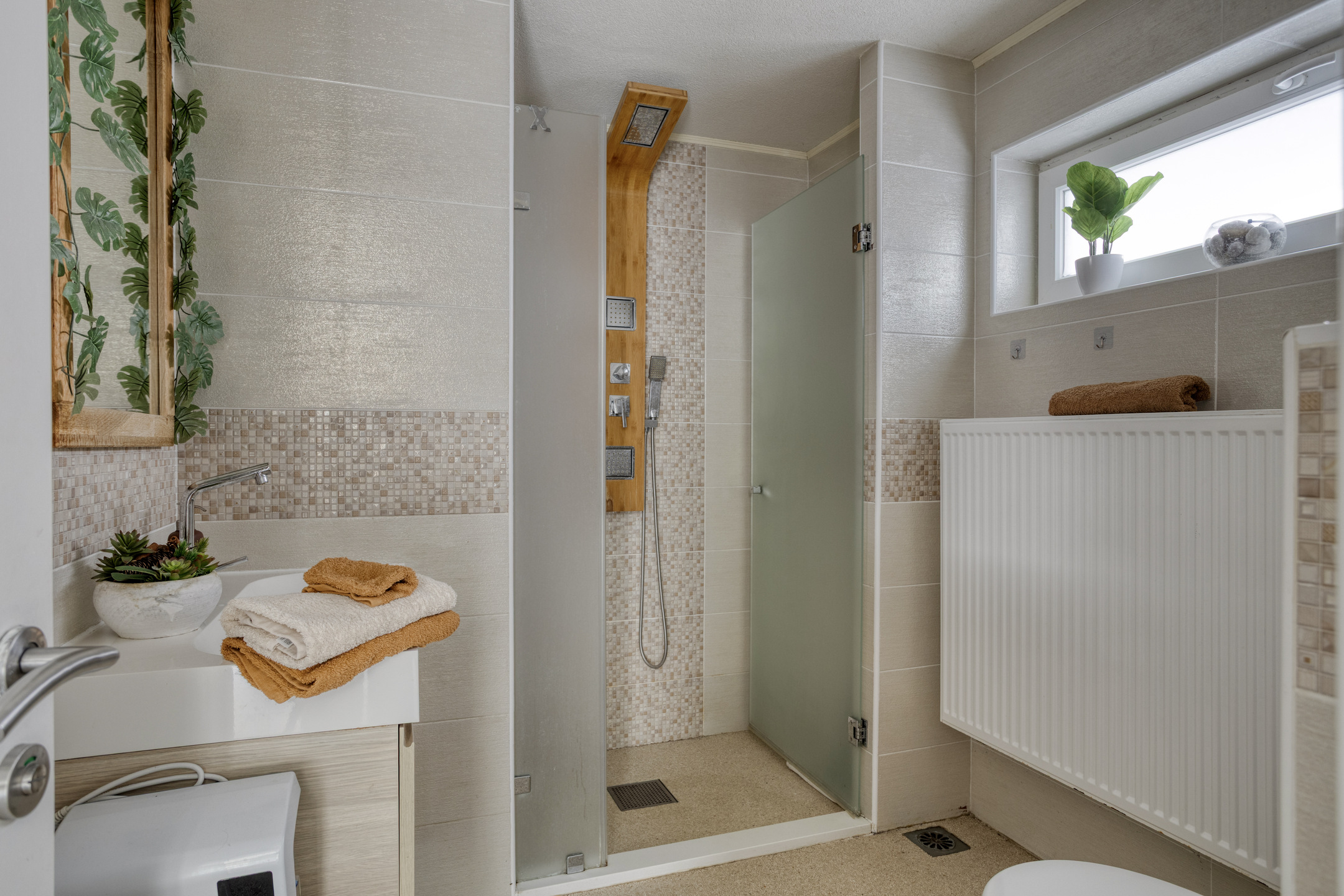 De badkamer welke in 2017 is verbouwd heeft de beschikking over een toilet, inloopdouche en wastafelmeubel.