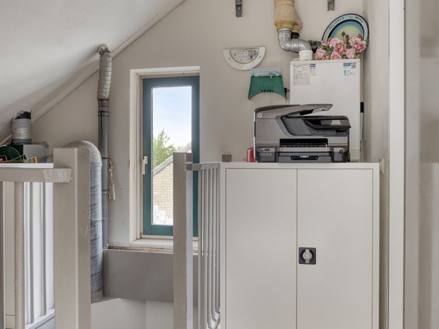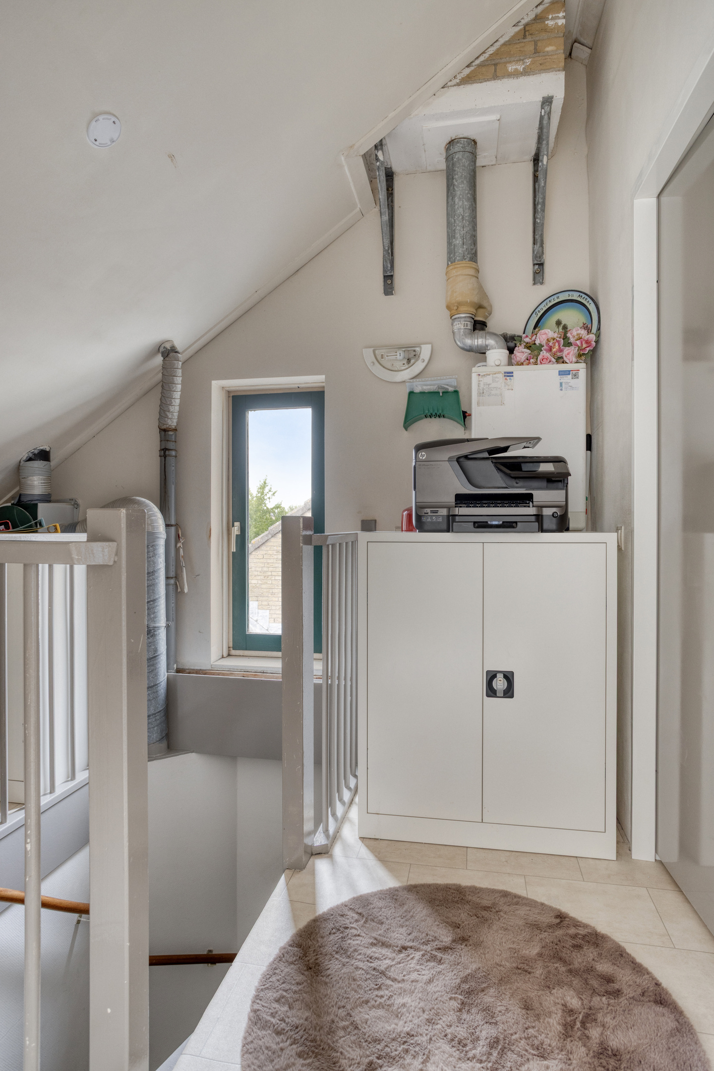 Op de tweede verdieping vindt u een royale vierde slaapkamer, ideaal als rustige werkkamer, hobbyruimte of tienerkamer. Een aparte bergkast maakt het plaatje compleet en biedt voldoende ruimte voor opslag van seizoensspullen.