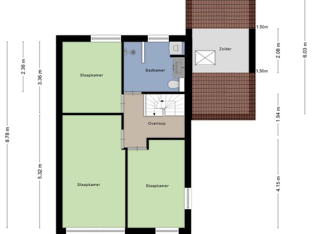 In de slaapkamer is middels een vlizo- trap nog een extra bergruimte toegankelijk.