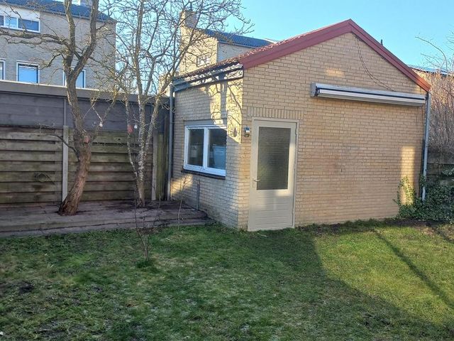 De achtertuin is voor een groot deel voorzien van gazon. Achterin de tuin staat een vrijstaande stenen berging, geschikt voor het opbergen van fietsen, tuingereedschap of containers.