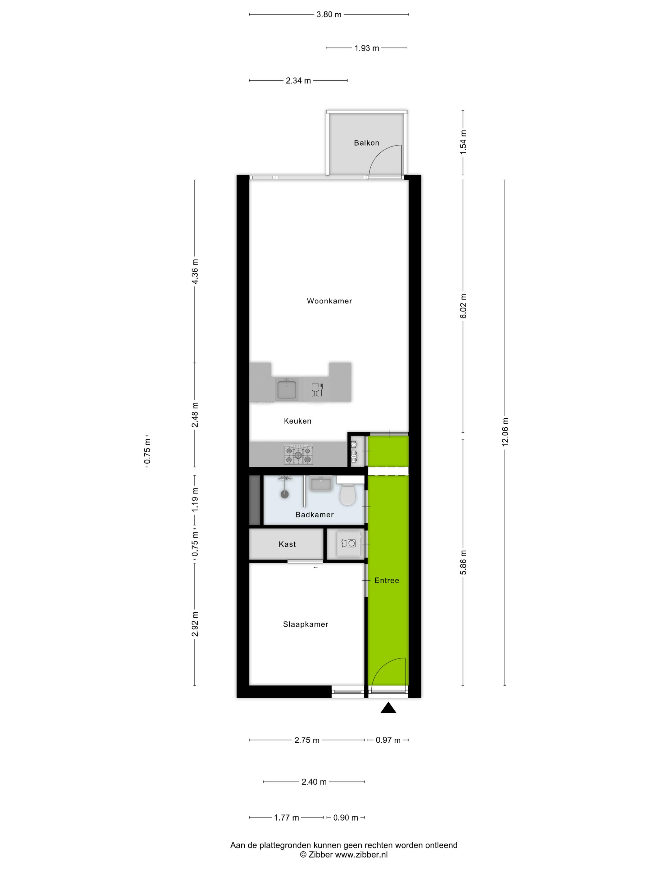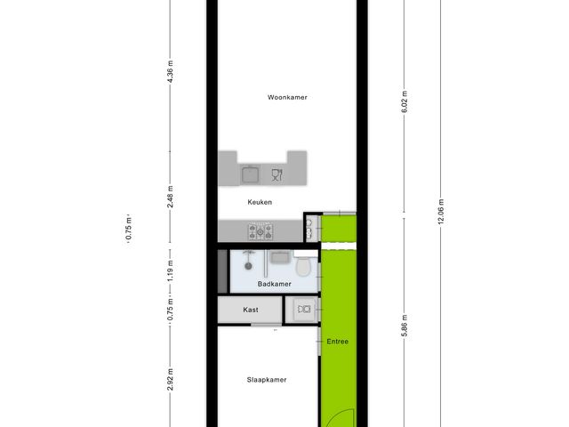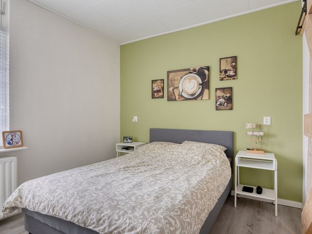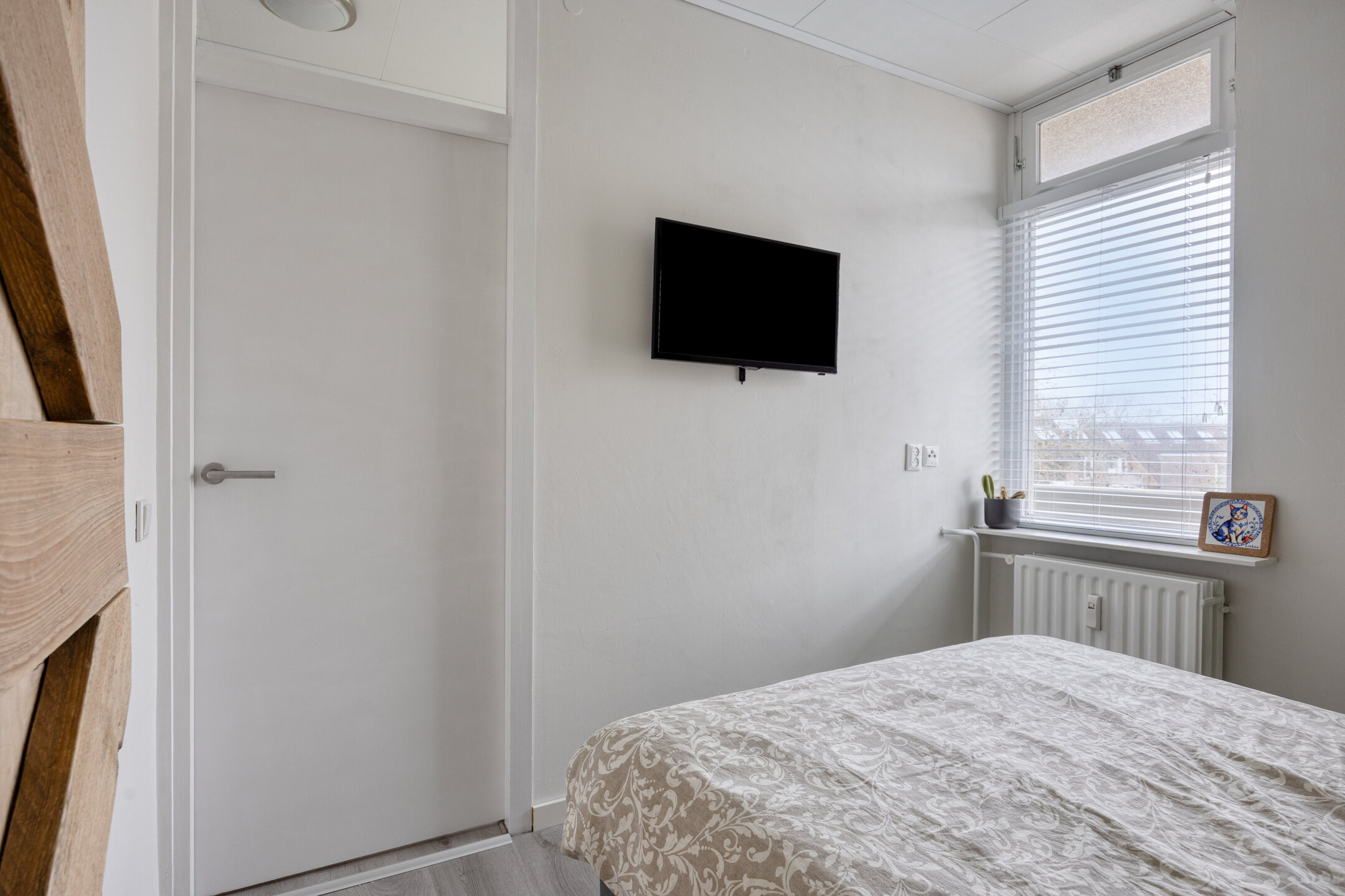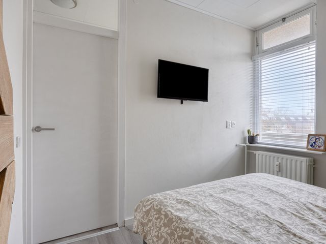 De slaapkamer bevindt zich aan de voorzijde van het appartement en beschikt over een praktische, royale inbouwkast. Dankzij de prettige lichtinval en de efficiënte indeling is dit een comfortabele en rustige plek om tot ontspanning te komen.