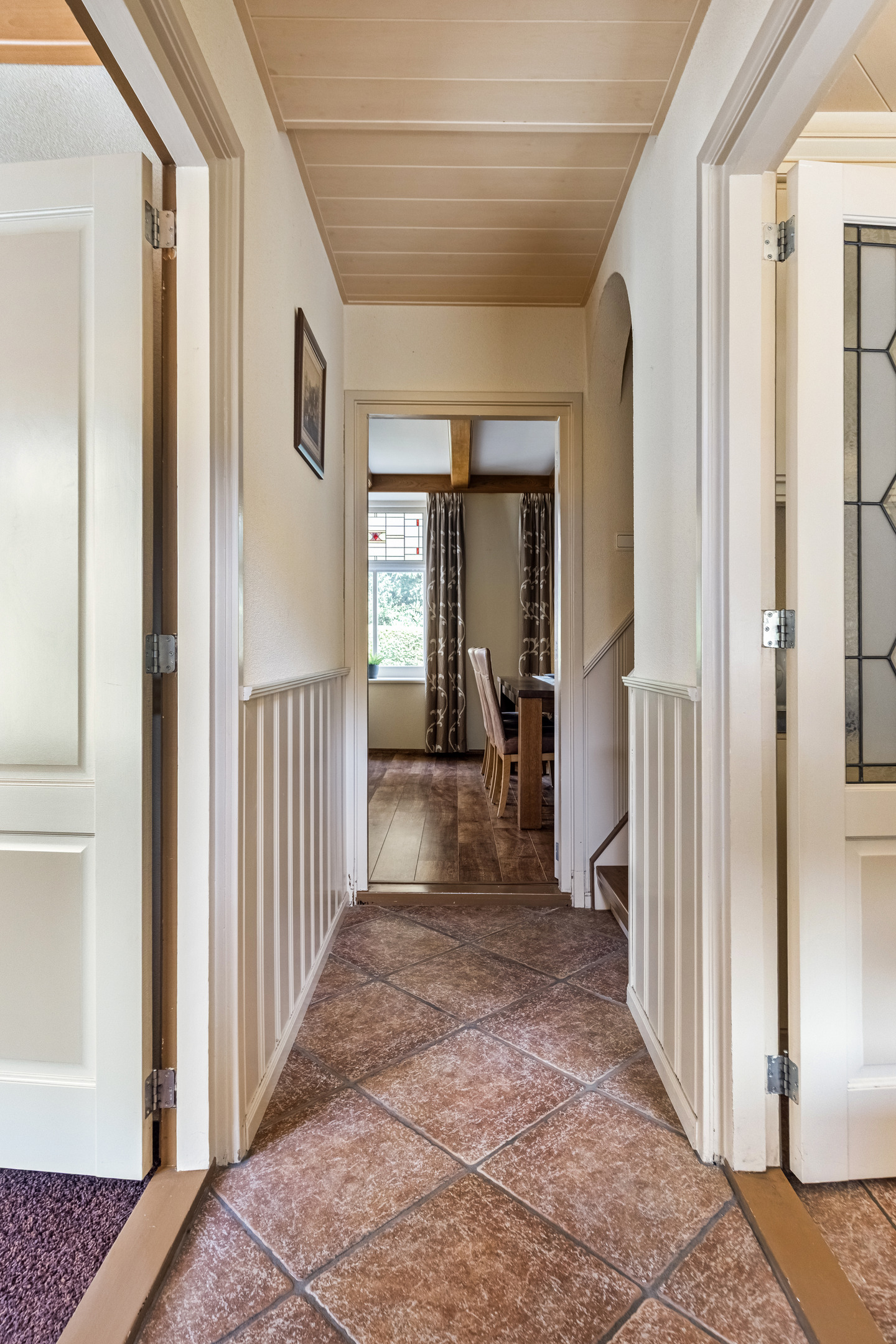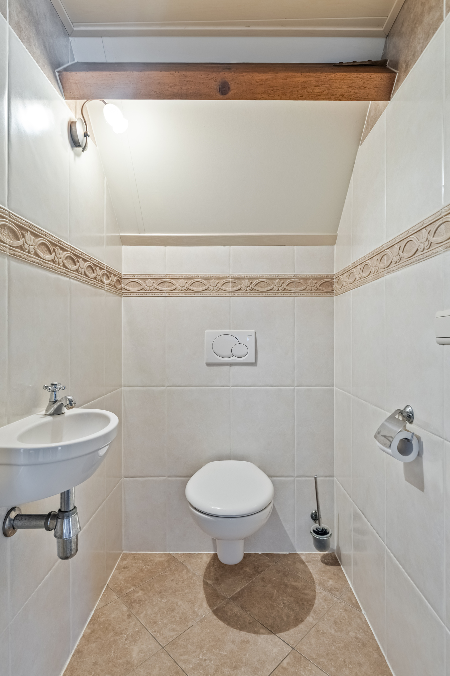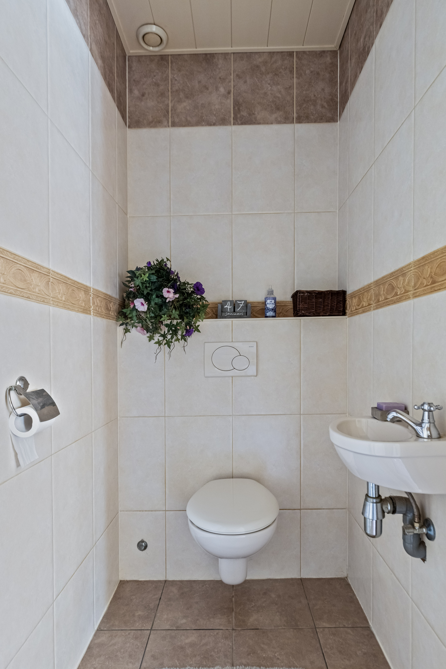 In de hal vinden we het apart gesitueerde toilet, keukenblok met extra kastruimte en de C.V- ketel is gesitueerd in de gang.
