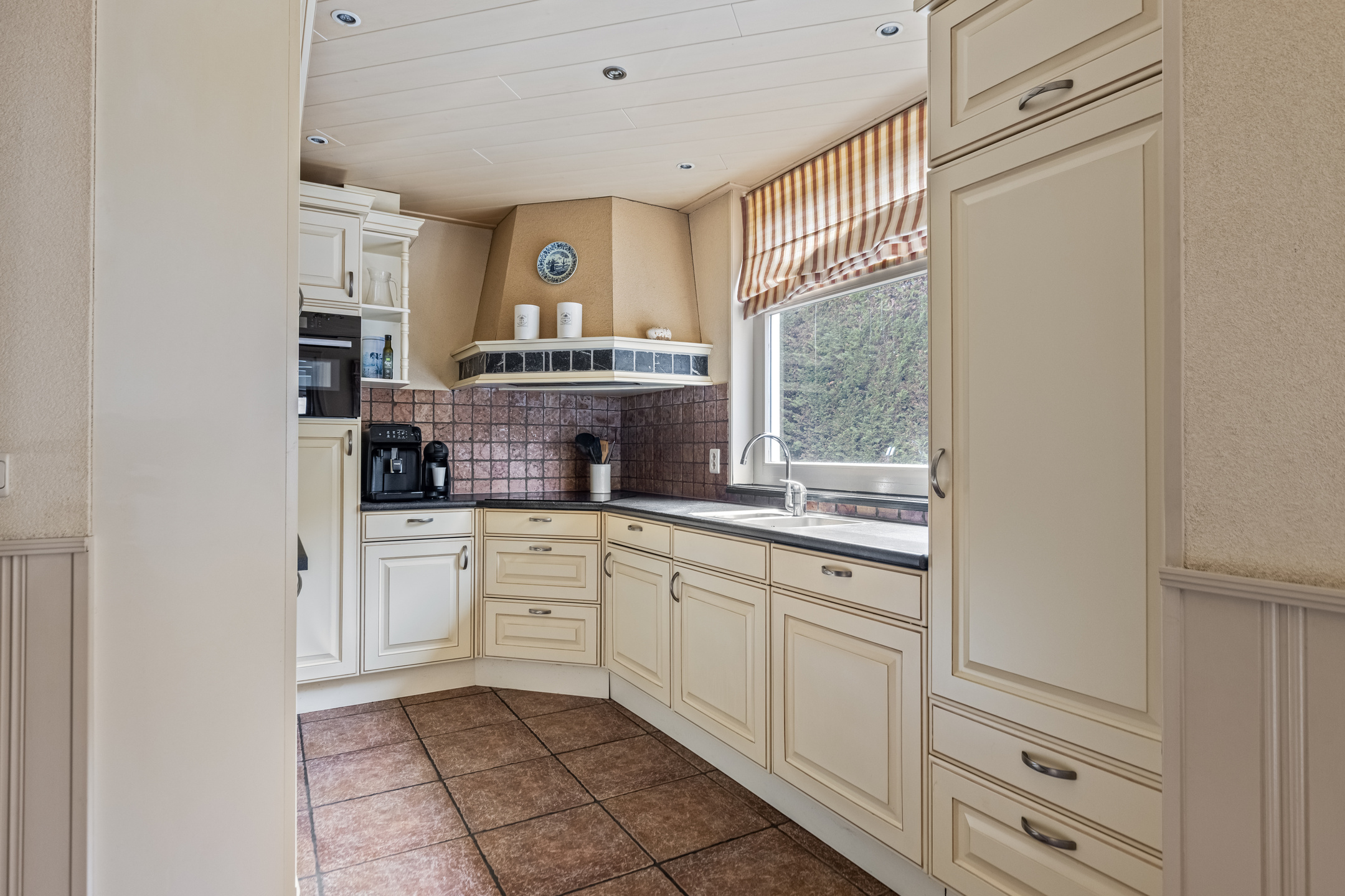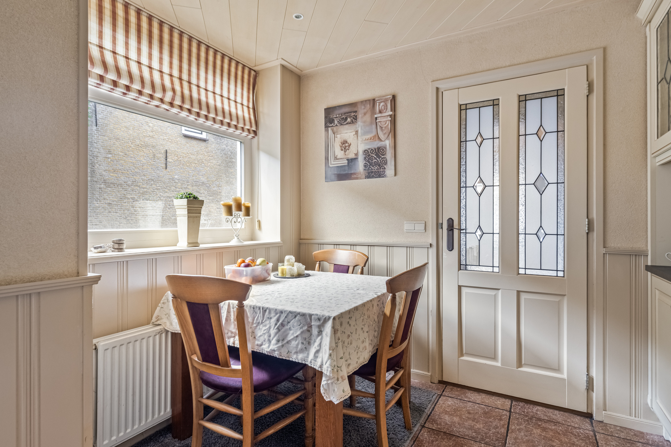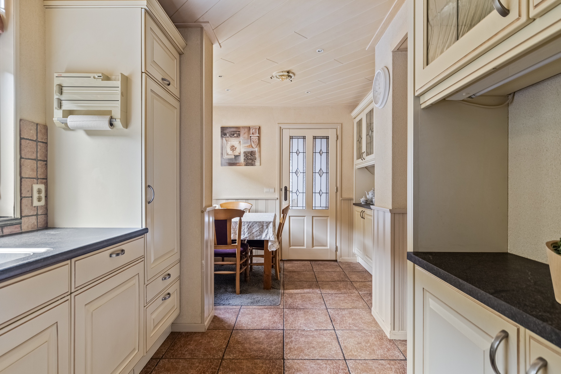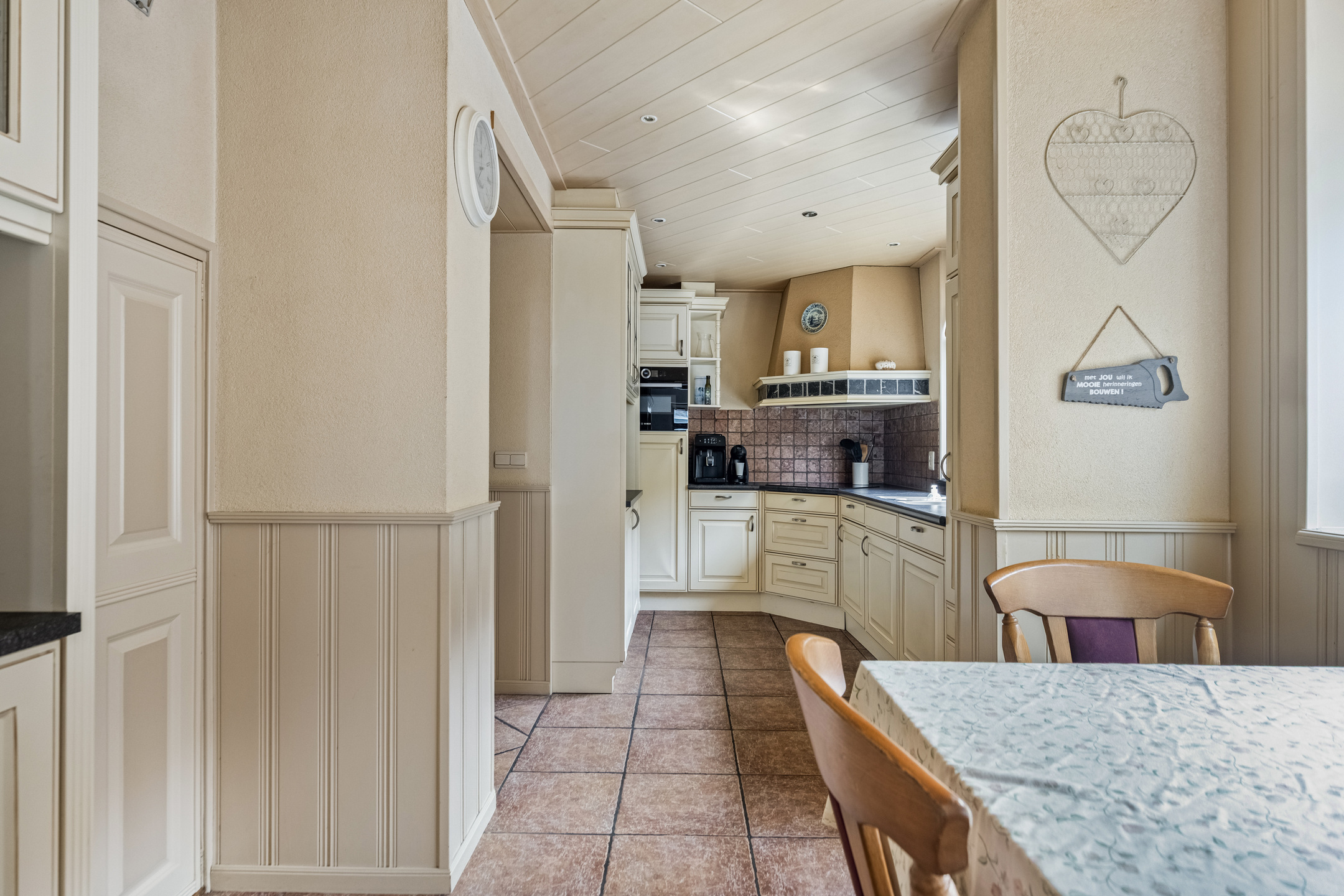 De woonkeuken is praktisch én gezellig de ramen zorgen voor een prettige toetreding van daglicht. De keuken zelf is geplaatst in een hoekopstelling voorzien van inbouwapparatuur. Naast de vaste kastruimte is er ook de beschikking over een kelderkast.