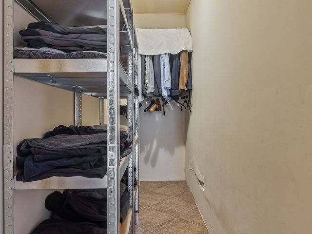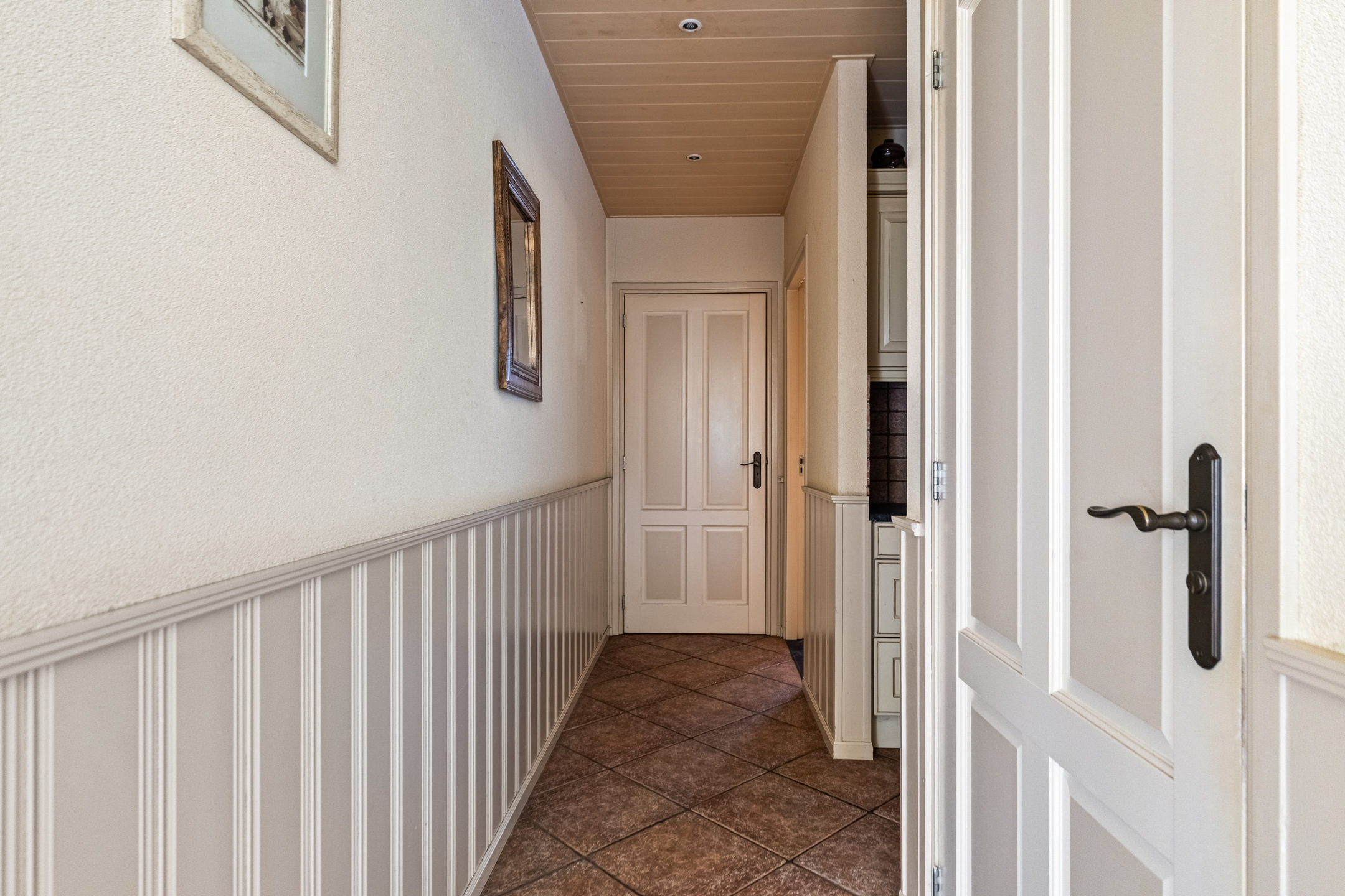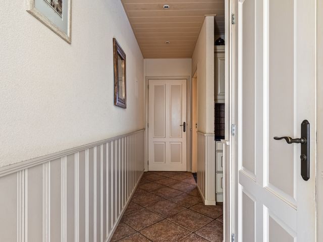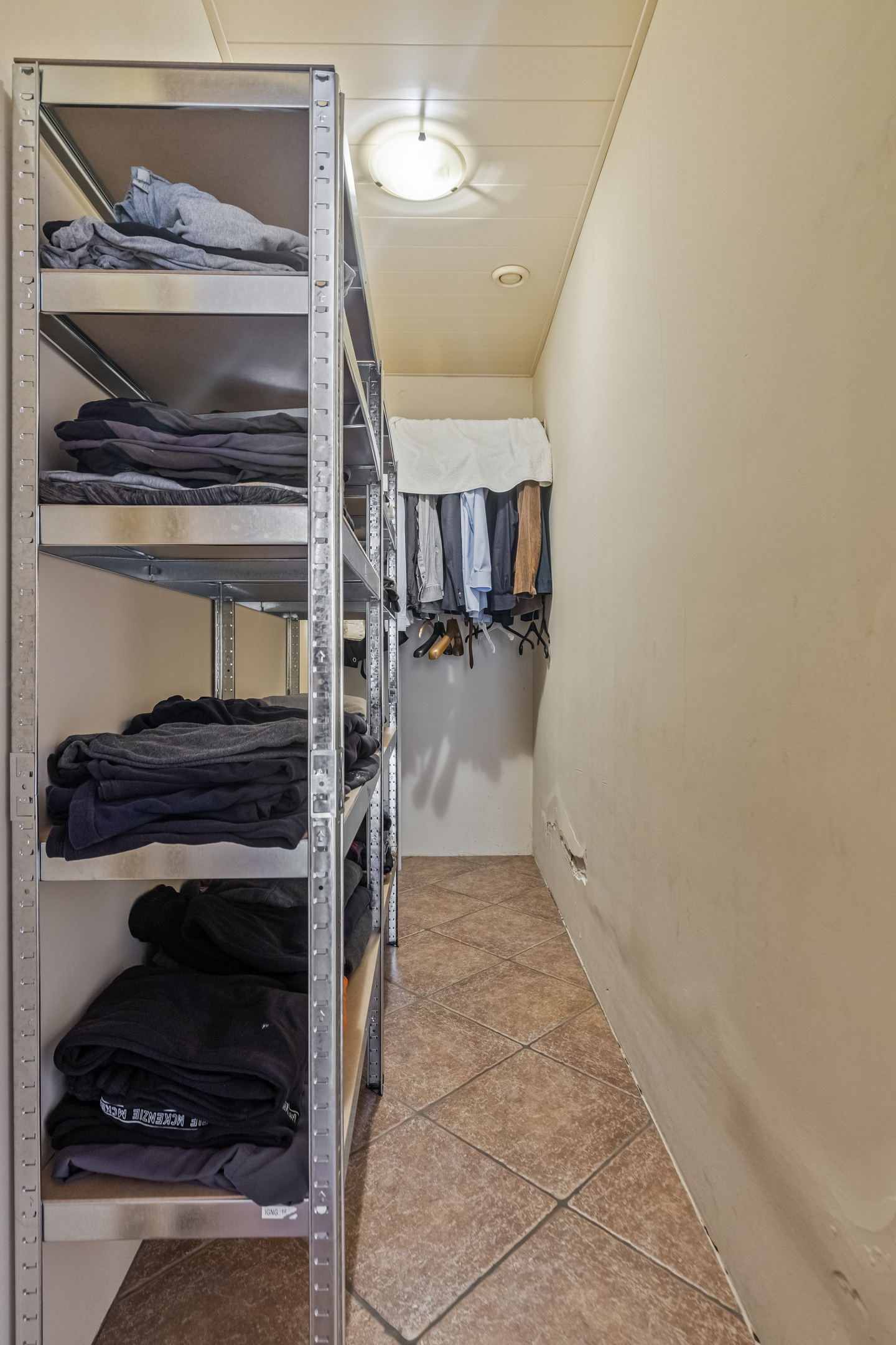 Via de keuken lopen we een tweede gang door vanuit hier zijn er een vaste, zeer ruime kast (nu in gebruik als walk- in closet), badkamer en toilet te vinden.