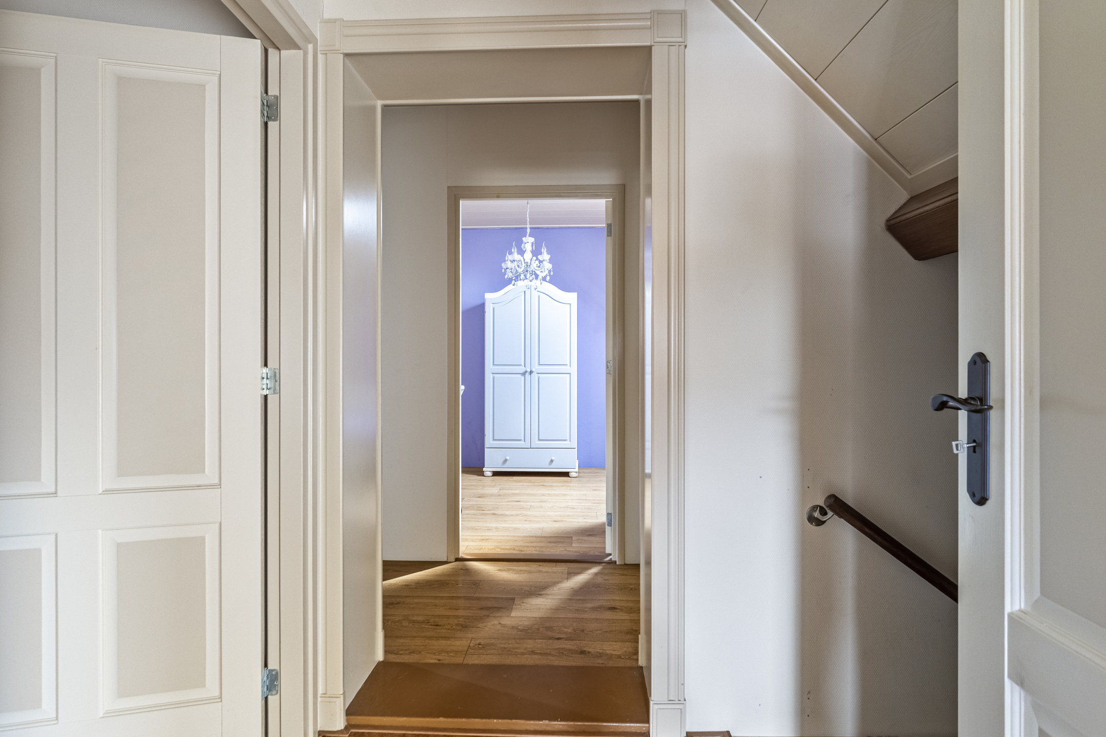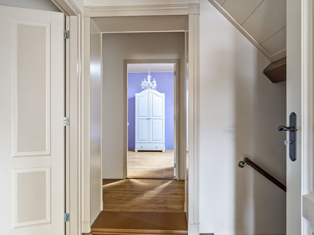 Voor we jullie mee nemen naar het tweede gedeelte op de begane grond van deze bijzondere woning lopen we eerst terug naar de hal waar we binnen kwamen om via de vaste trap op de eerste verdieping aan te komen.