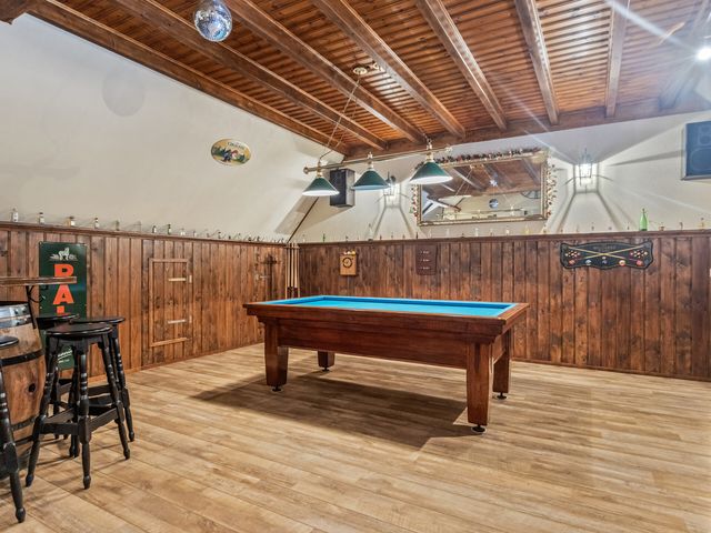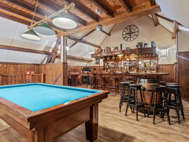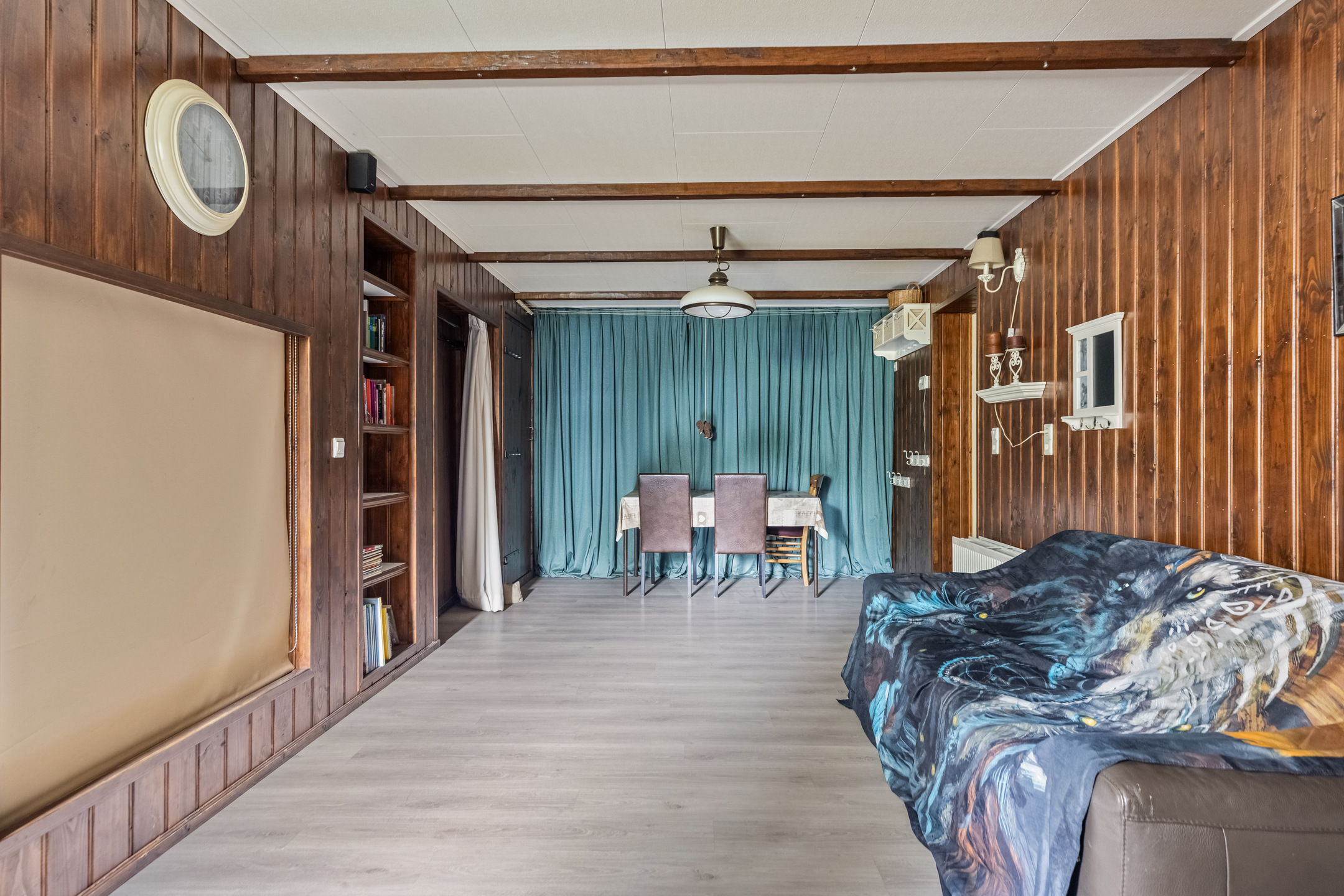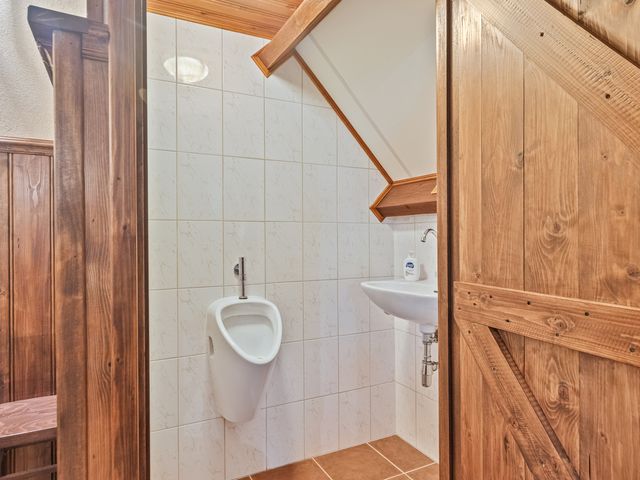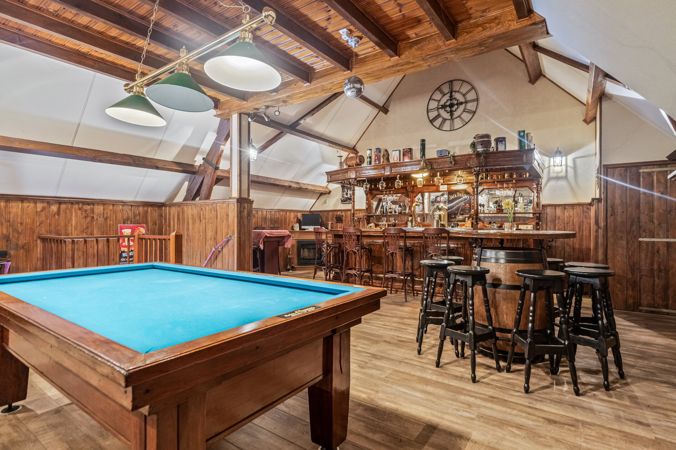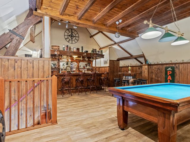 Terug naar de begane grond en het tweede gedeelte van de woning komen we terug in de tussenruimte die de twee gedeeltes van de woning scheidt. Een vaste trap leidt ons hier naar de eerste verdieping waar ons een hele gave ruimte wacht.... De perfecte ruimte voor het geven van feestjes en gezellige borrelavonden met een eigen bar met tap! Vooral de bar maakt de ruimte extra speciaal het prachtige maatwerk uit Egypte is een echte eyecatcher.