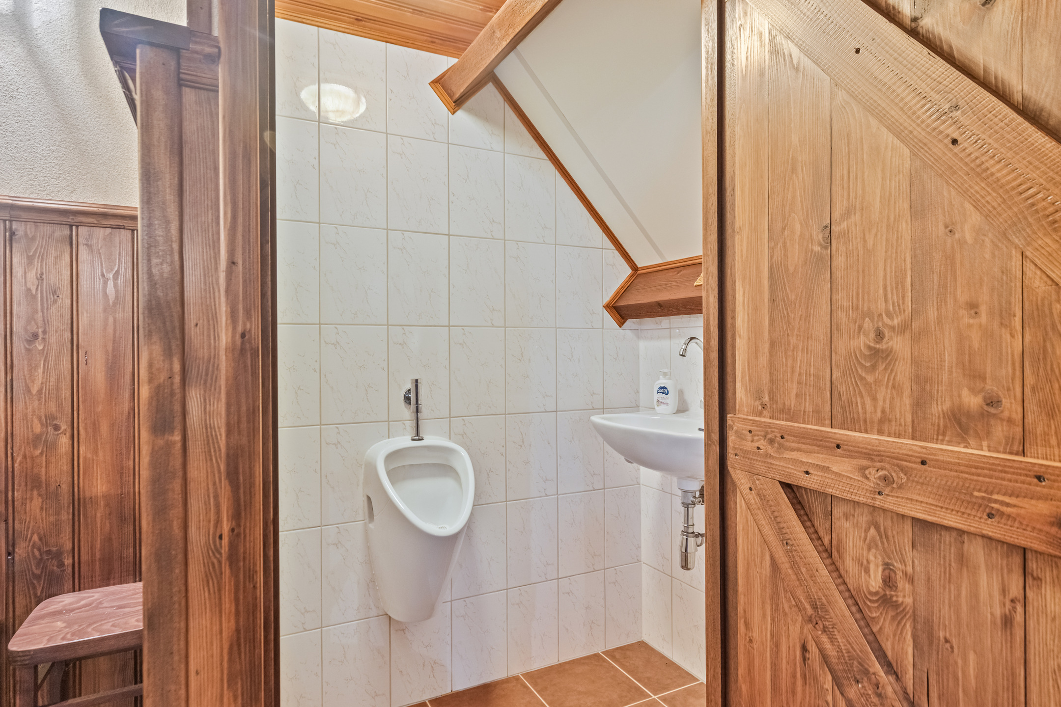 De ruimte is tevens voorzien van een aantal vaste kasten en een sanitair ruimte met urinoir en wastafel.