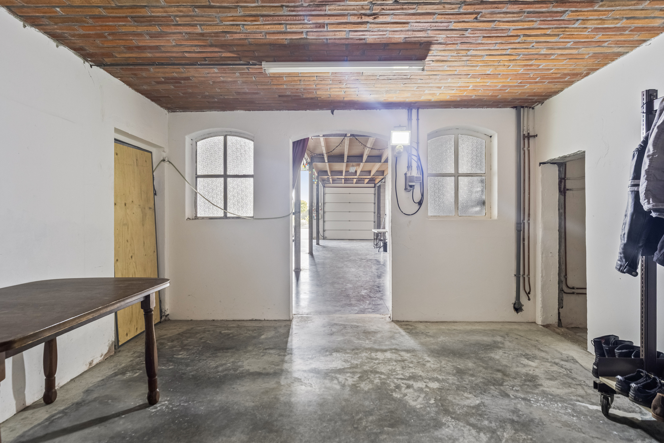 Vanuit de tussenruimte op de begane grond lopen we door naar de loods; een tweetal kamers en een berging zijn nog in te richten zijn naar eigen gebruik. Deze kunnen gebruikt worden voor opslag of wellicht betrokken worden bij de woning, in de zijkamer bevinden zich nog een douchecabine en aansluiting voor een nog te realiseren badkamer.
