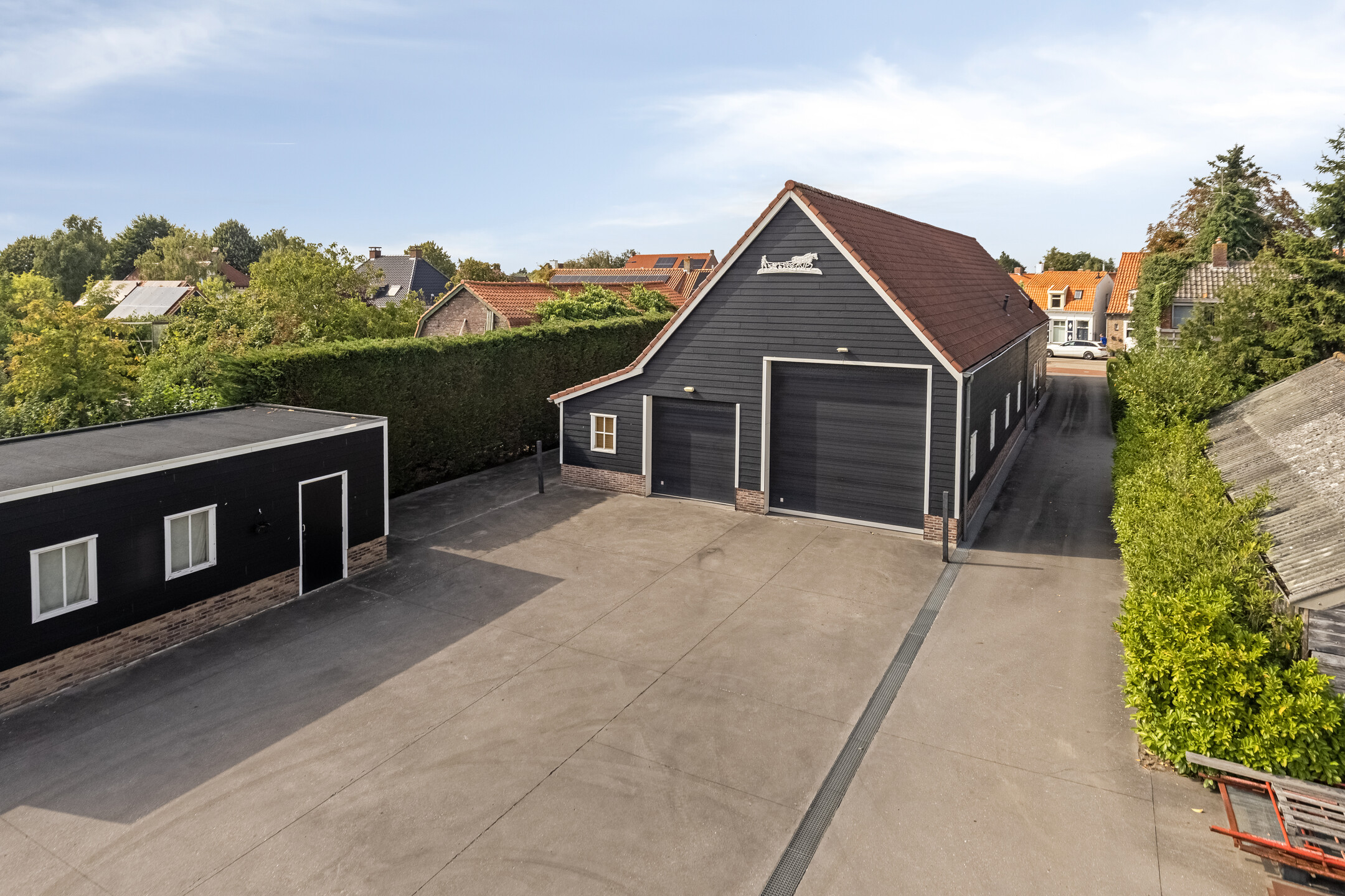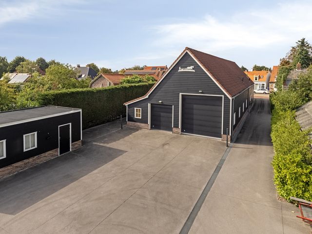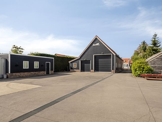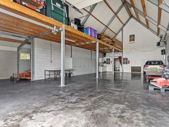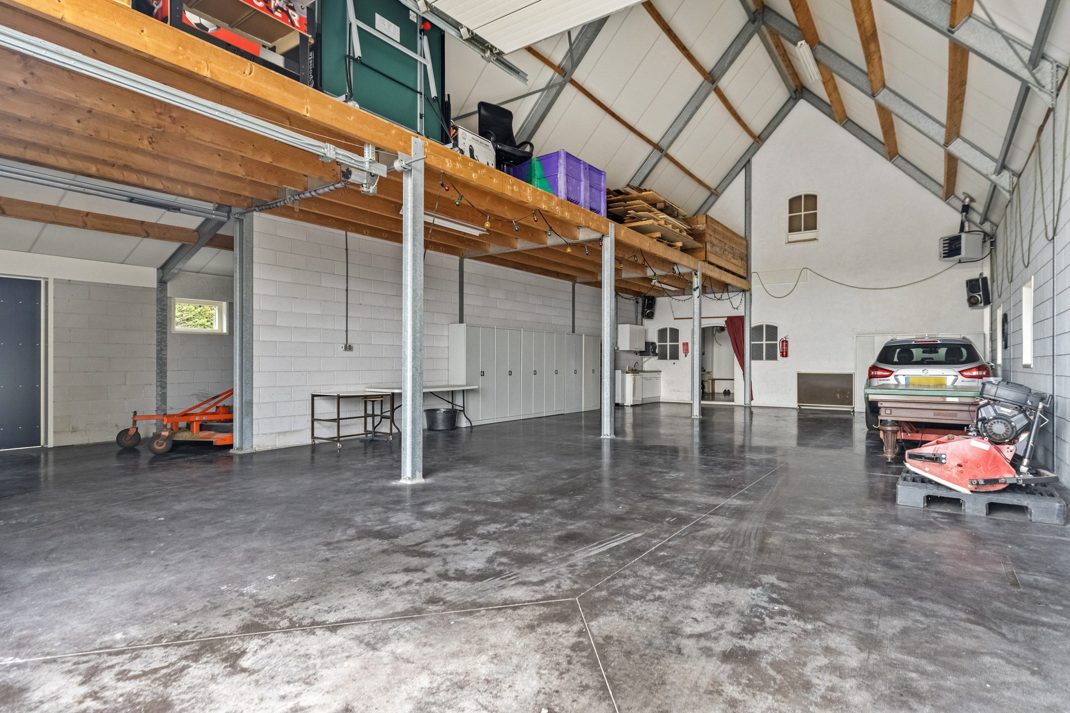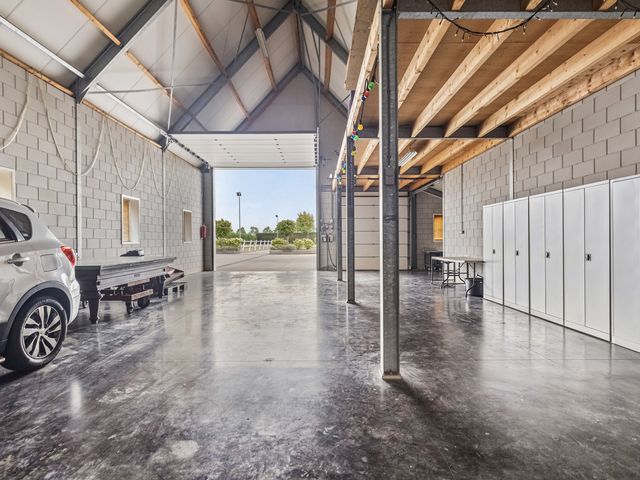 Doorloop naar de loods welke dus vanuit de woning alsmede vanuit de zijkant als achterkant van de loods zelf te bereiken is. De ruimte is voorzien van twee elektrische overheaddeuren, zolder, wateraansluiting, electra-aansluiting inclusief krachtstroom en de ruimte is voorzien van dakisolatie.