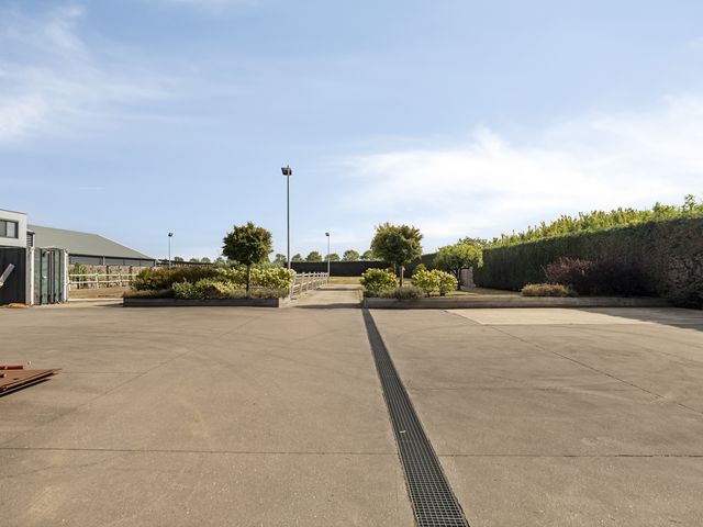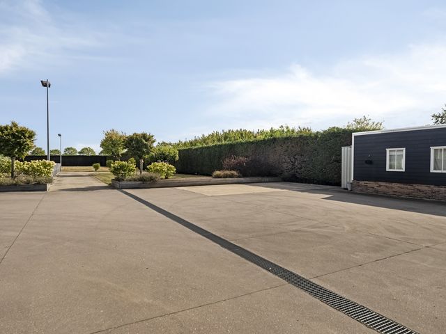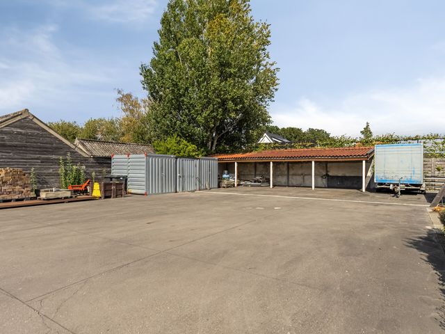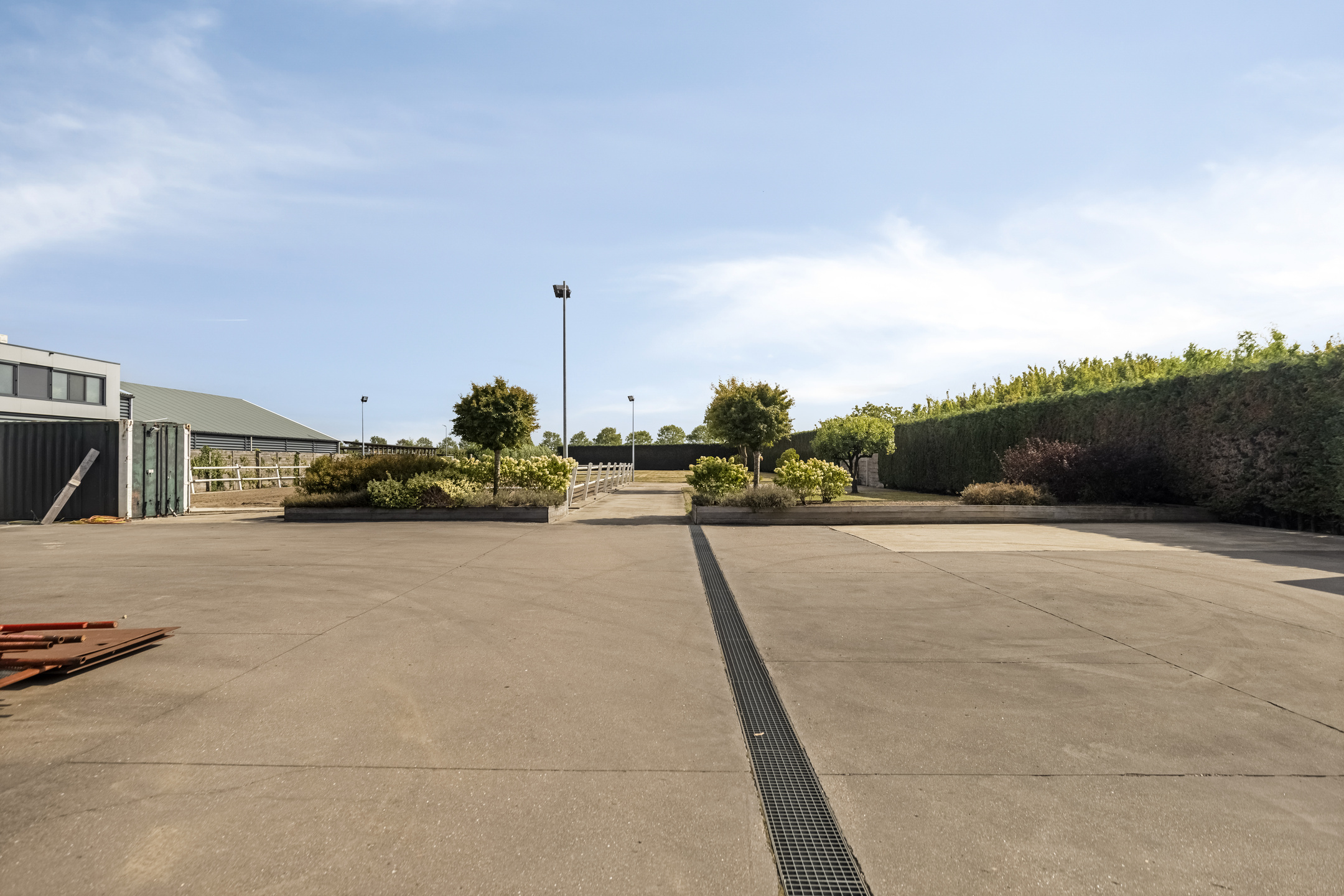 Voor opslag van voer, werktuigen of het stallen van een tractor is er een grote overkapping, strategisch geplaatst aan de achterzijde. Alles is overzichtelijk, bereikbaar en professioneel opgezet – een ideaal terrein voor de paardenliefhebber of hobbyboer die alles graag bij de hand heeft.